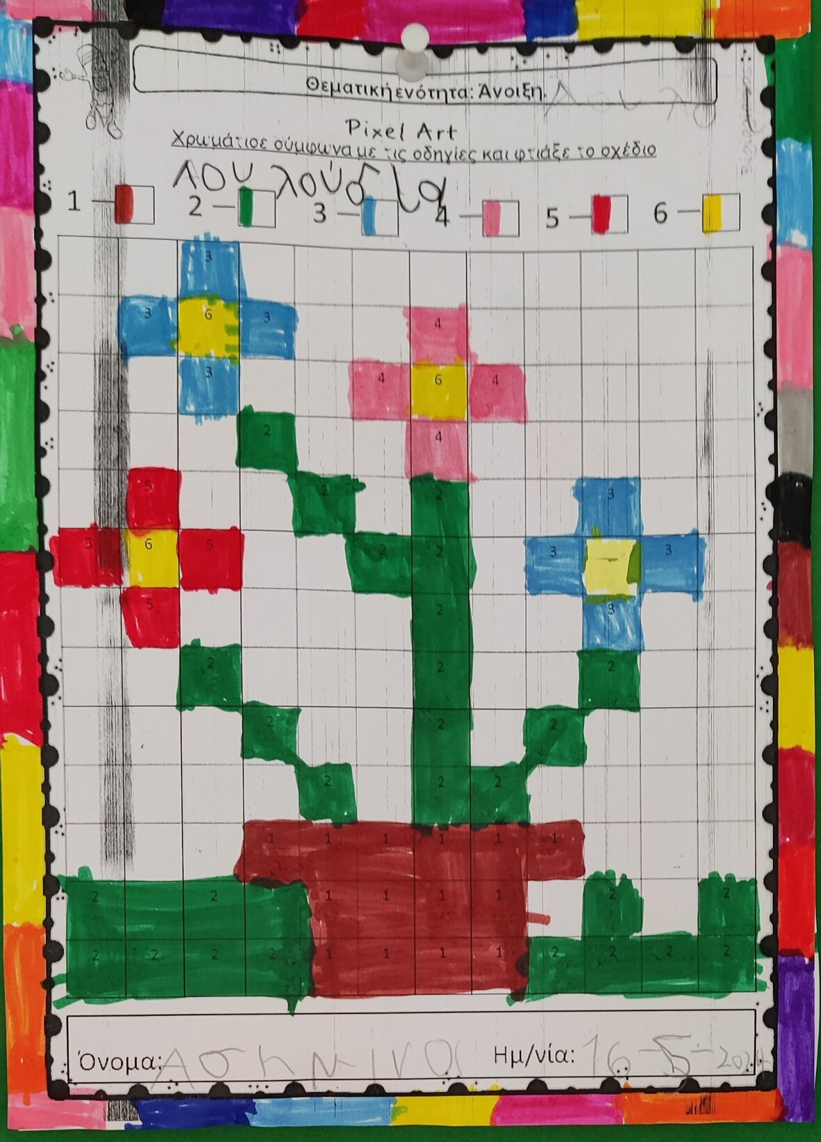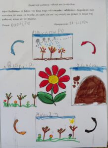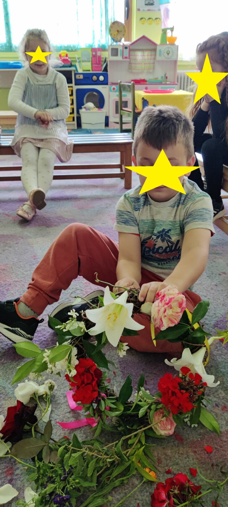 1. Περιεργαστήκαμε τα λουλούδια που είχαμε φέρει στο σχολείο,τα μυρίσαμε,διαλέξαμε ποια θα προσθέσουμε στο στεφάνι.2. Το φορέσαμεκαι το κρεμάσαμε στον τοίχο του σχολείου.3. Είπαμε ποια είναι τα μέρη του φυτού,τα γράψαμε, τα ζωγραφίσαμε.4. Διαβάσαμε το υπέροχο βιβλίο του Έρικ Καρλ.5. Γίναμε εμείς τα σποράκια.Πετάξαμε το χώμα με τα πόδια μας για να βλαστήσουμε, υπό τον ήχο της “Άνοιξης” του Βιβάλντιβλαστήσαμε,προστατεύσαμε το βλαστό μας απ’ τη βροχή και τον αέρα.6. Δημιουργήσαμε μαγικές εικόνες, ζωγραφίζοντας με συγκεκριμένα χρώματα τους αριθμούς (πηγή: Bigiagiakids).Εργασία νηπίωνΕργασία προνηπίων7. Ζωγραφίσαμε τι φανταζόμαστε ότι κάνει το σποράκι σε κάθε εποχή του χρόνου και γράψαμε το όνομά της.8. Γιορτάσαμε τα γενέθλια της Α.Χ. Μας κέρασε γλυκά και χυμούςκι εμείς της ζωγραφίσαμε για να την ευχαριστήσουμε.9. Φτιάξαμε μία κάρτα για τη μαμά μας που γιόρταζε.Της στείλαμε πολλά φιλιά,και της γράψαμε όσα θέλαμε να της πούμε.10. Μάθαμε το γράμμα Ω,ωΤο γράψαμε στον πίνακα και σε φύλλο εργασίας.Είδαμε την ιστορία “Του ωραίου ωρολόγιου“