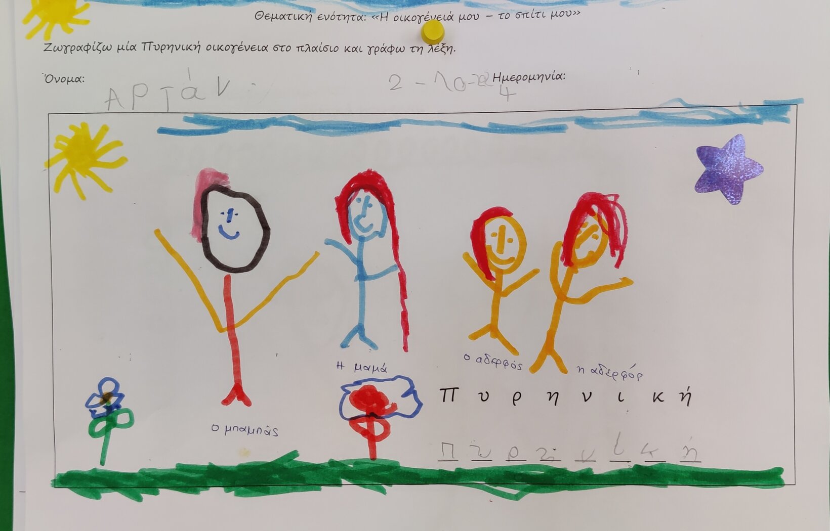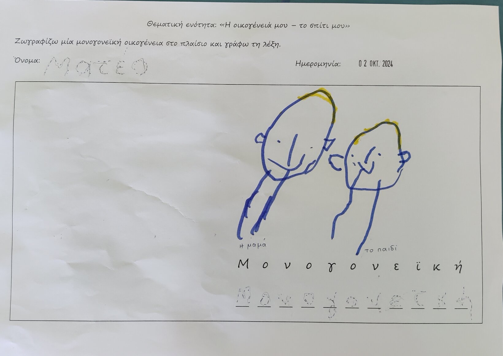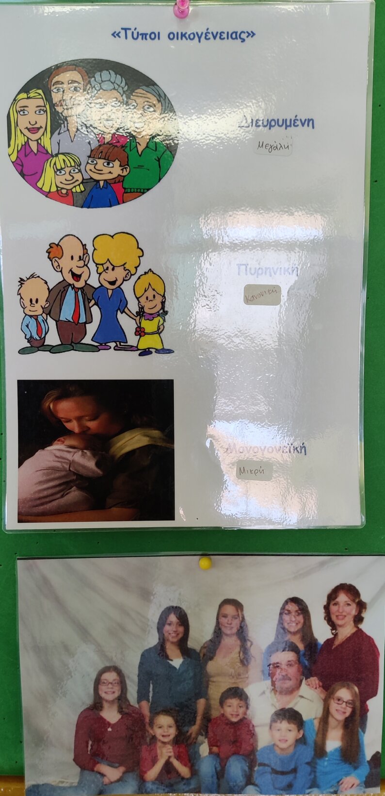 Μιλήσαμε για τα είδη των οικογενειών και αναφέραμε σε ποια κατηγορία ανήκει η οικογένεια του καθένα.Κατόπιν, ζωγραφίσαμε την πολύτεκνη,την πυρηνικήκαι την μονογονεϊκή.Μετρήσαμε τα μέλη της κάθε οικογένειαςκαι ζωγραφίσαμε τόσα μέλη, όσα απεικονίζονται και στην εικόνα.Διαβάσαμε την ιστορία “Η φαντασία του Οκτώβρη” από το βιβλίο της Λότης Πέτροβιτς “Τα παιδιά του Φθινοπώρου” και ζωγραφίσαμε το ανθρωπάκι του Οκτώβρη.