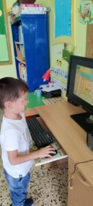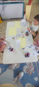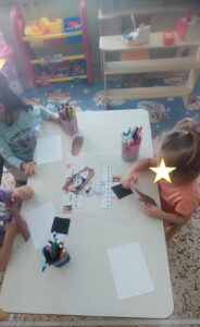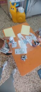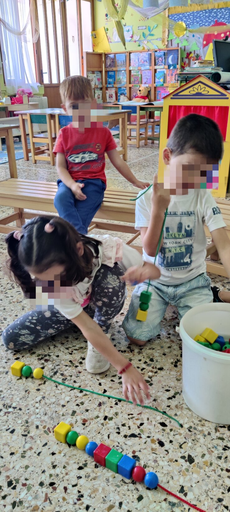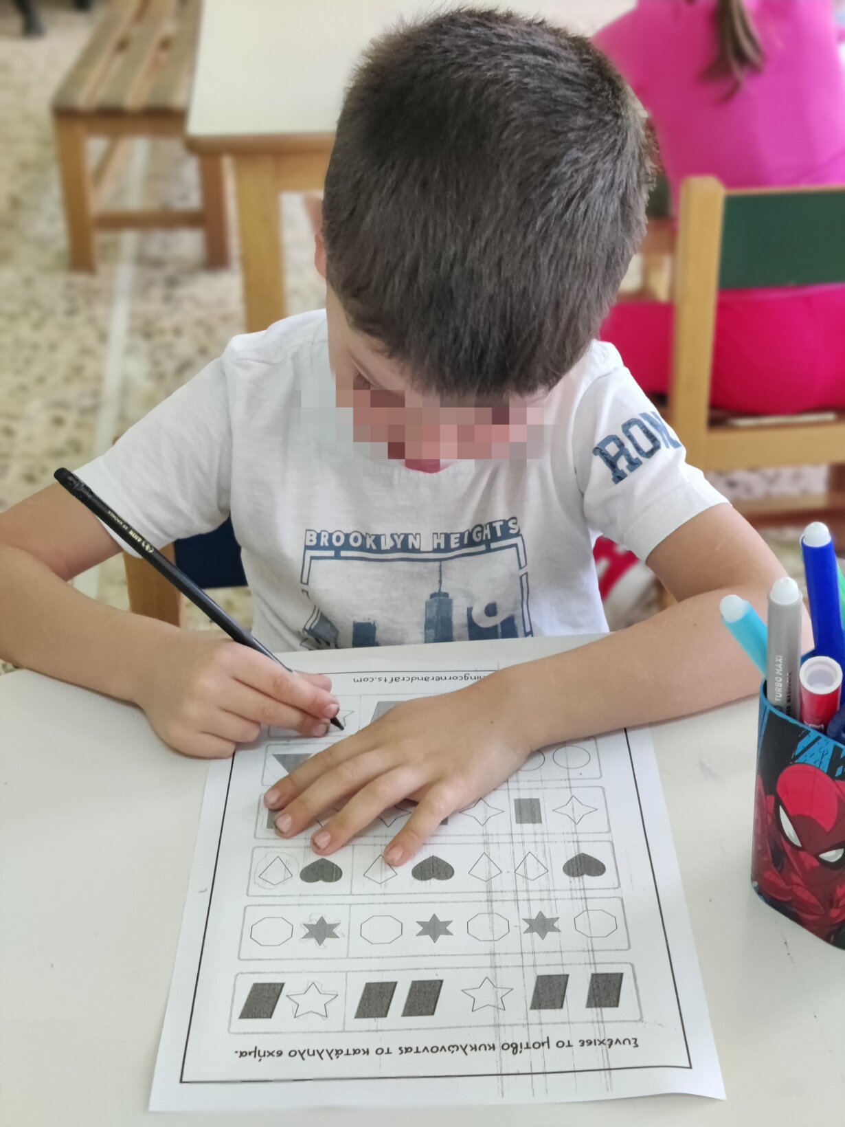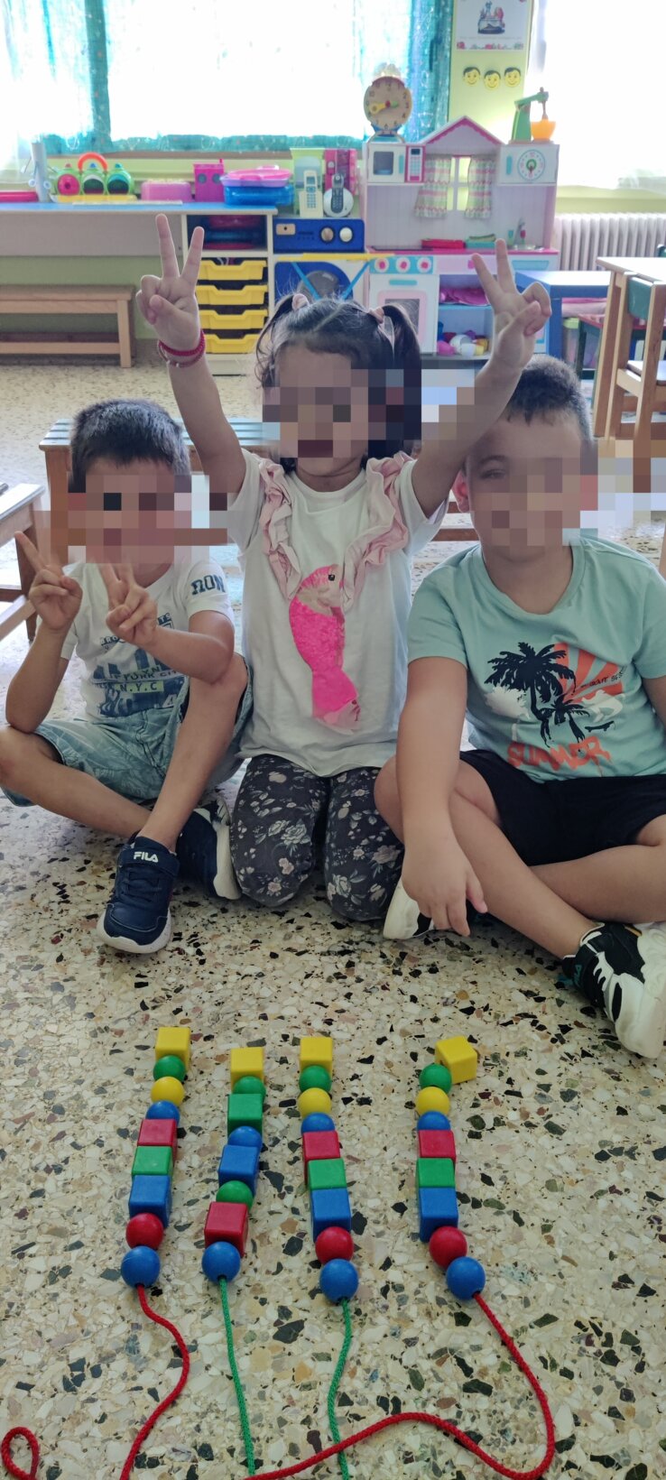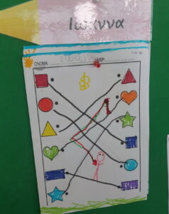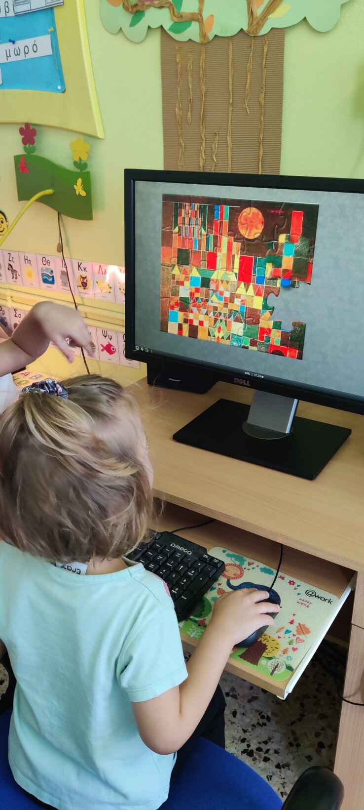 Αφού μάθαμε τον κύβο και τη σφαίρα απ’ τα στερεά, γεωμετρικά σχήματα, προσπαθήσαμενα φτιάξουμε τα μοτίβα που μας ζητήθηκαν.Συνεχίσαμε για εμπέδωσηκαι σε φύλλα εργασίας.Ζωγραφίσαμε ανάλογαοδηγίες που μας δόθηκαν.Βάλαμε ένα πιθανό σενάριο και ζητήσαμε απ’ τα παιδιά να σχεδιάσουν τις οδηγίες που θα δώσουμε στην Bee την μέλισσα προκειμένου να φτάσει στον στόχο.Κατόπιν, βρήκαμε τις κάρτες που θα μας δίνουν τις οδηγίεςκαι προγραμματίσαμε το ρομποτάκι μας για να φτάσει στο στόχο.Λύσαμε τα αινίγματα για τα σχήματα που μας τέθηκαν.Δημιουργήσαμε σε ψηφιακό παζλτο “Κάστρο και Ήλιος” του Πάουλ Κλέε.