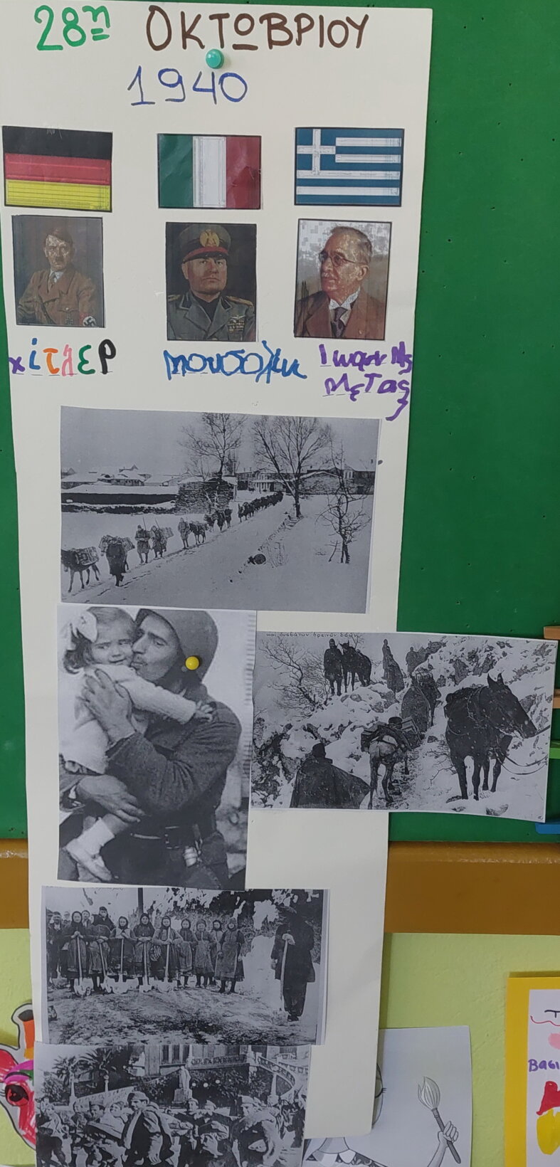Συζητήσαμε τι γιορτάζουμε και παραθέσαμε μερικά σημαντικά γεγονότα του πολέμου. Κατόπιν, παρακολουθήσαμε σχετικό βίντεο που εξιστορούσε με εικόνες τη διήγηση.
