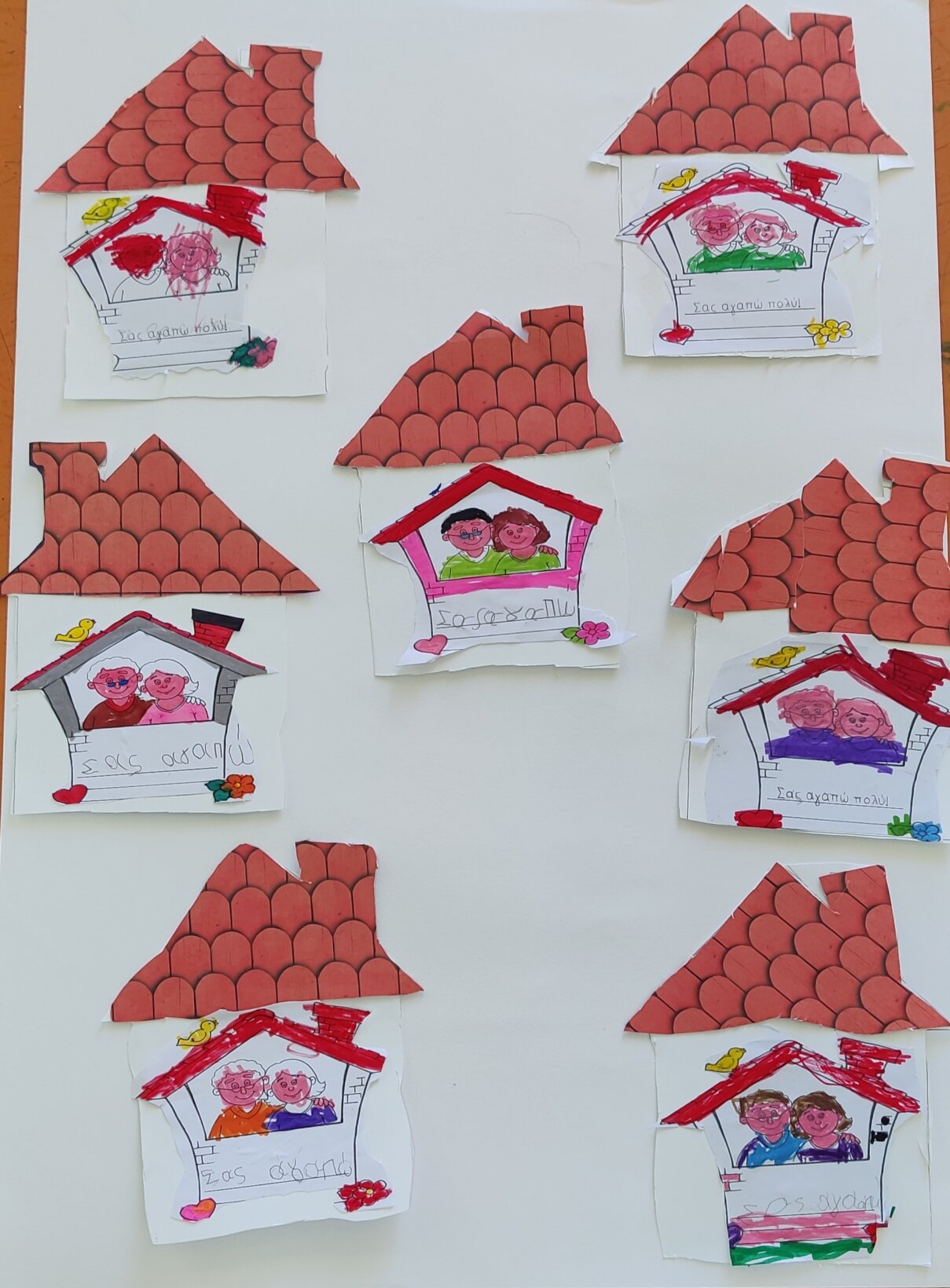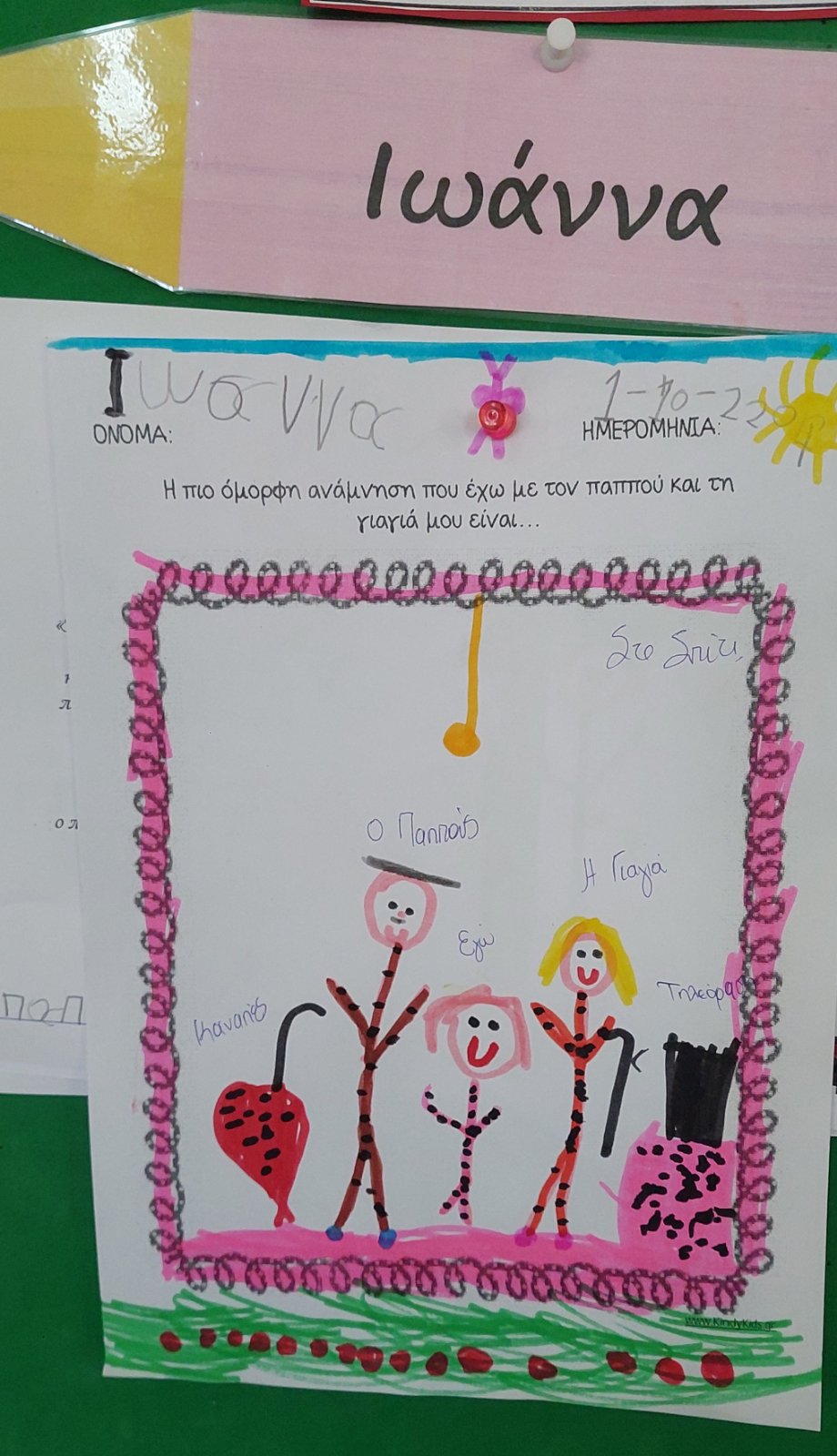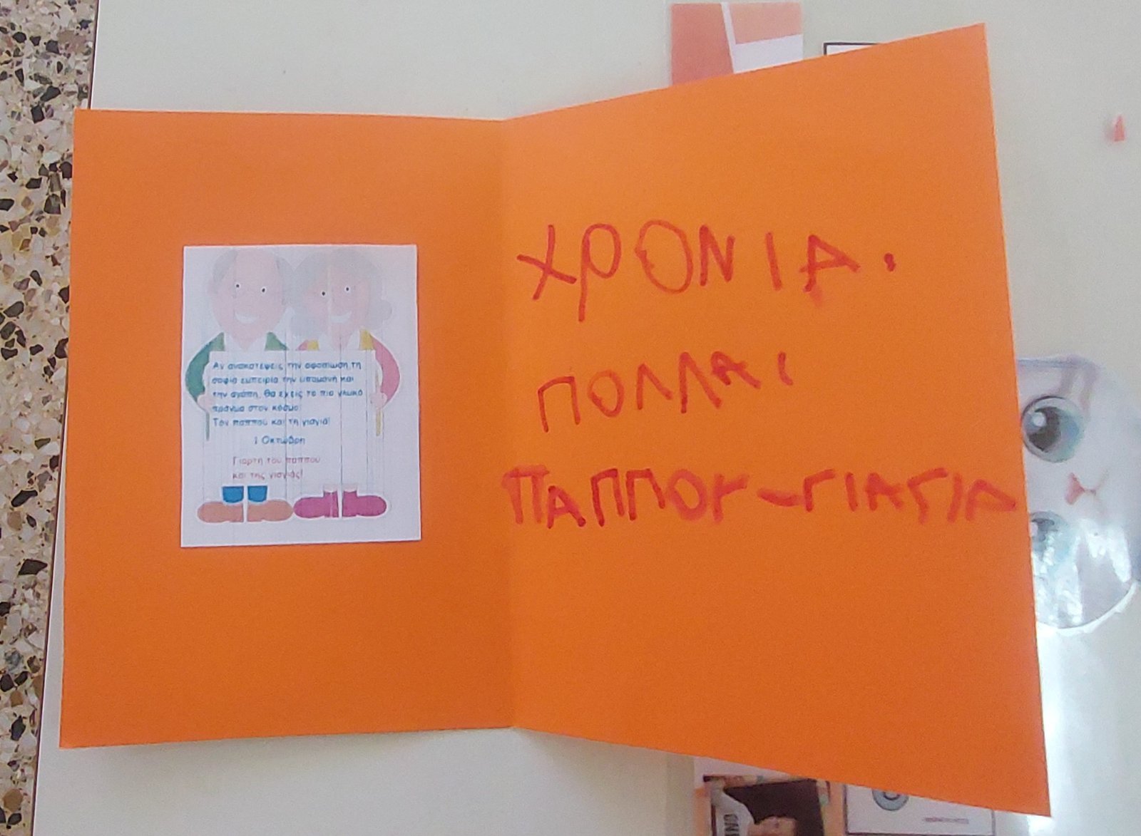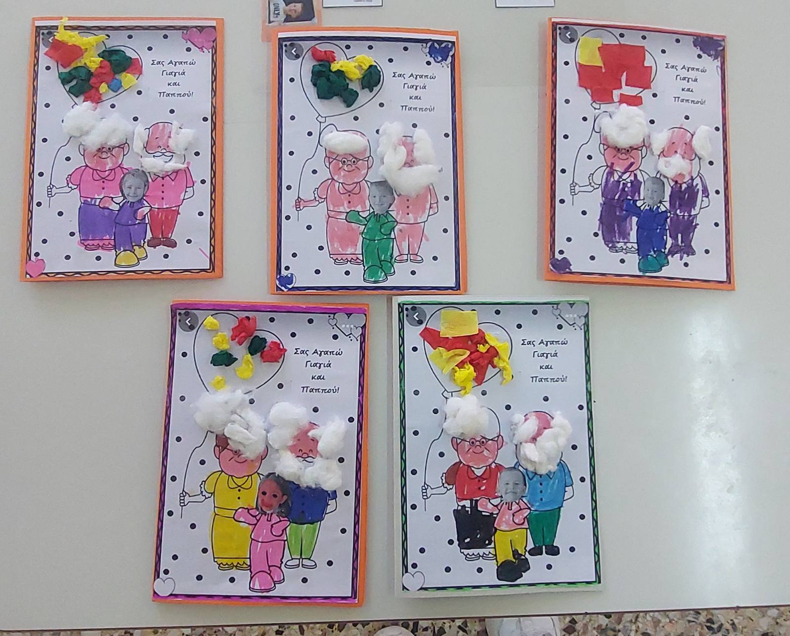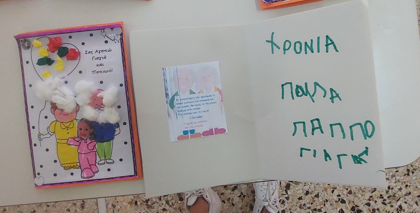 Ζωγραφίσαμε την πιο όμορφη ανάμνηση που έχουμε μαζί τους.Τους φτιάξαμε μία κάρτακαι τους ευχηθήκαμε.Χρόνια πολλά παππού και γιαγιά!