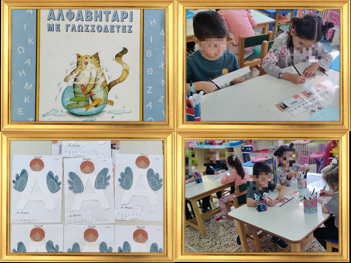 Μάθαμε τον γλωσσοδέτη του αρκούδου που ήθελε να αγγίξει το αστεράκι, κατασκευάσαμε έναν άγγελο με το Α το κεφαλαίο και γράψαμε το Α το κεφαλαίο και το α το πεζό.