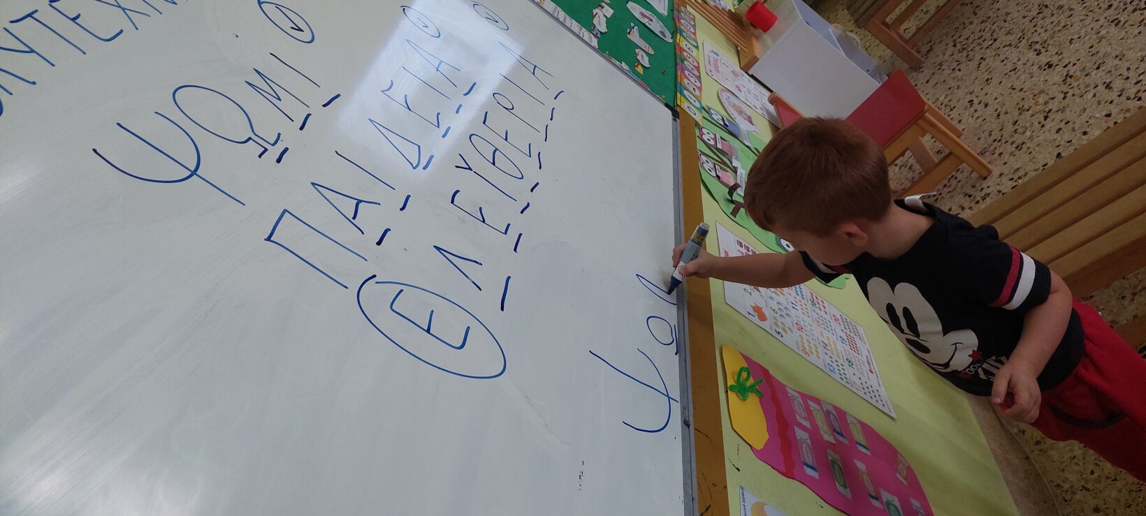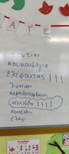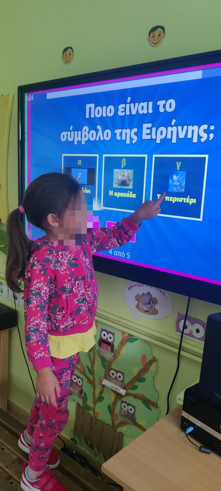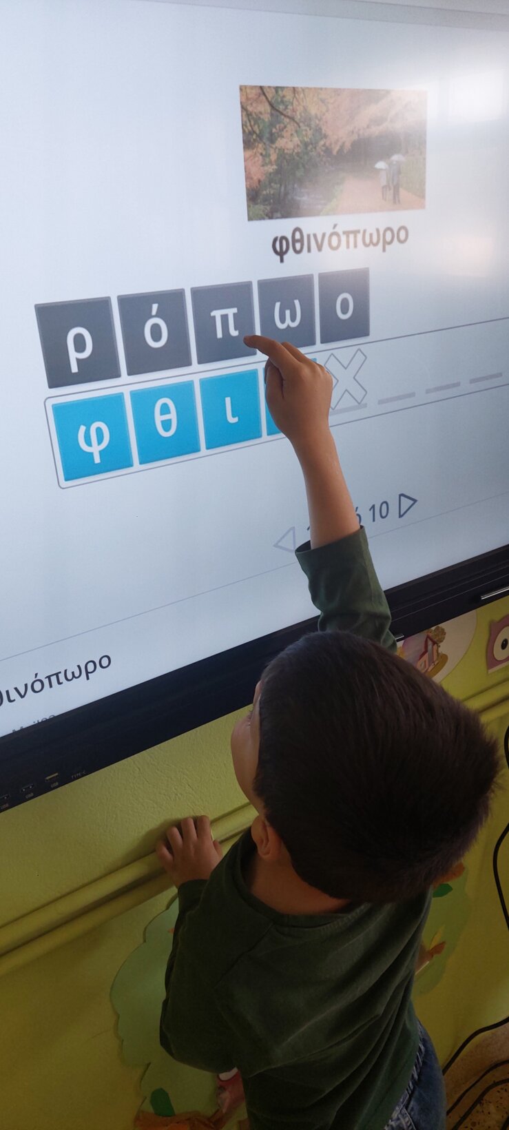 Βρήκαμε στην υδρόγειο σφαίρα την Ελλάδα και την Αφρική.Υποδεχτήκαμε στην αίθουσα διδασκαλίας τον διαδραστικό πίνακα.και εξασκηθήκαμε, γράφοντας με την γραφίδα στον ασπροπίνακα.Εντάξαμε στην καθημερινή μας ρουτίνα τον διαδραστικό πίνακα, βρίσκοντας τους παρόντες και τους απόντες.Μάθαμε το μουσικοκινητικό τραγούδι “Σύννεφα παντού” για το Φθινόπωρο.