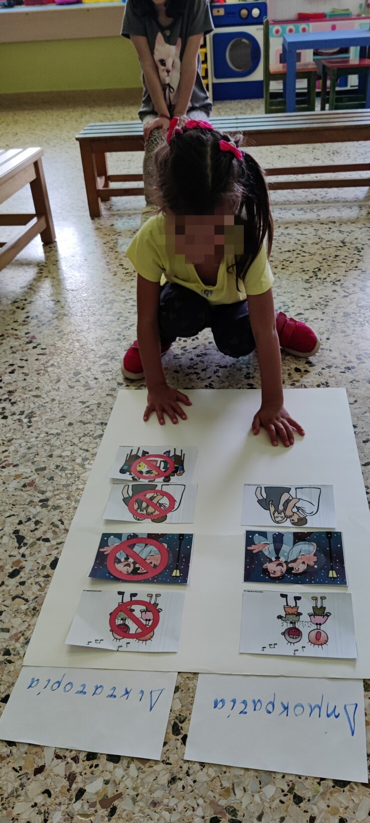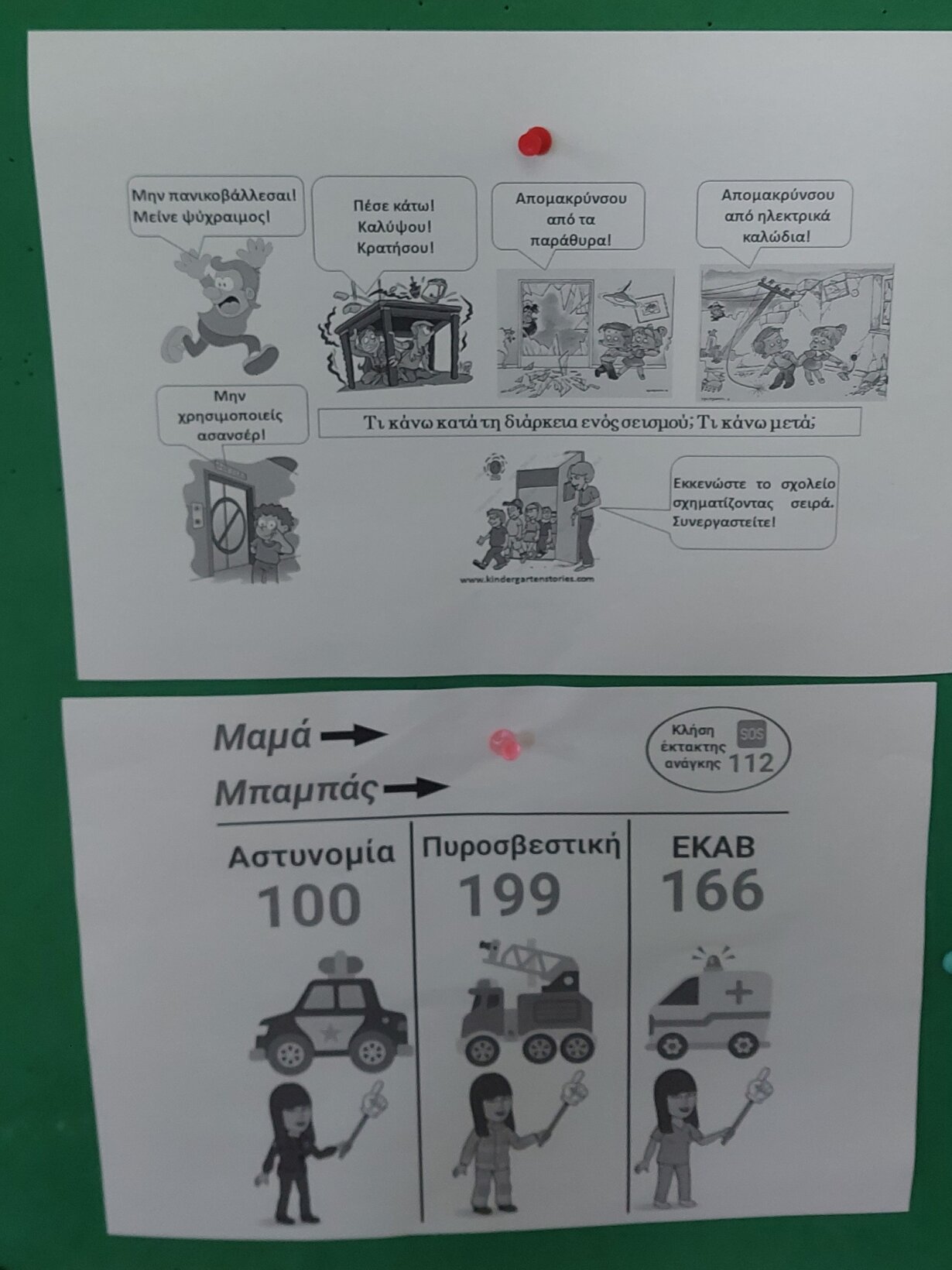 Μιλήσαμε για τους σεισμούς, για τις αιτίες που τους προκαλούν και για τους τρόπους που μπορούμε να προστατευτούμε από αυτούς. Είδαμε το εσωτερικό της Γης σε βίντεο,κάναμε ένα πείραμα προσομείωσης με πλαστελίνες για να δούμε πώς είναι στην πραγματικότητακαι κάναμε την 1η άσκηση ετοιμότητας για τους σεισμούς. Κατά τη διάρκεια του σεισμού, κρυφτήκαμε κάτω απ’ το τραπέζι και πιάσαμε με το ένα χέρι το πόδι του τραπεζιού και με το άλλο προοστατεύσαμε τον αυχένα μας.Μόλις τελείωσε ο σεισμός, στοιχηθήκαμε σε τρένο και προστατεύσαμε κεφάλι και αυχένα.Χωρίς να πανικοβληθούμε, με σταθερό βηματισμό και χωρίς να τρέχουμε, κατευθυνθήκαμε στο σημείο συνάντησης (βρύση στο προαύλιο).Μάθαμε τους αριθμούς έκτακτης ανάγκηςκαι τους καλέσαμε στο τηλέφωνο.Κάναμε κατασκευή δημιουργώντας σπιτάκια που στηρίζονται σε γλωσσοπίεστρα.Οι ατομικές μας κατασκευές.Ακούσαμε το ραπ τραγούδι των Ημισκουμπρίων για τους σεισμούς.Τέλος, συμπληρώσαμε στο φύλλο εργασίας την σωστή και τη λάθος συμπεριφορά για να θυμόμαστε ποια λάθη πρέπει να αποφεύγουμε όταν πράγματι εκδηλωθεί ο σεισμός.