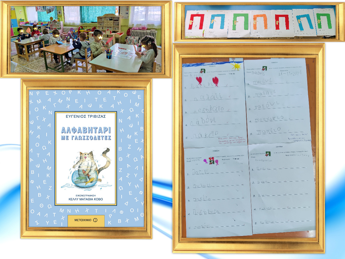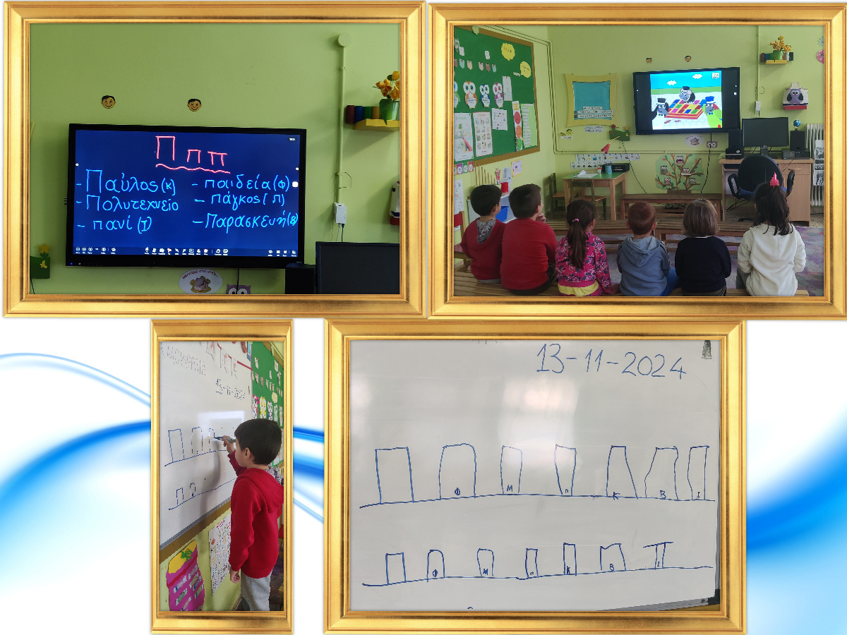 Παρακολουθήσαμε την ιστορία της “Πολυλογού παντόφλας“, βρήκαμε λέξεις από το γράμμα Π και το γράψαμε στον πίνακα.