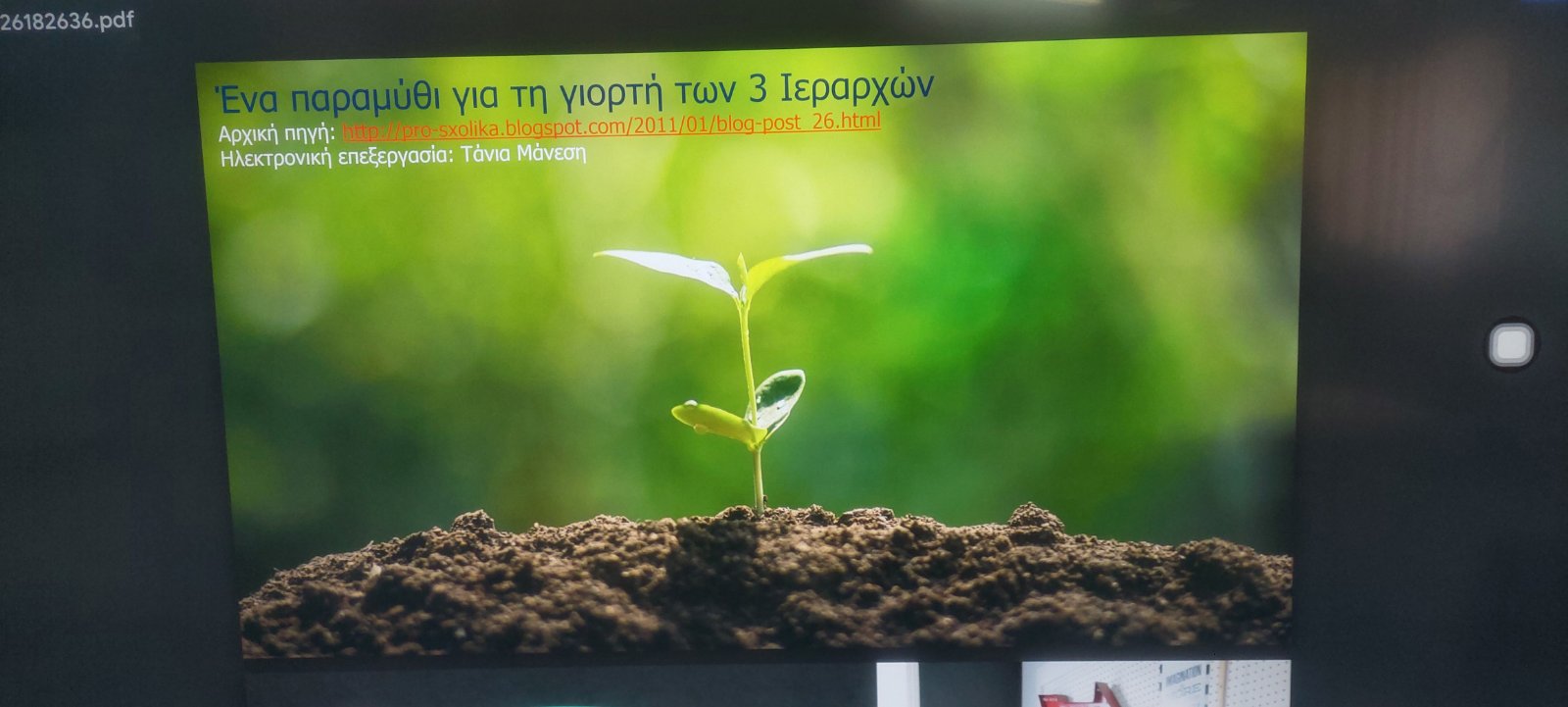 Μιλήσαμε για τους 3 Ιεράρχες, τους προστάτες των γραμμάτων.Παρακολουθήσαμε ένα παραμύθι για τη γιορτή αυτή.Φτιάξαμε μία κατασκευή με διπλή όψηκαι γράψαμε τα ονόματά τους.Τα γράψαμε και σε φύλλο εργασίας.Τους ζωγραφίσαμεκαι φτιάξαμε ένα μικρό εικόνισμα.Παίξαμε ένα ψηφιακό παιχνίδι ερωτήσεων για να κάνουμε επανάληψη σε όσα μάθαμε.Με νερομπογιές φτιάξαμε άλλη μία κατασκευή.Οι 3 Ιεράρχες σε mombile.Κόψαμε και κολλήσαμε την ημερομηνία που γιορτάζονται.Παίξαμε ακόμα ένα ψηφιακό παιχνίδι γνώσεων.Πραγματοποιήθηκε εκκλησιασμός του σχολείου και αρτοκλασία, ανήμερα της γιορτής των προστατών της παιδείας.