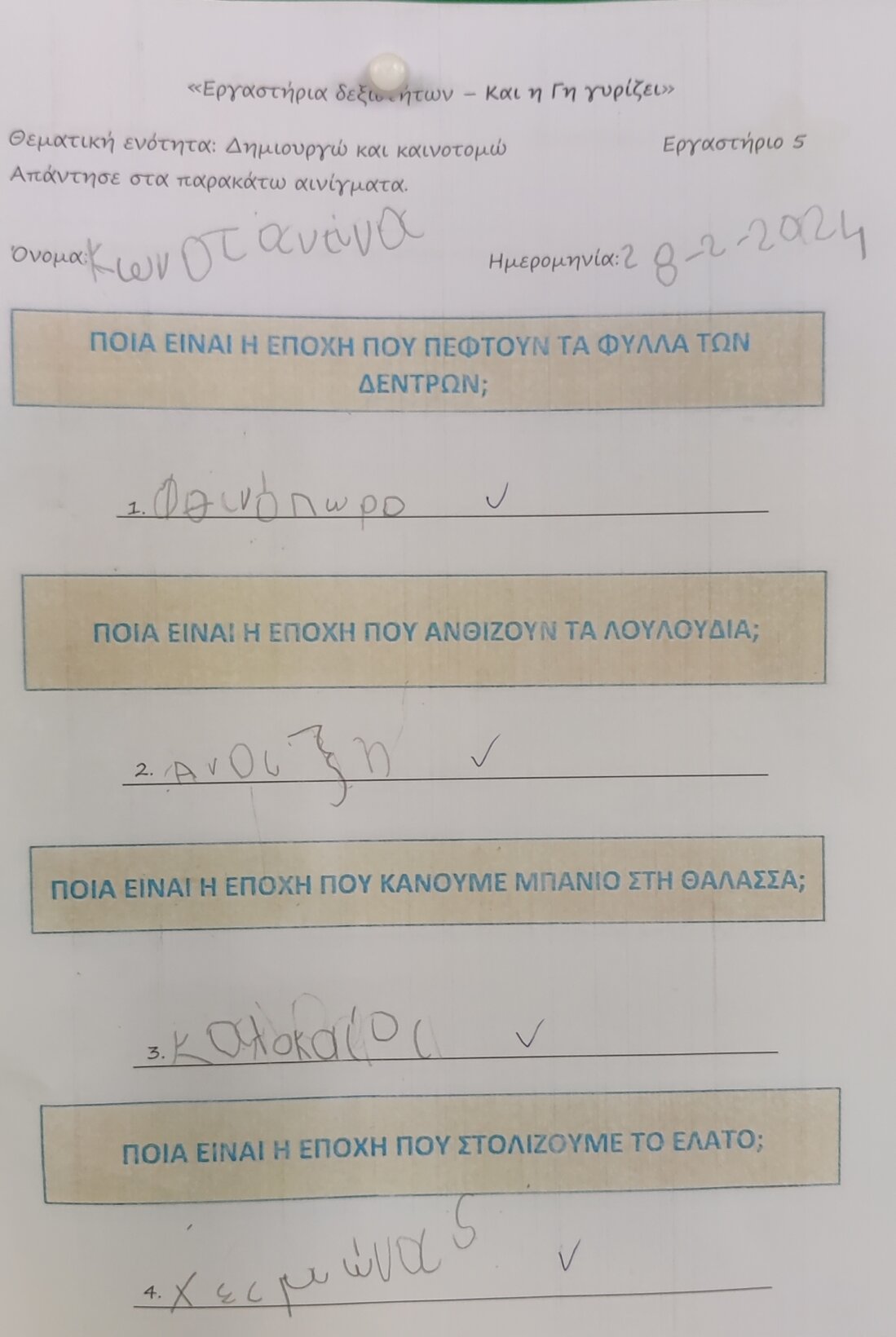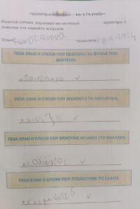 και γράψαμε τις απαντήσεις μαςστο φύλλο εργασίας.