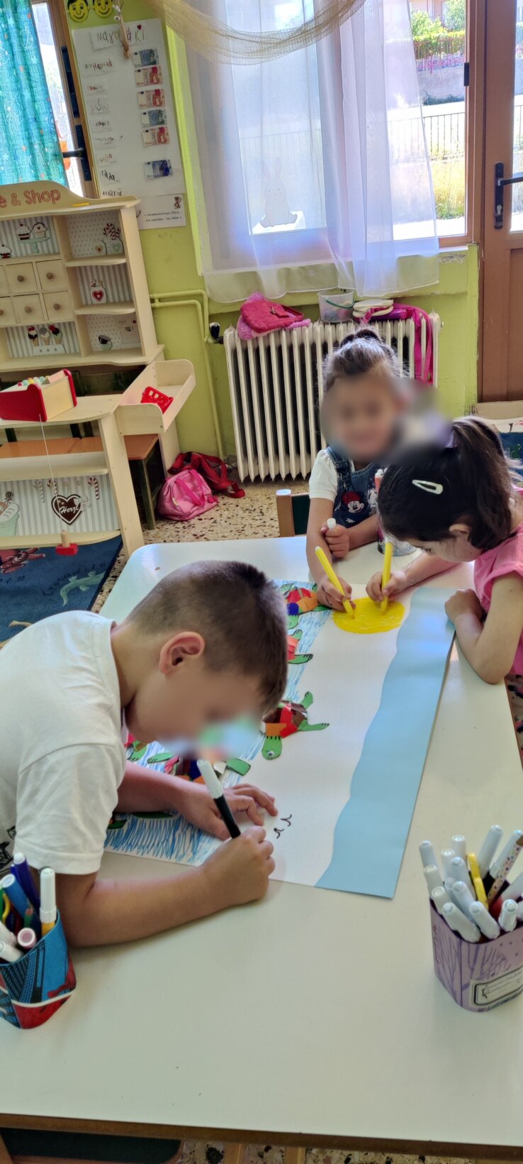 1. Φανταστήκαμε ότι είμαστε χελωνάκια σε μία παραλία. Τι θα λέγαμε στους ανθρώπους που μας βοηθούν να μην εξαφανιστούμε;Ψηφίσαμε μία από τις προτάσεις των παιδιών, καθότι οι ιδέες ήταν πολλές και την γράψαμε στο φύλλο εργασίας.2. Κόψαμε, ζωγραφίσαμε και κολλήσαμεγια να δημιουργήσουμε μία ευφάνταστη θαλάσσια χελώνα.Έπειτα, αποφασίσαμε να τις βάλουμε στο φυσικό τους περιβάλλονκαι δημιουργήσαμε μία ομαδική κατασκευή.3. Παίξαμε παιχνίδια όπως «χελωνάκια στη φωλιά», που τα παιδιά μεταμορφώθηκαν σε χελωνάκια μέσα στο αυγόπου εκκολάφτηκαν, έσκαψαν το χώμααλλά και «Τα εμπόδια» που στο δρόμο τους για τη θάλασσα συνάντησαν σκουπίδια και υπερυψωμένα κάστρα στην άμμο.Και στα δύο παιχνίδια, η κατάληξη ήταν ευτυχής, τα καρεττάκια βρήκαν το δρόμο τους για τη θάλασσα και τα παιδιά, αναγνώρισαν βιωματικά τη σημασία της προστασίας της.