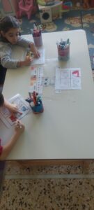 4. Παίξαμε το επιτραπέζιο παιχνίδι με τη δημιουργία των γευμάτων.5. Παρακολουθήσαμε την ιστορία “Η Κυρά Διατροφή, 1η στη μαγειρική”.6. Ζωγραφίσαμε τις τροφές που θα πρέπει να περιέχει το πιάτο του μεσημεριανού μας. Στη συνέχεια, συγκρίναμε το αρχικό πιάτο του 1ου εργαστηρίου και κάναμε αναστοχασμό ως προς τις επιλογές μας.7. Φτιάξαμε ατομική κατασκευήΜε χριτς χρατς κολλήσαμε τις εικόνες που κόψαμεκαι πάνω από τις ομάδες γράψαμε τις ονομασίες τους για να θυμόμαστε πάντα τι πρέπει να περιέχει το μεσημεριανό μας γεύμα.8. Υποδεχτήκαμε την κ. Μάρσια τη διατροφολόγο που μας μίλησε για τη διατροφή και την άσκηση και μας έκανε την καλύτερη επανάληψη ολοκληρώνοντας τα εργαστήρια δεξιοτήτων.Αφού ολοκληρώθηκε η παρουσίαση της δωρίσαμε κι εμείς την κατασκευή μας ως διακοσμητικό για το γραφείο μας.Το δώρο μας.9. Πήραμε το στοιχείο που μας έστειλε ο ντετέκτιβ Βανς για να συμπληρώσουμε το γρίφο.