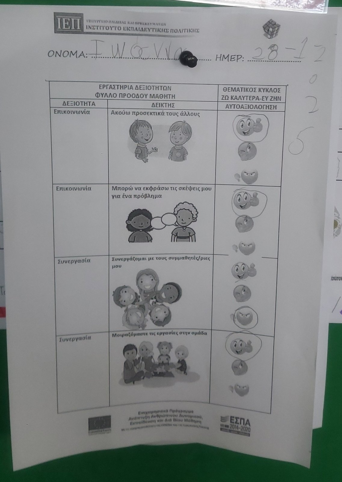 1. Επαναλάβαμε την ερώτηση του εργαστηρίου 3 και ηχογραφήσαμε τις απαντήσεις. Σε εννοιολογικό χάρτη τις καταγράψαμε και με χρήση της ρουτίνας «Τότε νόμισα – Τώρα ξέρω» οι μαθητές/μαθήτριες διατύπωσαν τις νέες γνώσεις και έγιναν οι συγκρίσεις ανάμεσα στον αρχικό και τον τελικό χάρτη.2. Τα παιδιά συμπλήρωσαν ένα φύλλο αξιολόγησης των εργαστηρίων.