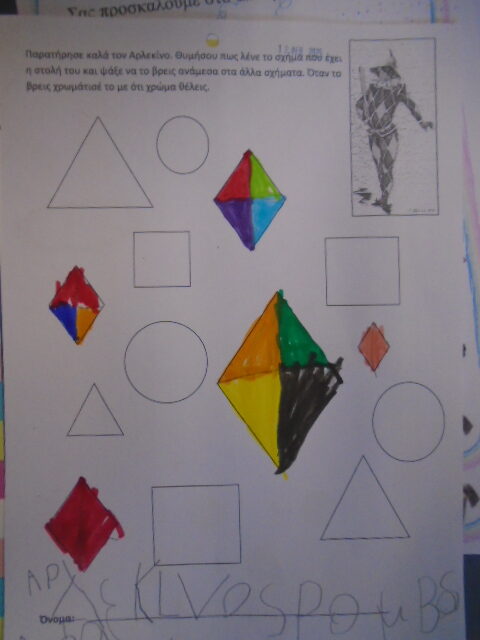 Στη συνέχεια φτιάξαμε ο καθένας ένα παιχνίδι ταύτισης με μάσκες για να το πάρουμε σπίτι μας…