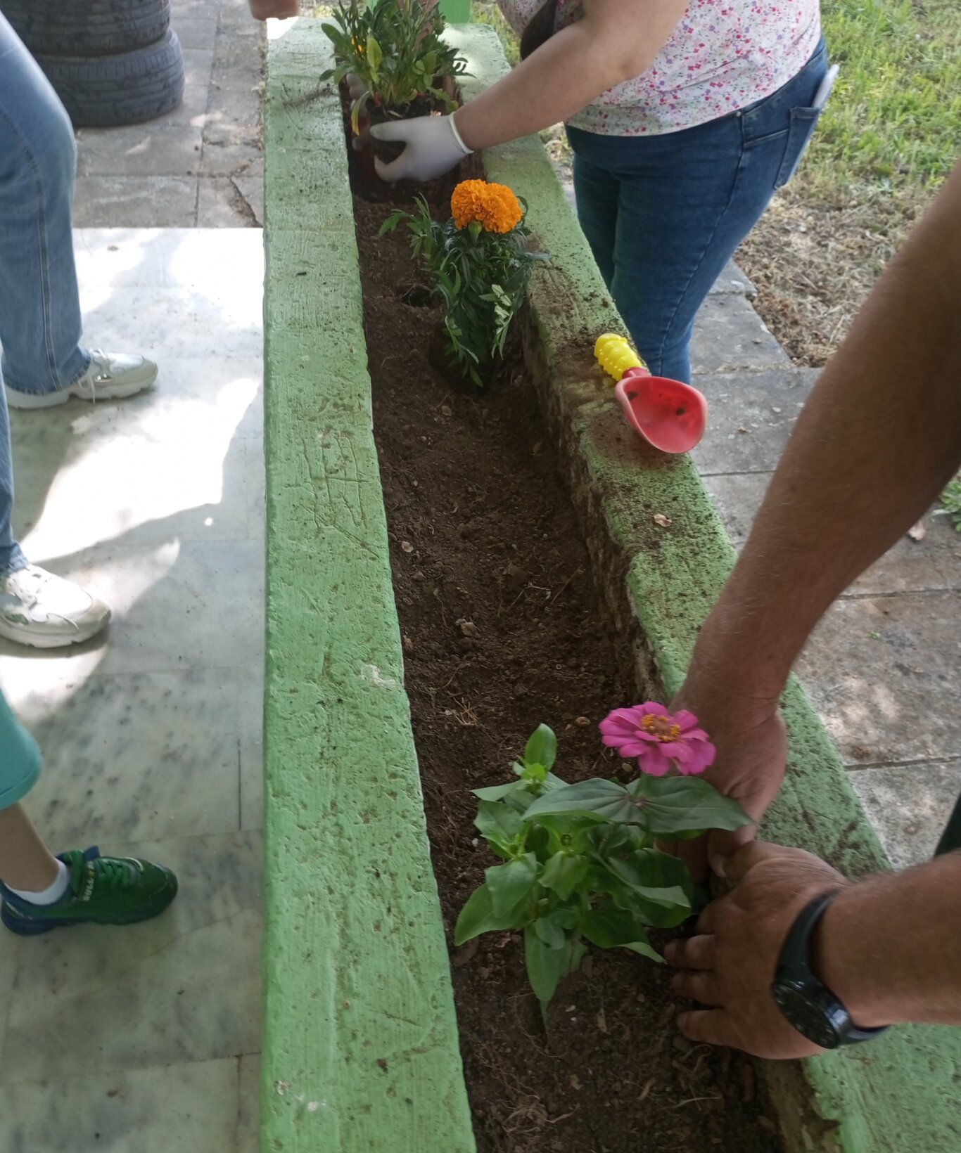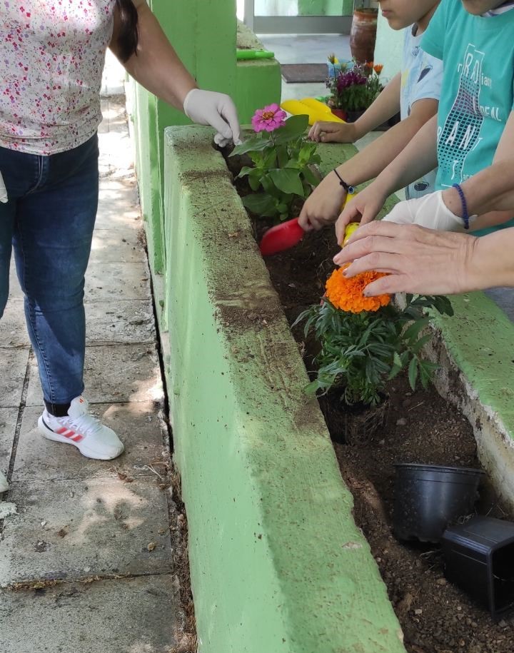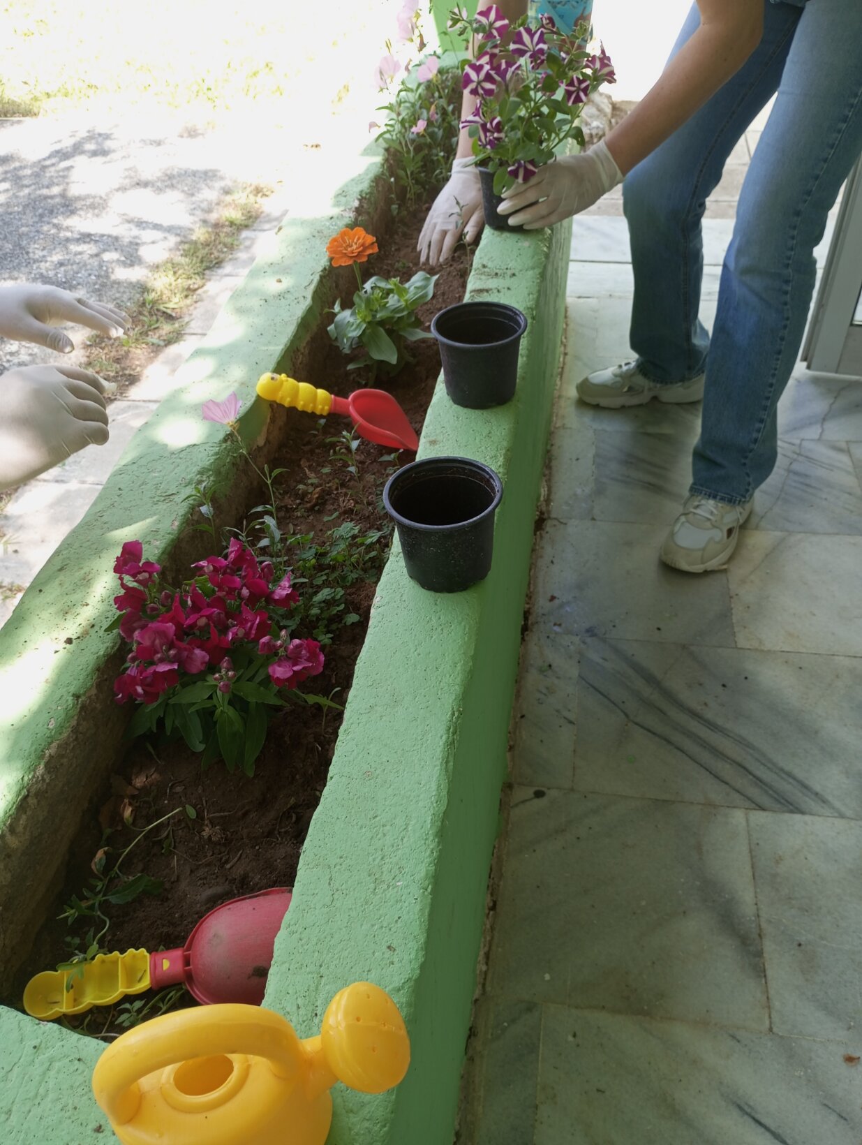 Τώρα πρέπει να δώσουμε ζωή στις κτιστές ζαρντινιέρες που υπάρχουν στη είσοδο του νηπιαγωγείου μας.