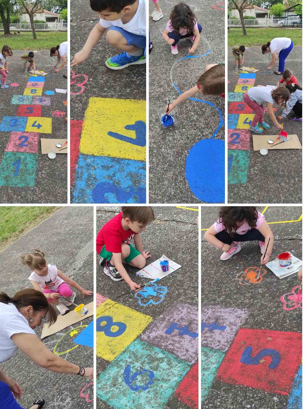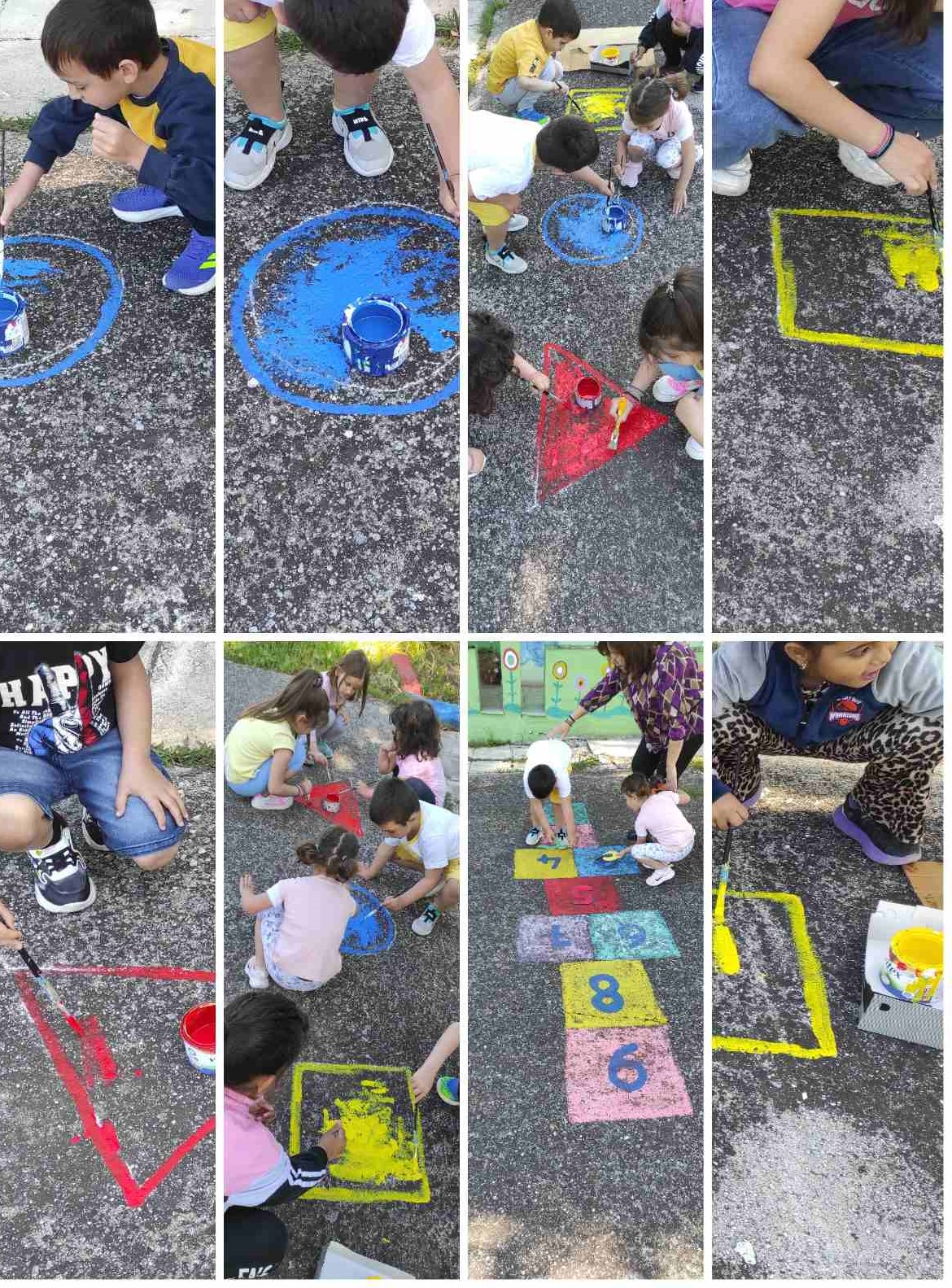 Επιδαπεδια παιχνίδια ,ζωγραφιές στους τοίχους, ανανέωση και περιποίηση φυτών, συντήρηση και βάψιμο της περίφραξης του σχολείου μας.