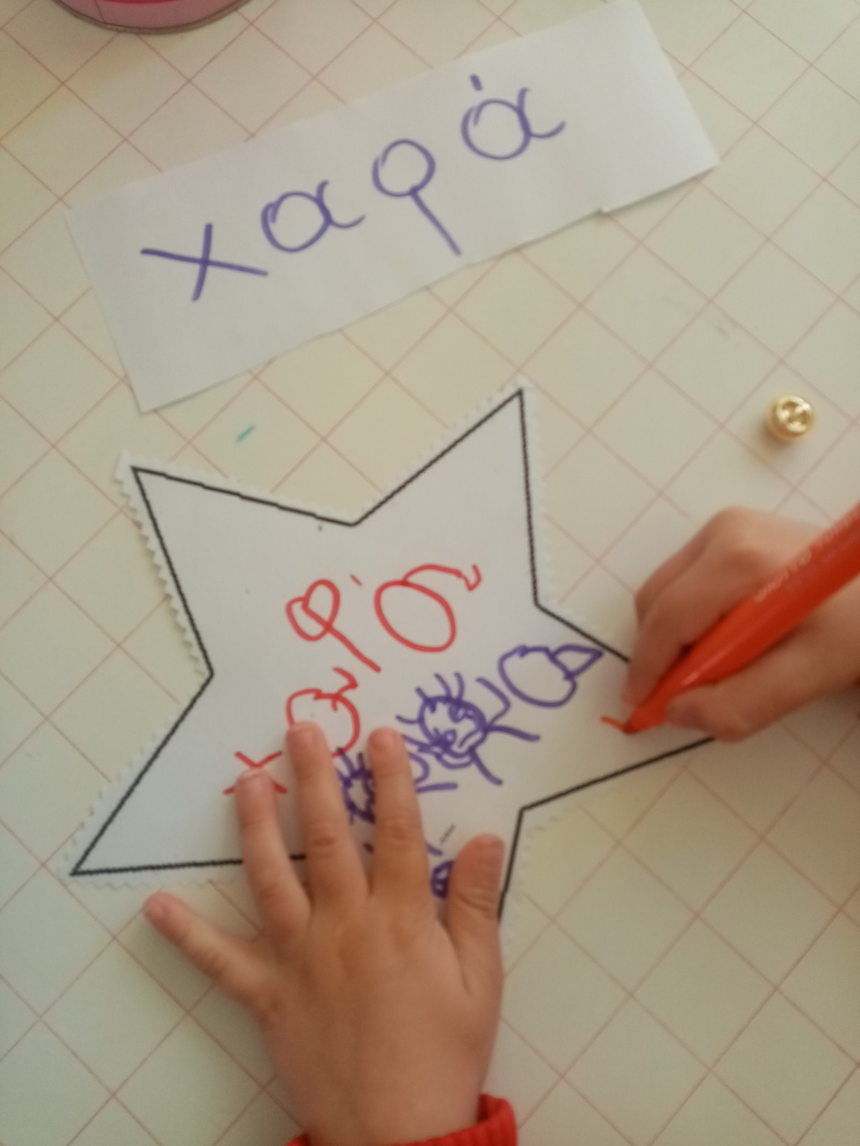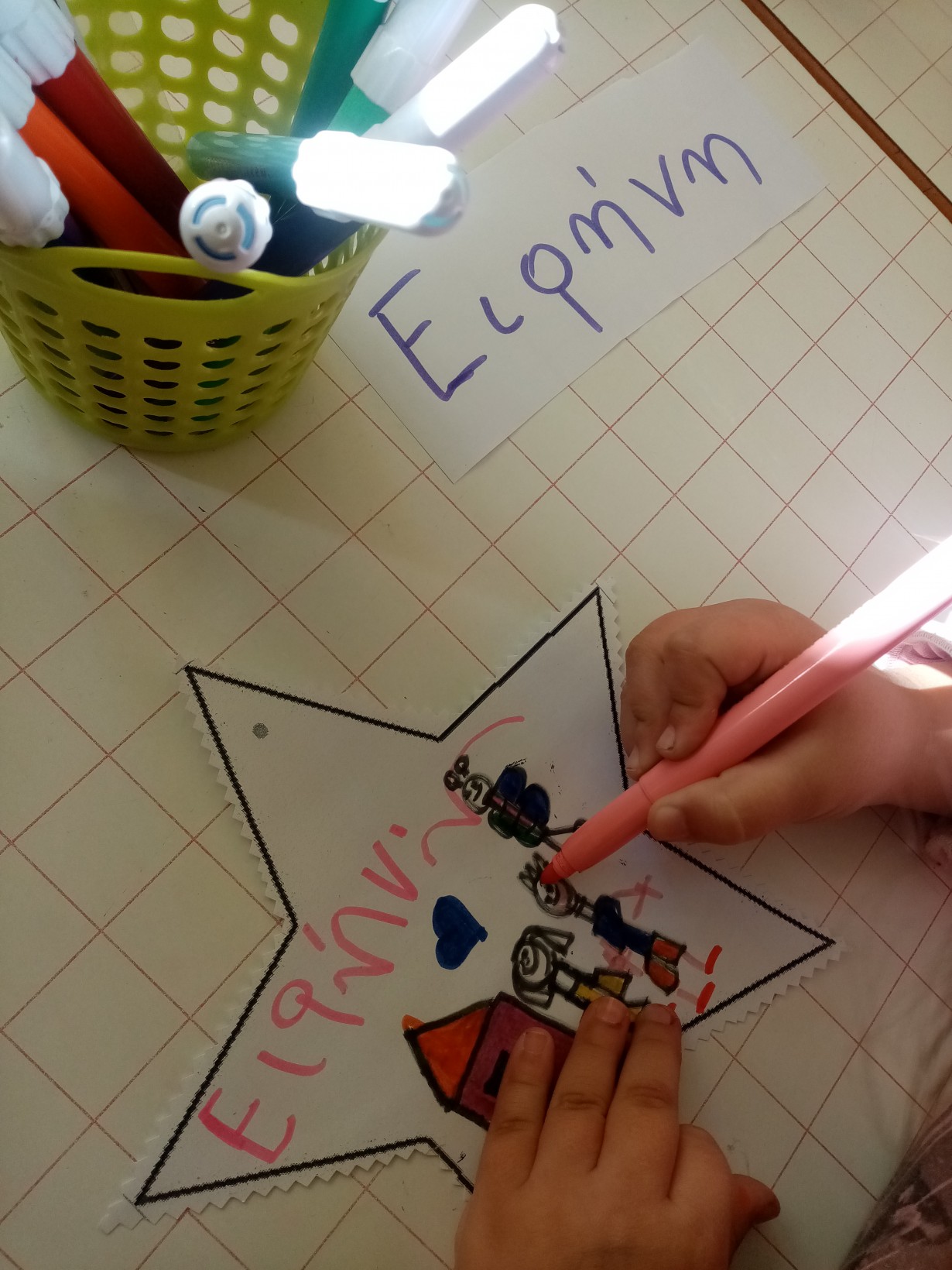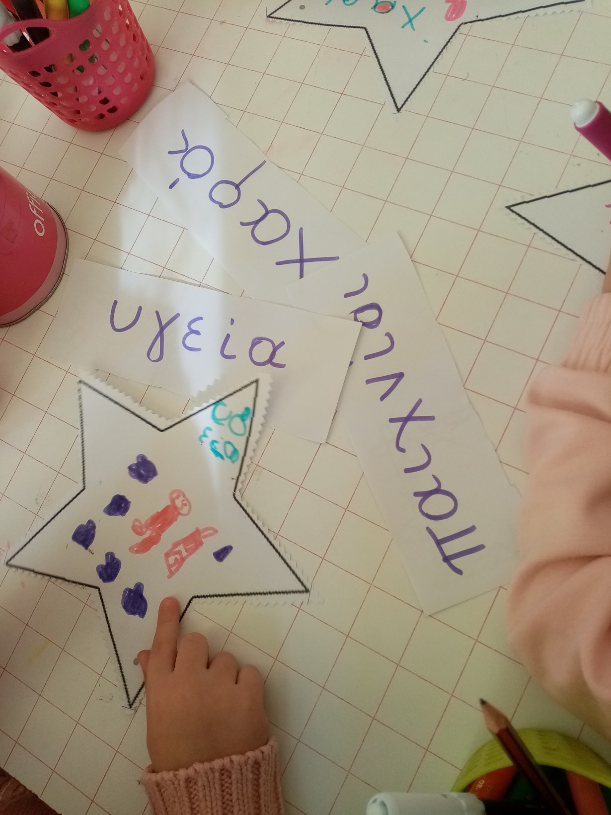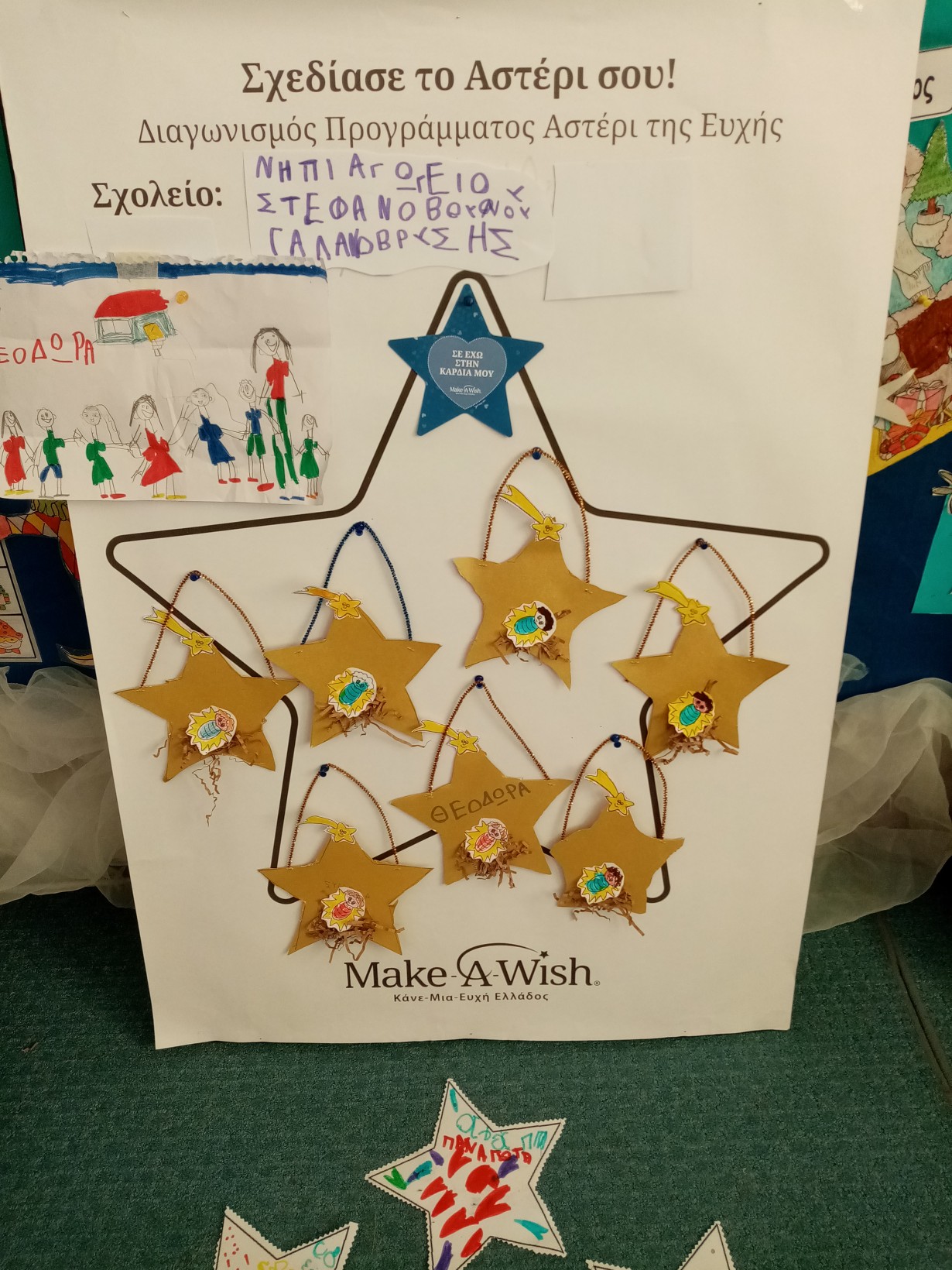 Διαπιστώσαμε συζητώντας ότι υπάρχουν παιδιά που δεν έχουν τα αγαθά που έχουμε εμείς όπως υγεία, ρούχα, παιχνίδια, σπίτι για να μείνουν….και αποφασίσαμε να τα ζωγραφίσουμε και να στολίσουμε το μεγάλο αστέρι του MAKE A WISH !!