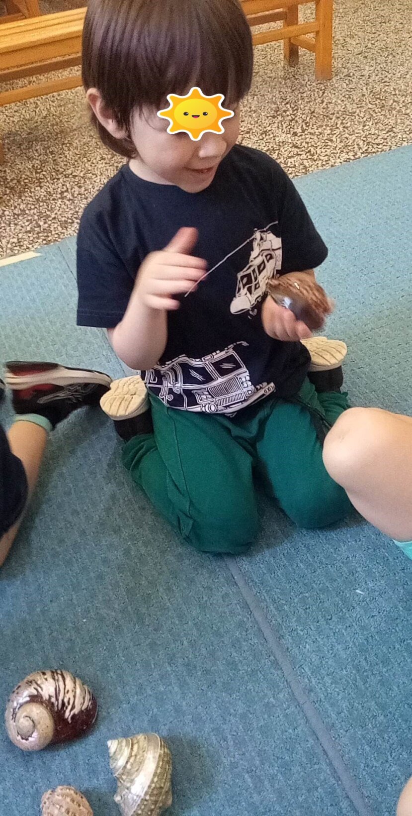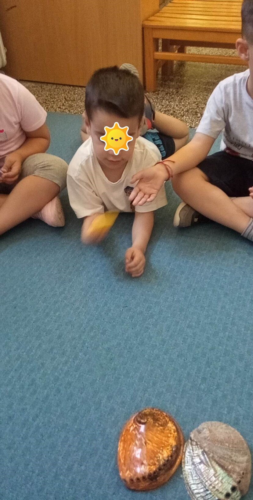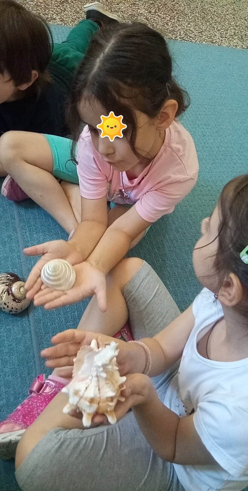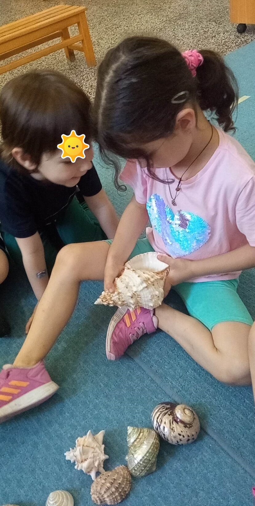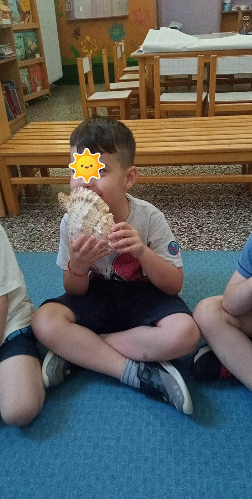 Τα παιδιά είδανε, πιάσανε και παίξανε με αληθινά κοχύλια που έφερε στο σχολείο η νηπιαγωγός …