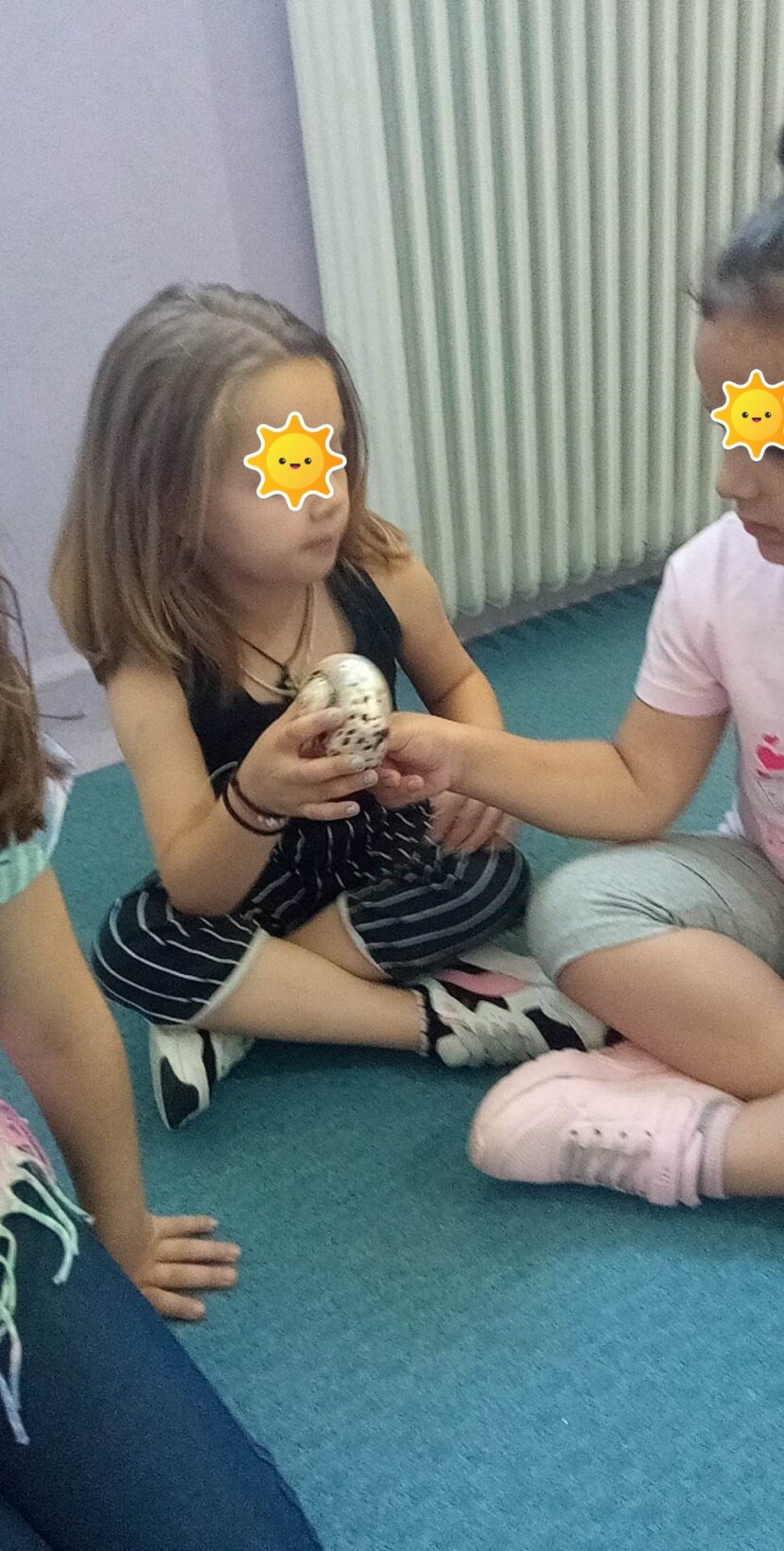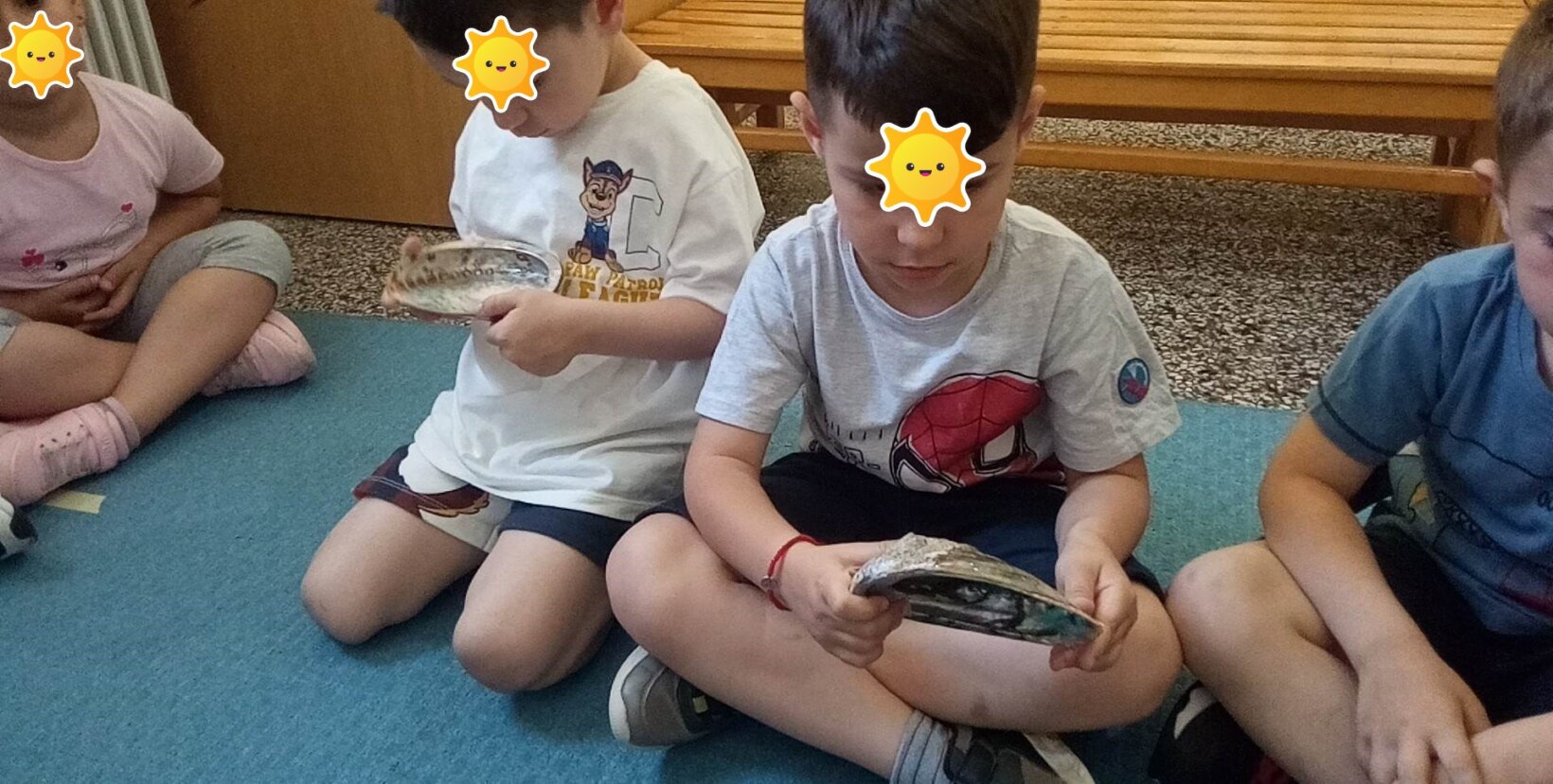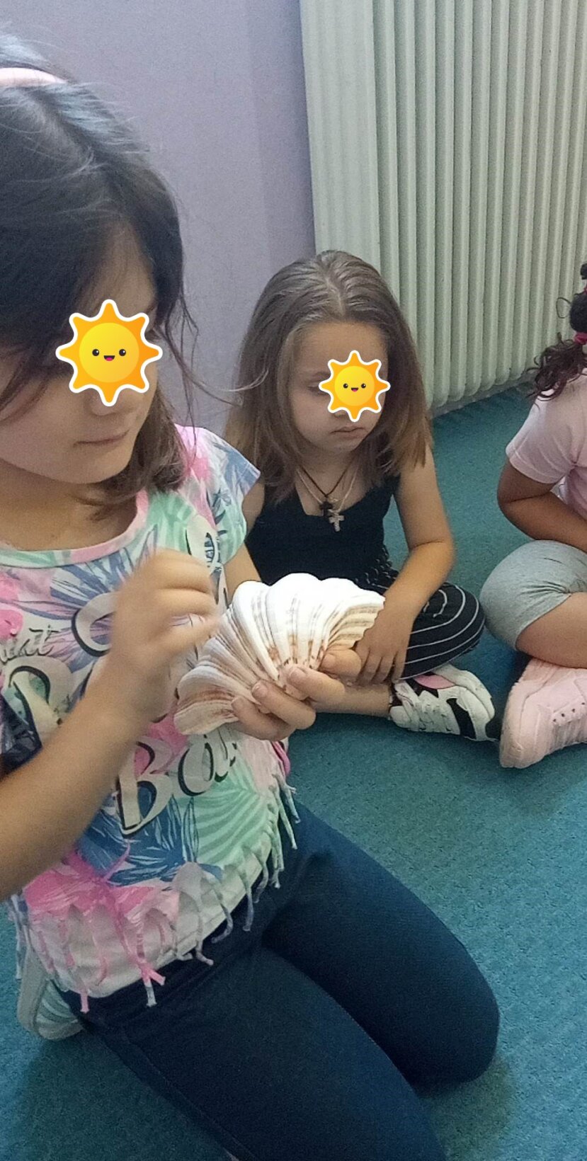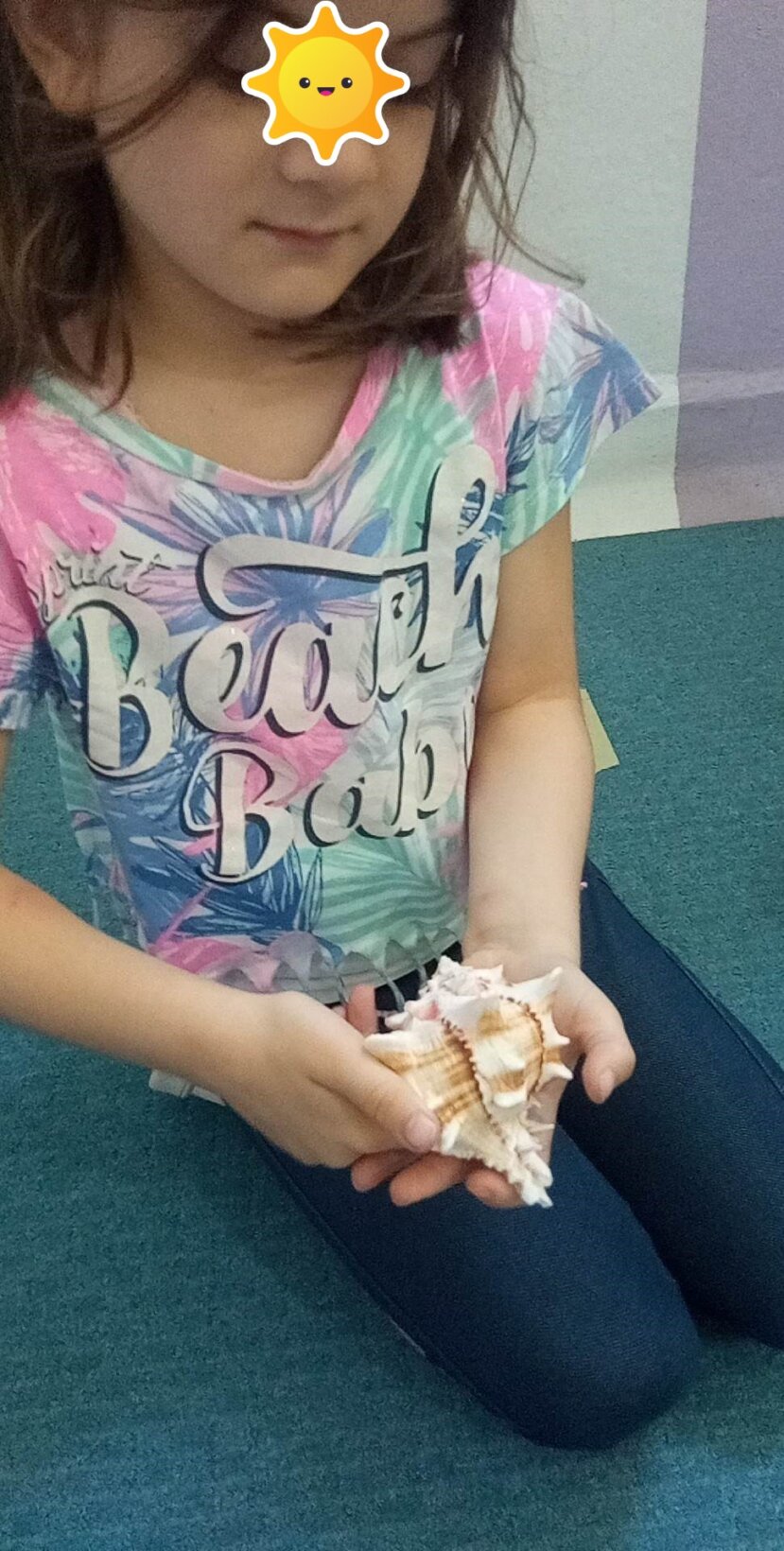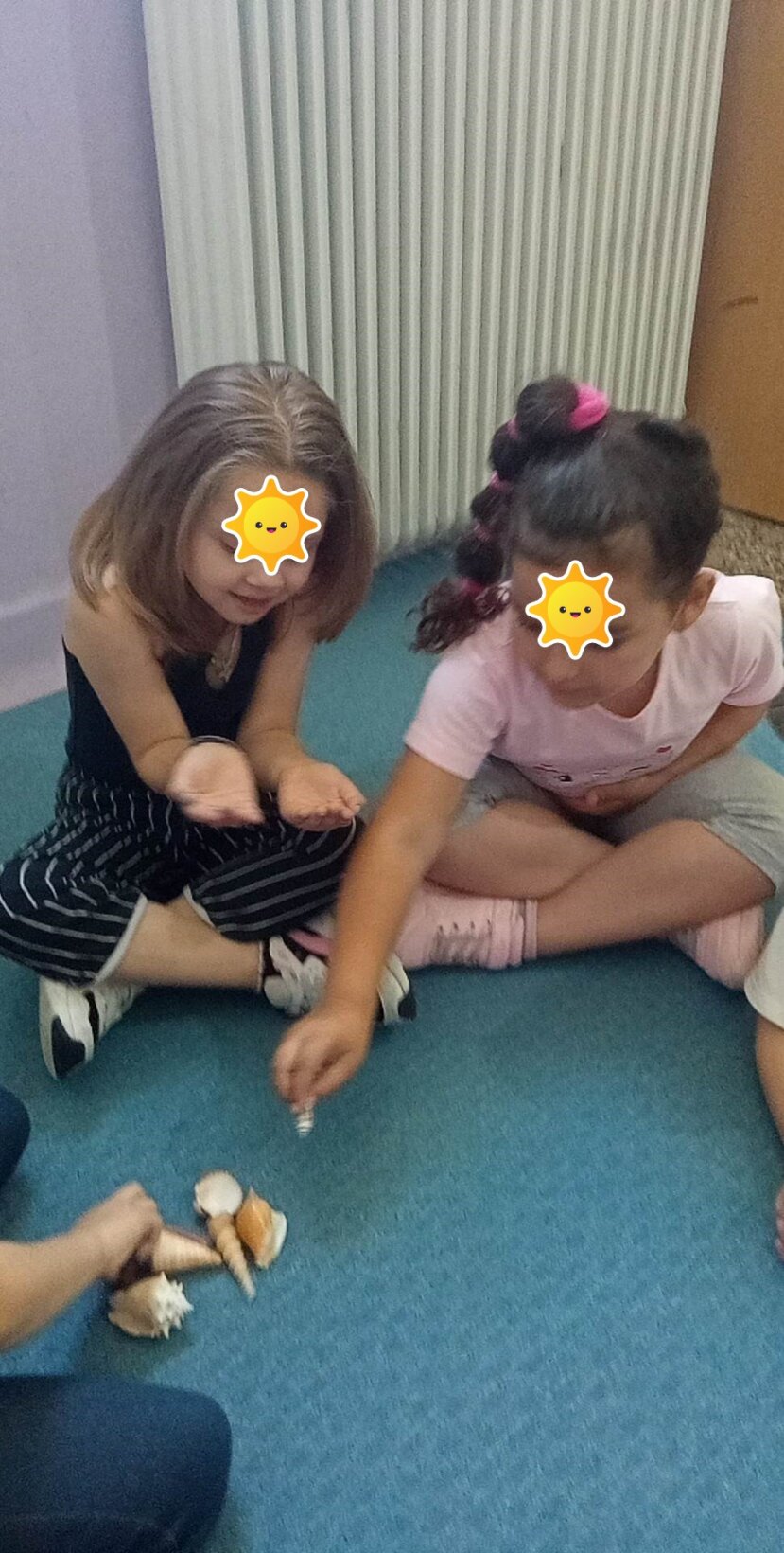 Τα παιδιά είδανε, πιάσανε και παίξανε με αληθινά κοχύλια που έφερε στο σχολείο η νηπιαγωγός …