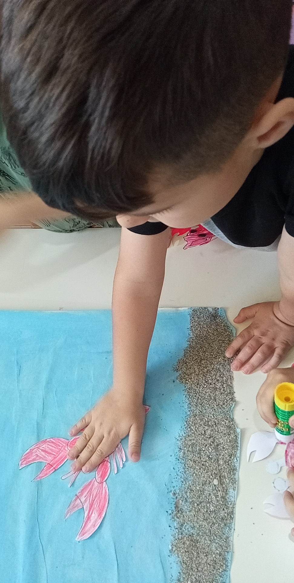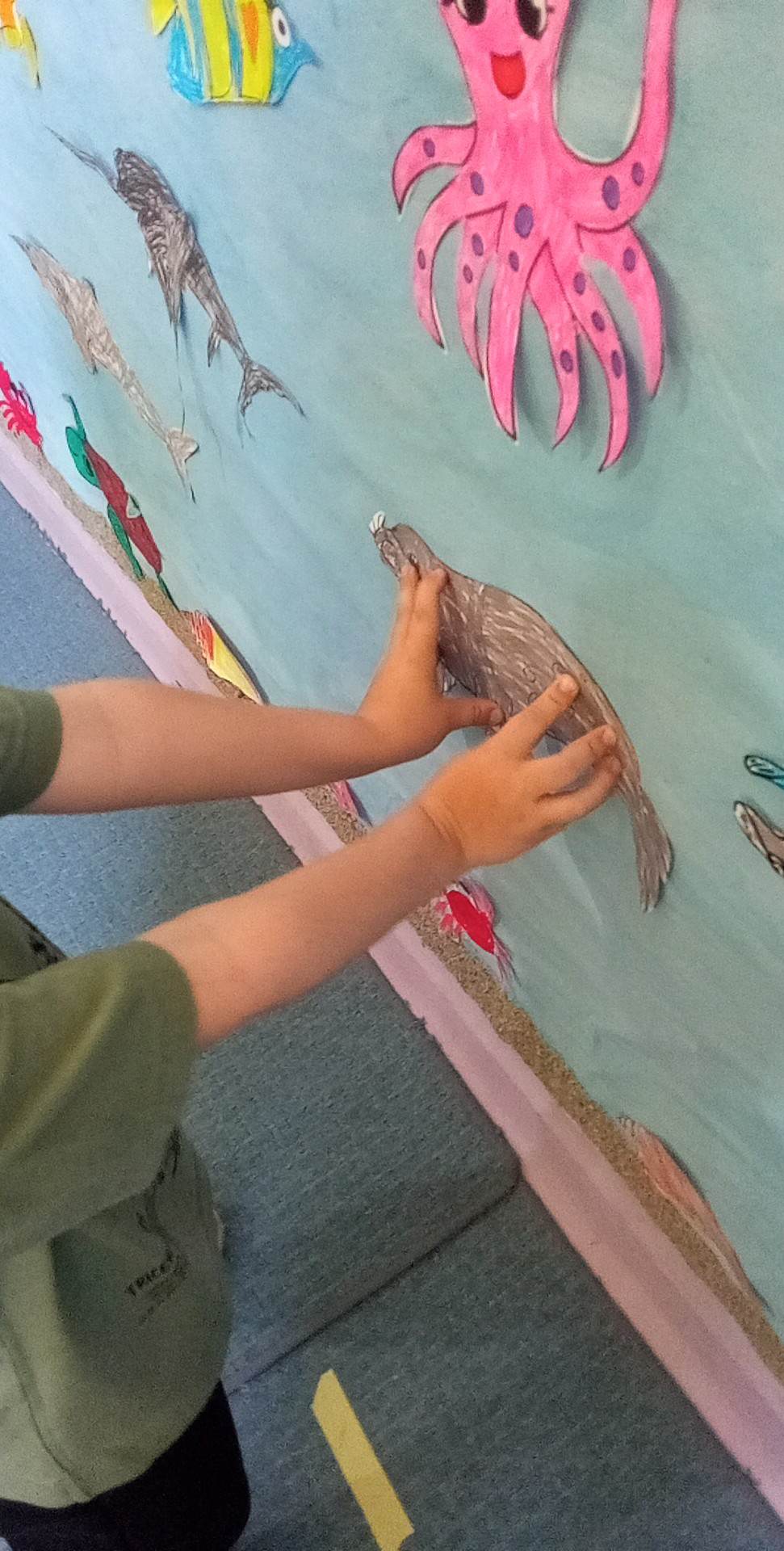 Μιλήσαμε για τη ζωή στη θάλασσα και τα παιδιά με καταιγισμό ιδεών ανέφεραν ότι θαλάσσιο οργανισμό γνώριζαν : ψάρια, καρχαρίες, φάλαινες, κοχύλια, φύκια…κλπ και θέλησαν να μάθουν περισσότερα γι αυτά: τι τρώνε τα ψάρια , τι γεννάνε και που κρύβονται όταν κινδυνεύουν…
