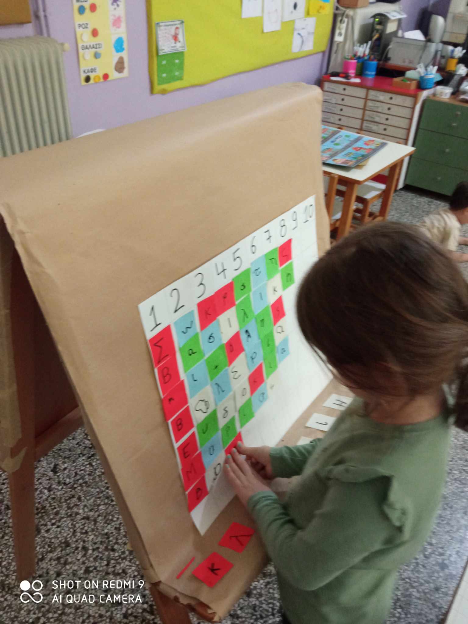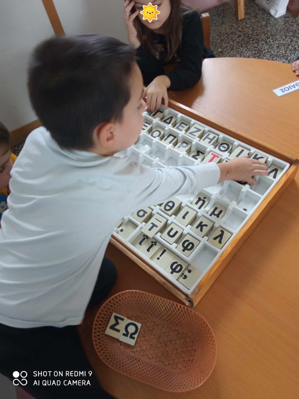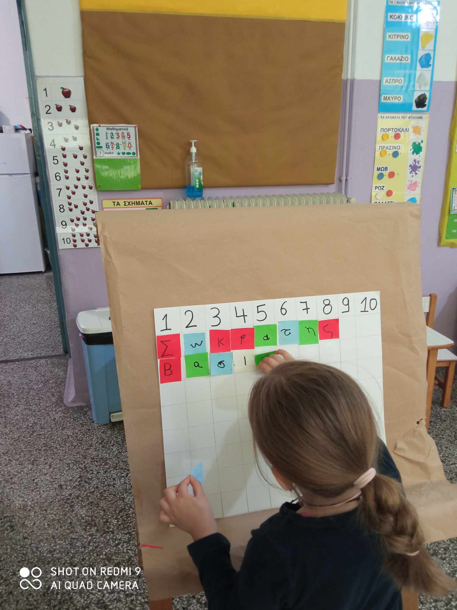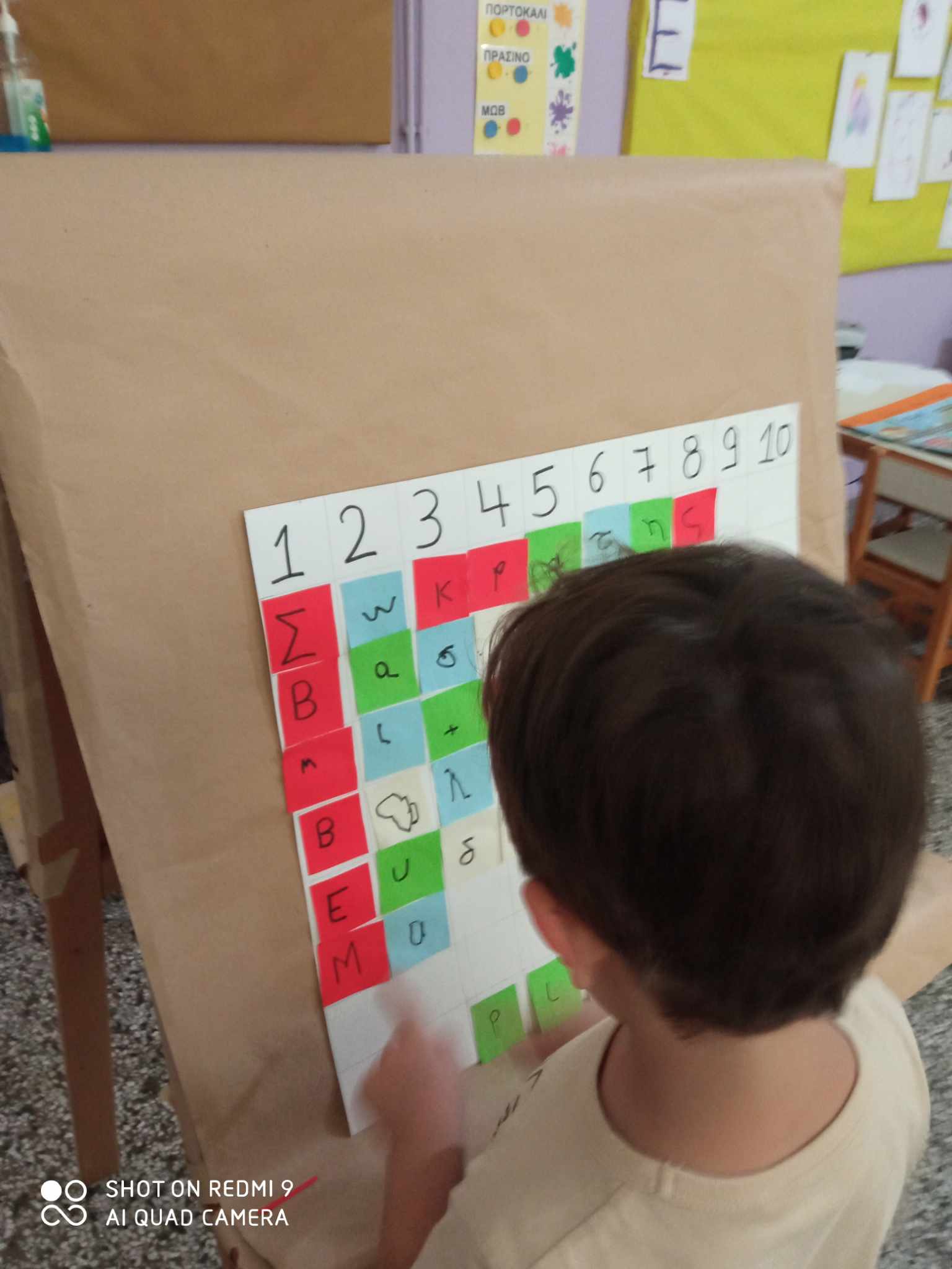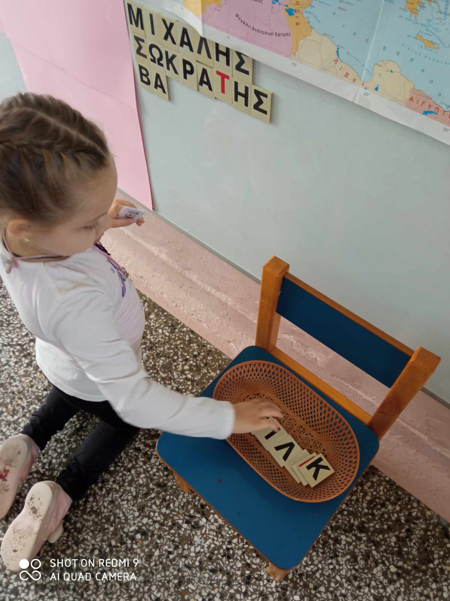 Από τις πρώτες μέρες στο σχολείο τα παιδιά μαθαίνουν να αναγνωρίζουν το όνομά τους χρησιμοποιώντας καρτελάκια, για το παρουσιολόγιο και τις γωνιές, για τις ομάδες υπηρείας και αλλόυ. Ξεχωρίζουν το αρχικό γράμμα του και σταδιακά μαθαίνουν και να γράφουν όπως μπορούν το όνομά τους στις εργασίες σους , στις ζωγραφιές τους κι όπου αλλού χρειάζεται.