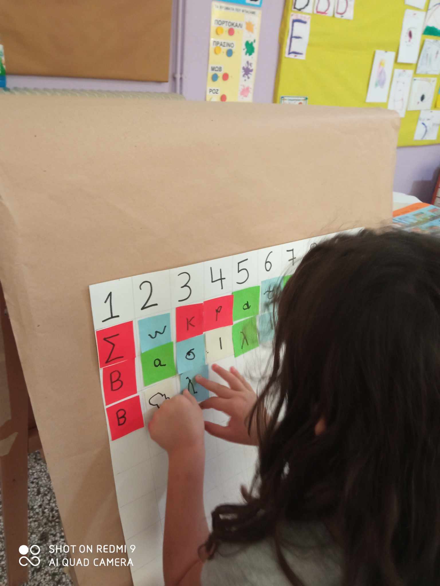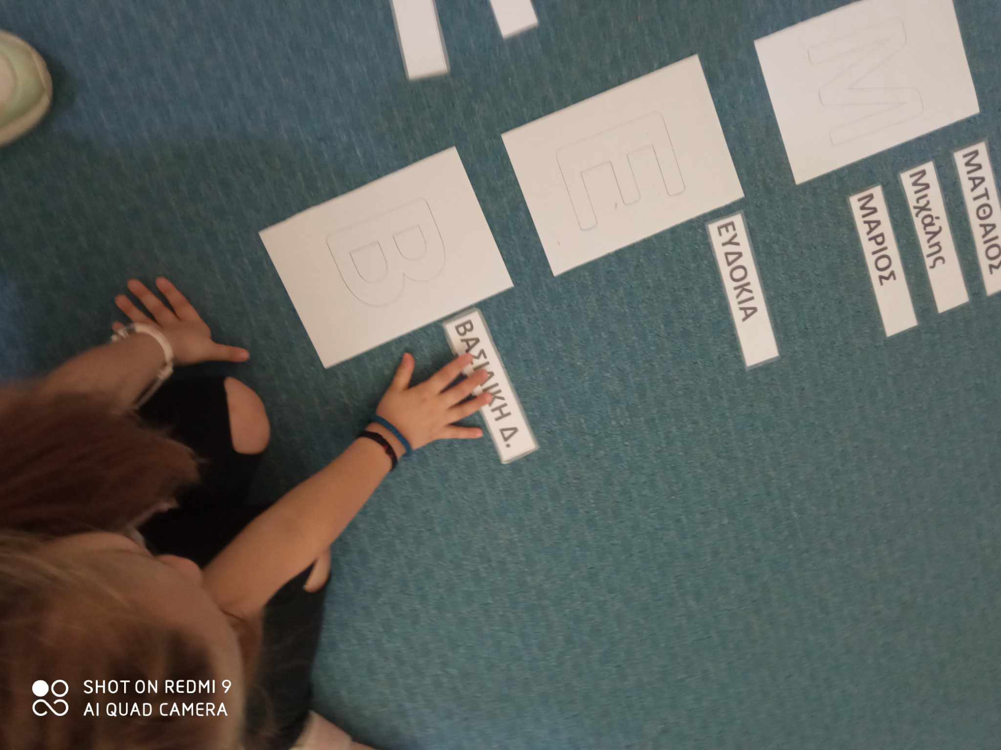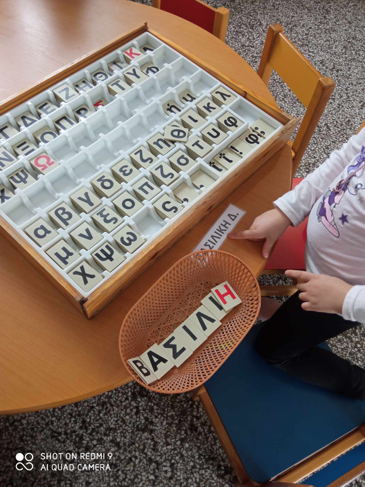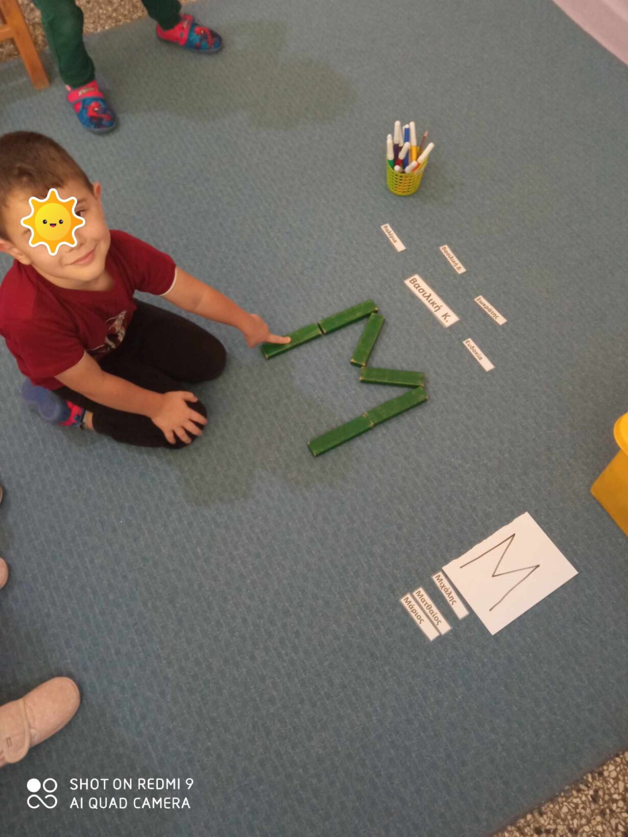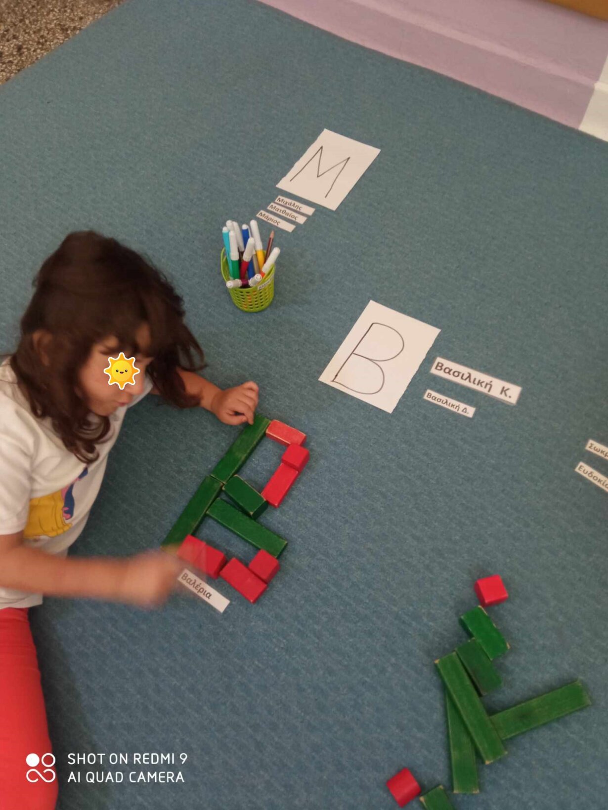 Από τις πρώτες μέρες στο σχολείο τα παιδιά μαθαίνουν να αναγνωρίζουν το όνομά τους χρησιμοποιώντας καρτελάκια, για το παρουσιολόγιο και τις γωνιές, για τις ομάδες υπηρείας και αλλόυ. Ξεχωρίζουν το αρχικό γράμμα του και σταδιακά μαθαίνουν και να γράφουν όπως μπορούν το όνομά τους στις εργασίες σους , στις ζωγραφιές τους κι όπου αλλού χρειάζεται.