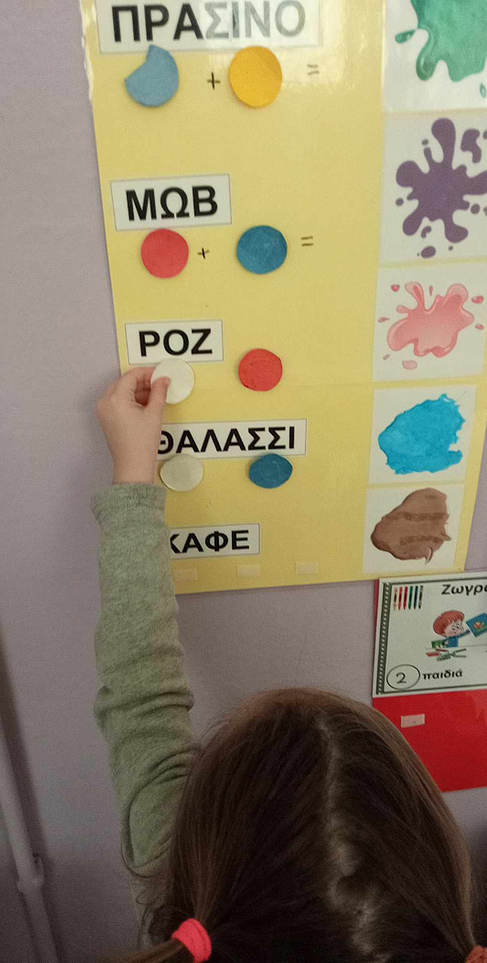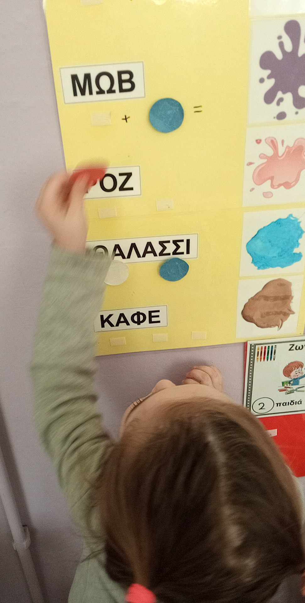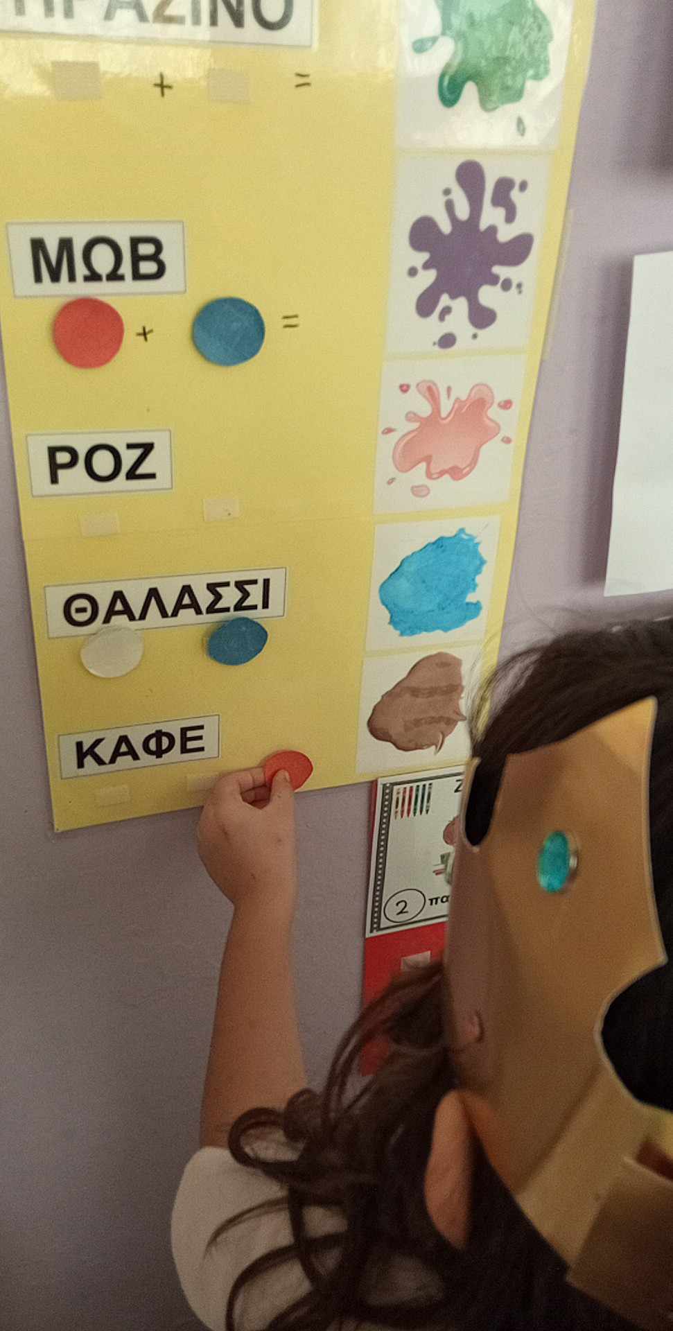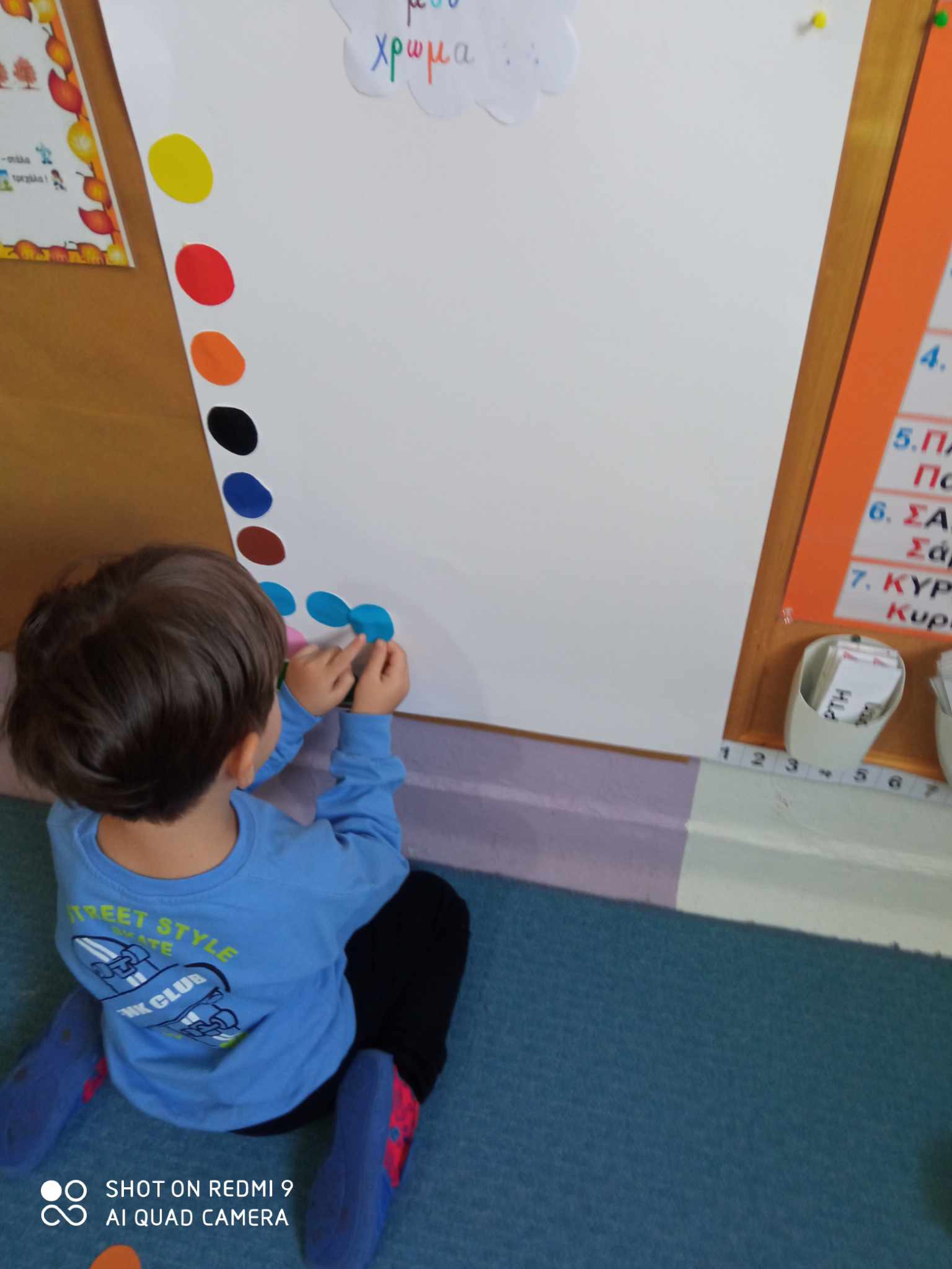 Με αφορμή το φθινόπωρο μαι τα φθινοπωρινά φύλλα, ασχοληθήκαμε με τα χρώματα, τόσο στην αυλή μας, στη φύση γύρω μας, όσο και στην τάξη μας !!! Παντού χρώματα !!! Τα παιδιά τα ονόμασαν, τα αναγνώρισαν μέσα στην τάξη μας, στα ρούχα τους, στην αυλή, παντού !!! Μιλήσαμε για τα “βασικά” χρώματα : το κόκκινο, το κίτρινο και το μπλε. Μάθαμε ποια είναι τα ουδέτερα χρώματα : το άσπρο και το μαύρο και μετά αναρωτηθήκαμε τι θα συμβεί αν ενώσουμε κάποια χρώματα μεταξύ τους !! Αυτά τα ανακαλύψαμε ….μόνοι μας !!! Δείτε πως ….