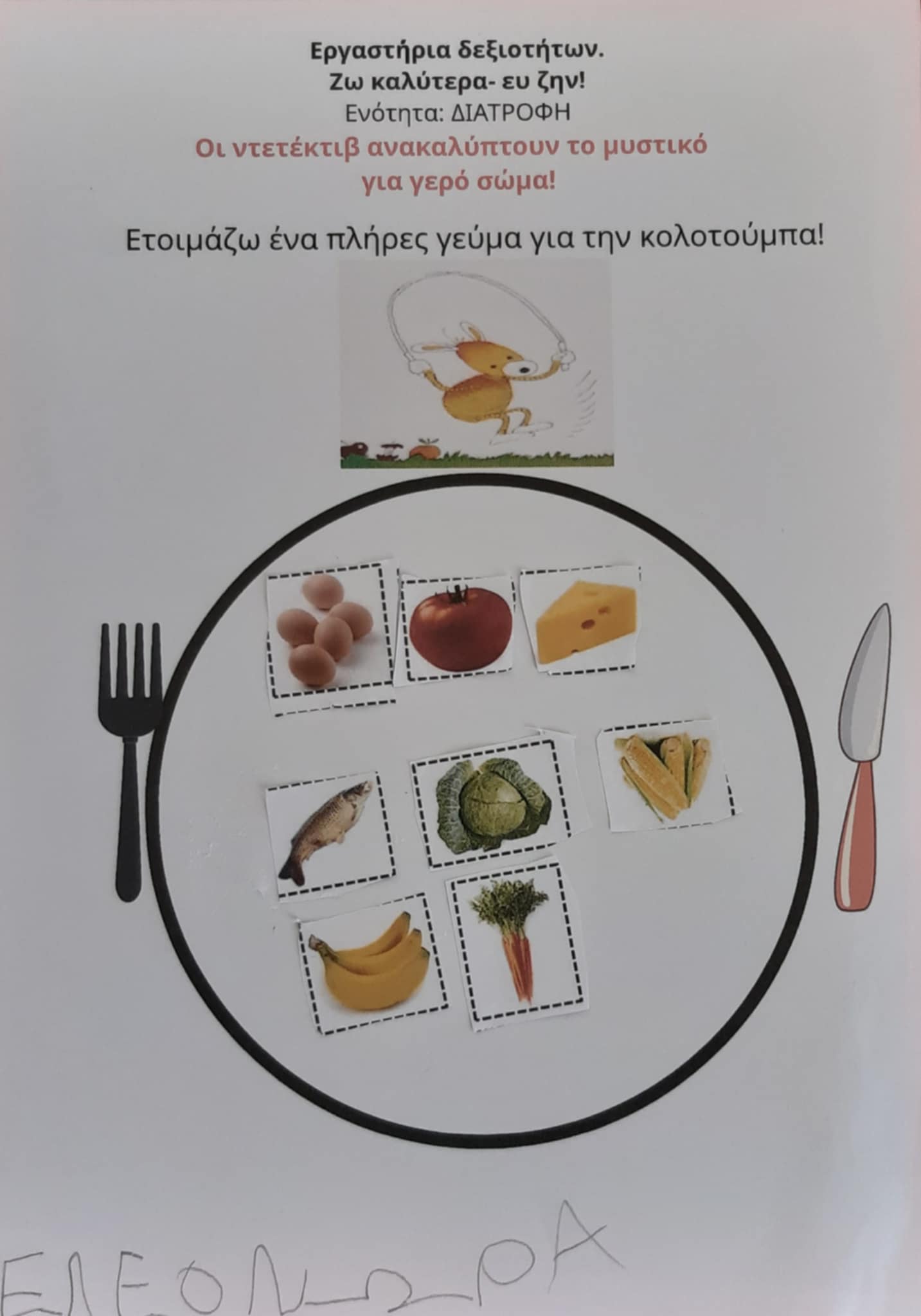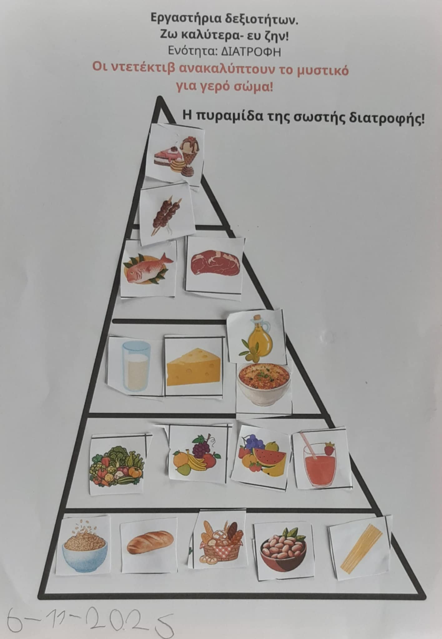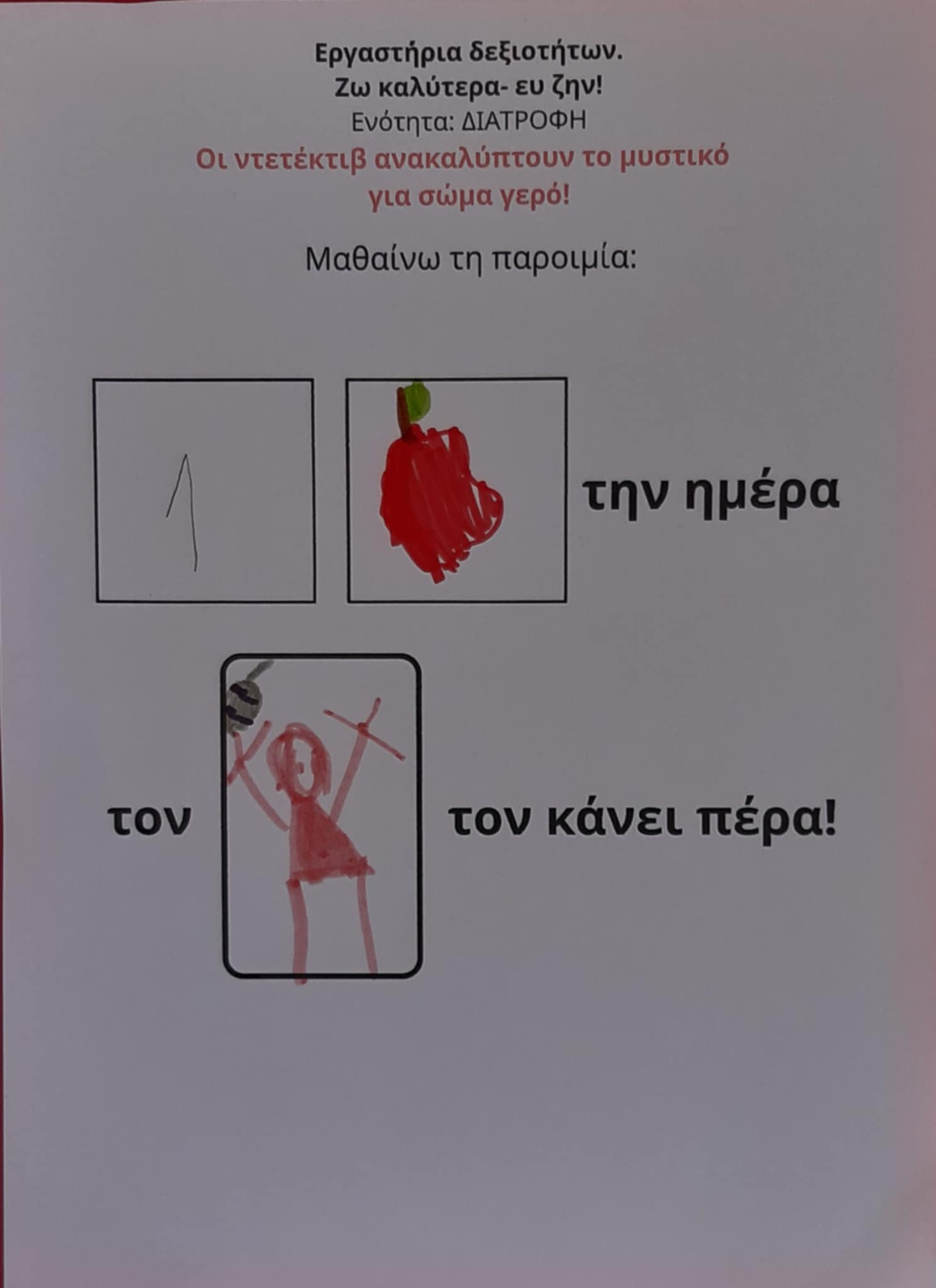 Δεδομένου λοιπόν ότι το πρόβλημα της παχυσαρκίας εντοπίζεται από την παιδική ηλικία, γίνεται εύκολα αντιληπτή η ανάγκη υλοποίησης εκπαιδευτικών προγραμμάτων, προκειμένου να τροποποιηθούν προς το καλύτερο οι στάσεις και οι αντιλήψεις των παιδιών αυτής της ηλικίας και να υιοθετηθούν αλλαγές στον τρόπο ζωής (διατροφή, φυσική δραστηριότητα κτλ) επωφελείς για την υγεία τους. Το εργαστήριο «Οι ντετέκτιβ ανακαλύπτουν το μυστικό για σώμα γερό και μυαλό δυνατό» αποτελεί μία εισαγωγή των μαθητών/τριών στις σωστές διατροφικές συνήθειες και στη σημασία της άσκησης για την υγεία τους.