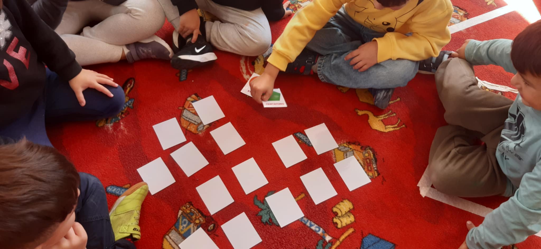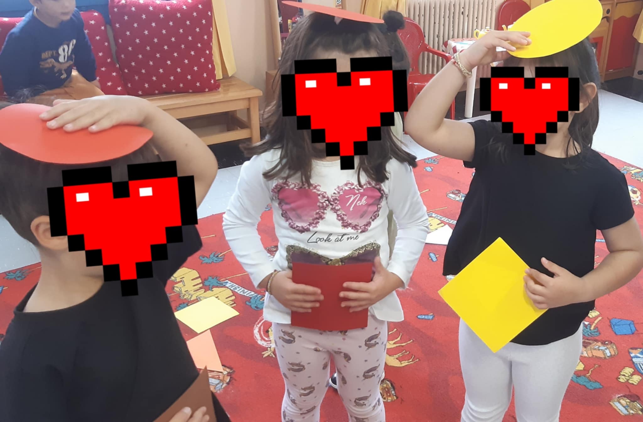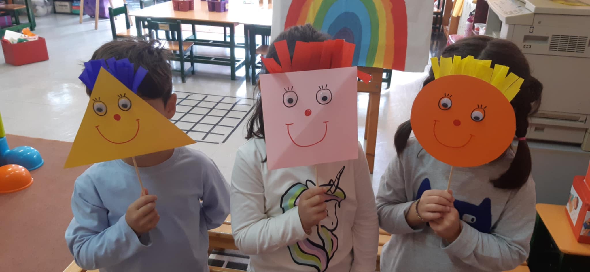 Γνωρίζουμε τα σχήματα μέσα από το παιχνίδι!! Τρέχουμε με τη μουσική και μόλις αυτή σταματήσει, πρέπει να τοποθετήσουμε το σχήμα που μας ζητείται στο σωστό μέρος του σώματος.