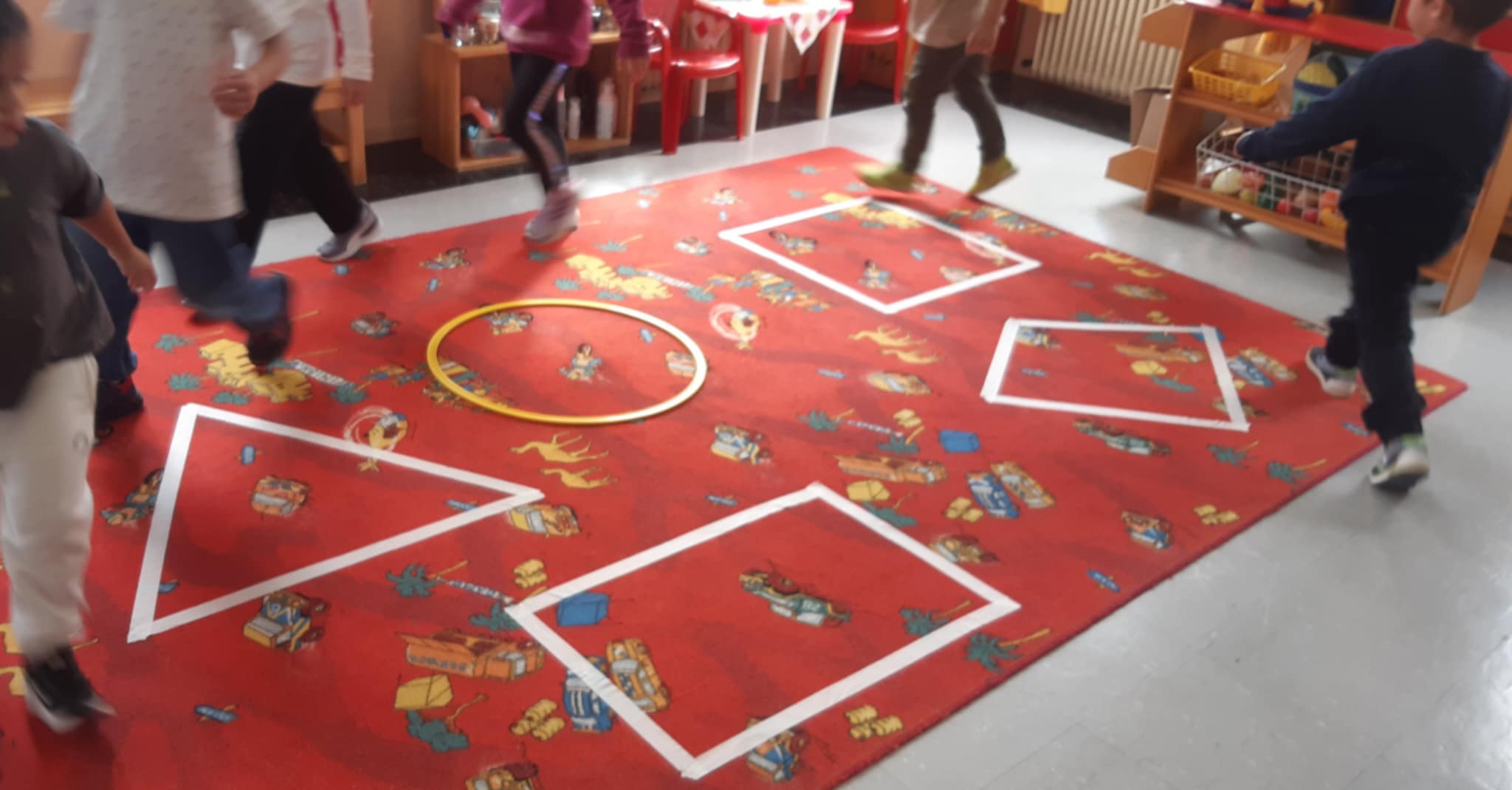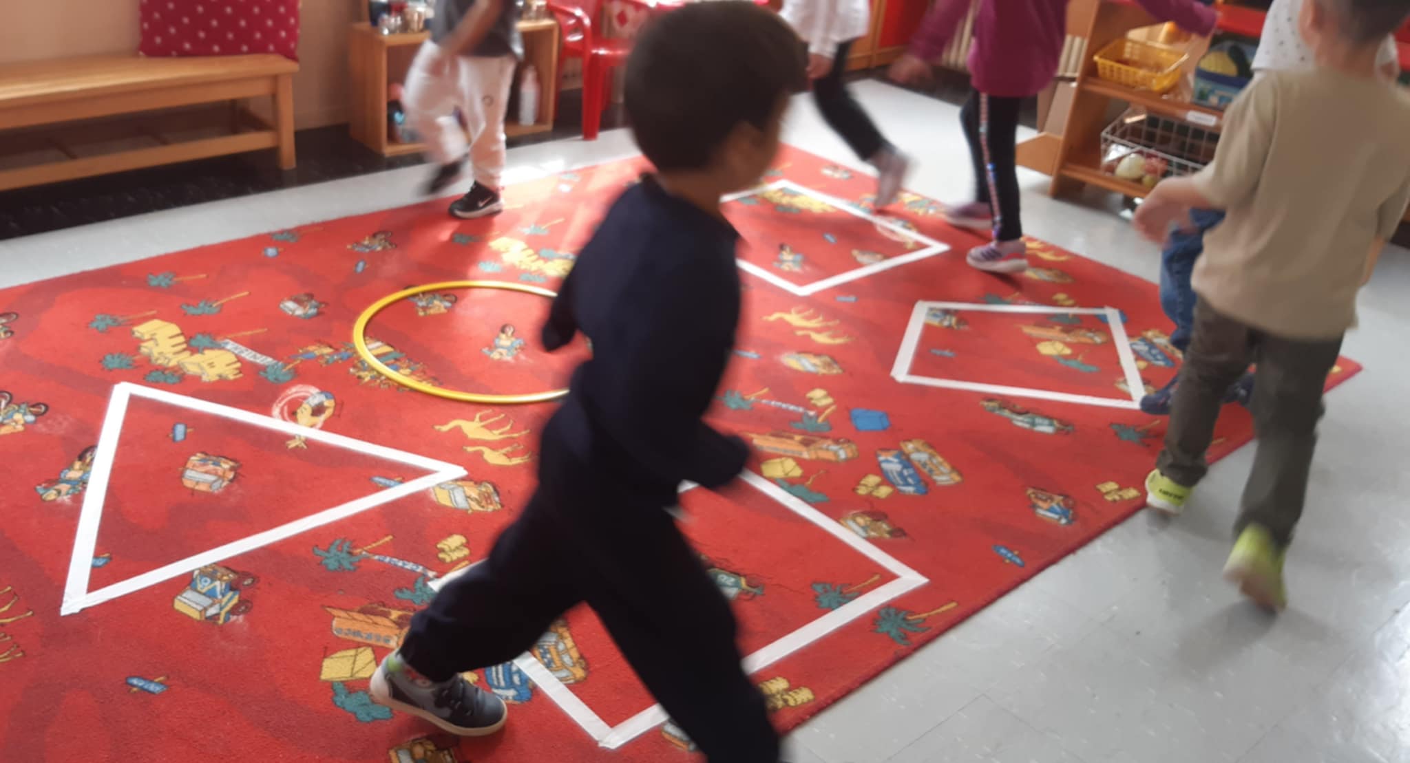 Με τη μουσική τρέχουμε και μπαίνουμε κάθε φορά στο σωστό σχήμα, σύμφωνα με τις οδηγίες!