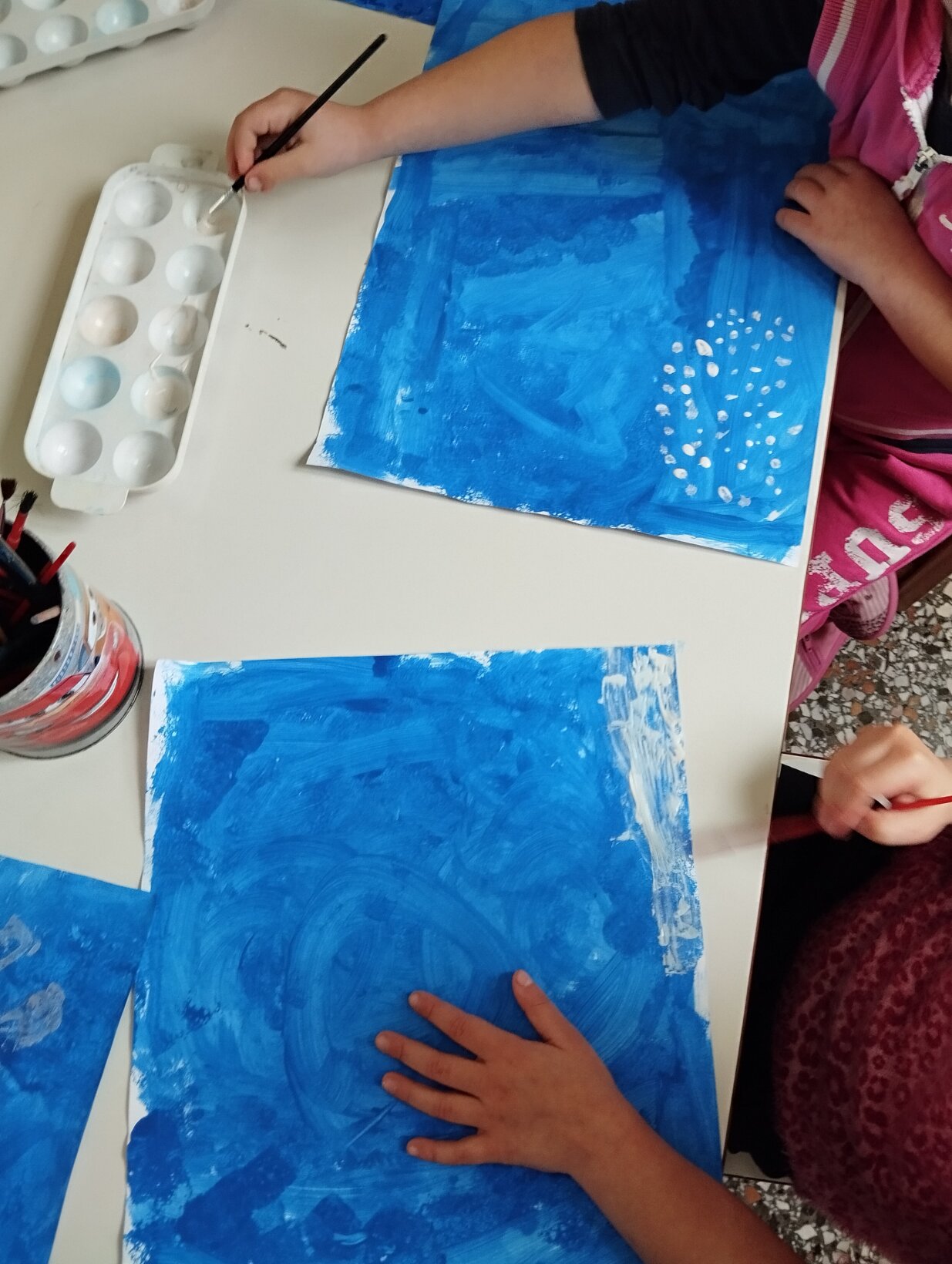 Στο ολοήμερο τμήμα τα παιδιά με την κυρία Κατερίνα αφού παρατήρησαν έναν από τους πολλούς πίνακες ζωγραφικής του Vincent Van Gogh, αποφάσισαν να γίνουν και οι ίδιοι ζωγράφοι και να δημιουργήσουν το αριστούργημα που σας παραθέσαμε.