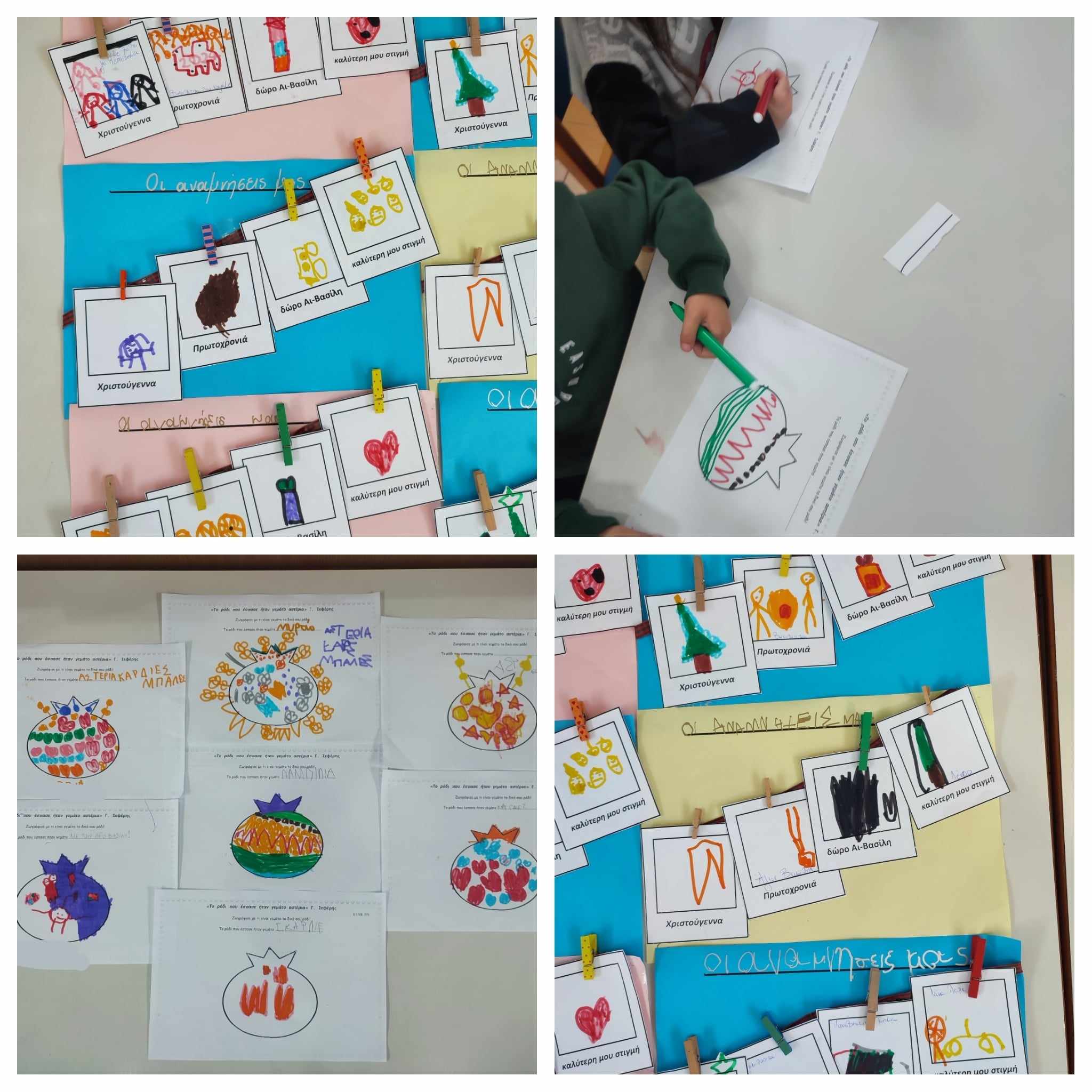Μιλήσαμε για το πως περάσαμε στις διακοπές των Χριστουγέννων και ζωγραφίσαμε τις αναμνήσεις μας.Θέσαμε στόχους για τη νέα χρονιά και γεμίσαμε τα ρόδια μας με πολύχρωμες ευχές, για ένα όμορφο 2024!!