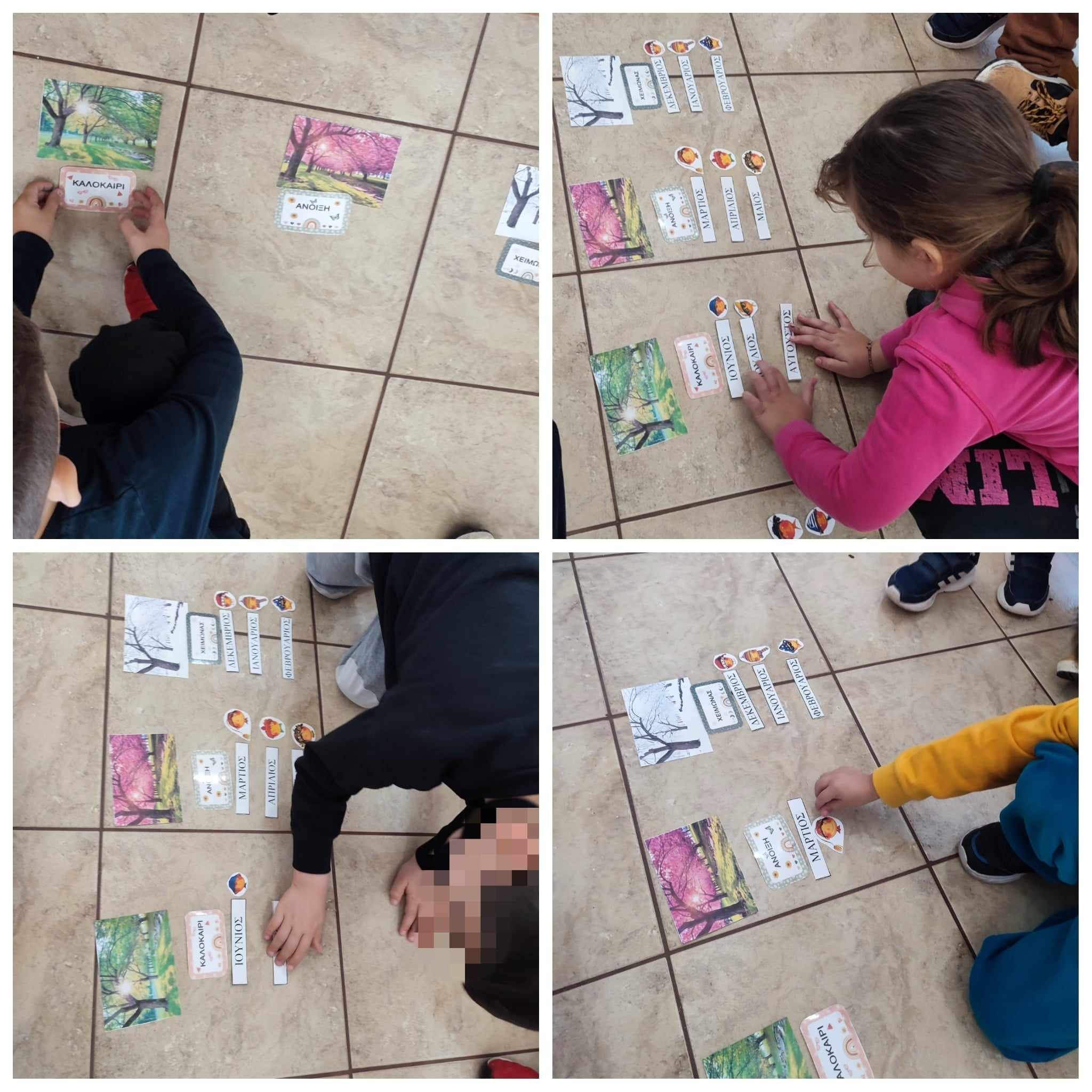 Αφού διακρίναμε τις 4 εποχές, ταξινομήσαμε εικόνες ανάλογα με την εποχή που δείχνουν κι αιτιολογήσαμε την απόφασή μας.