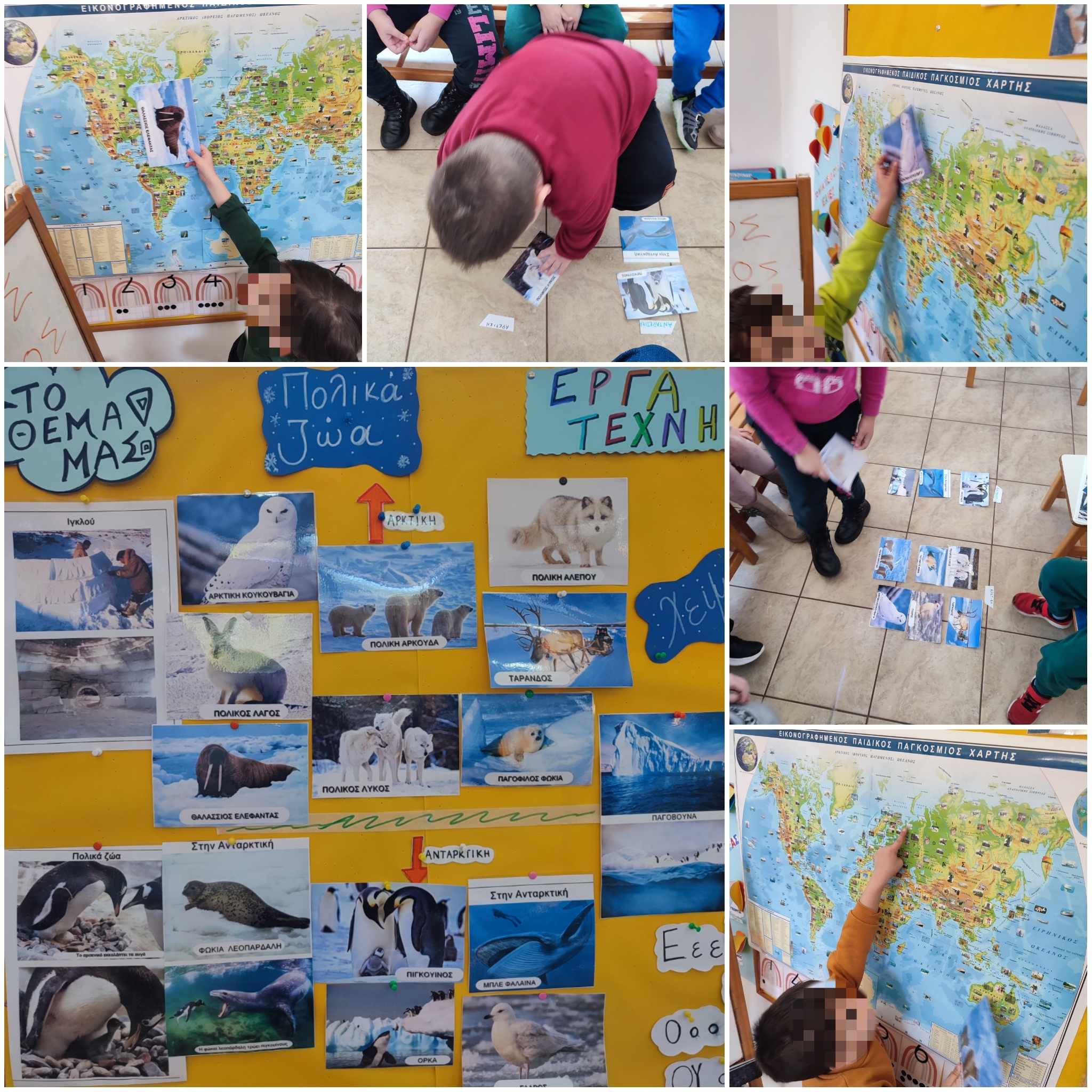 Εντοπίσαμε ποια ζώα υπάρχουν στην Αρκτική και ποια στην Ανταρκτική και τα ομαδοποιήσαμε.