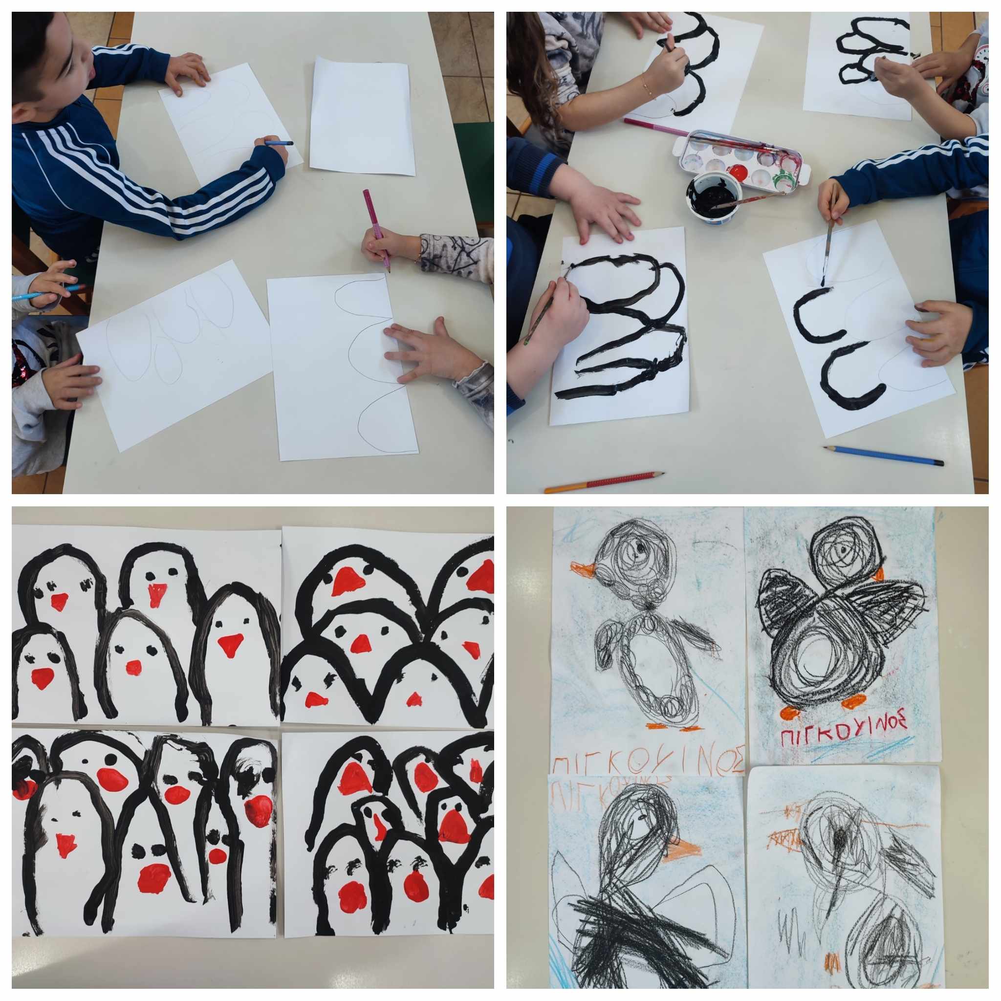 Ζωγραφίσαμε ελεύθερα πιγκουίνους.