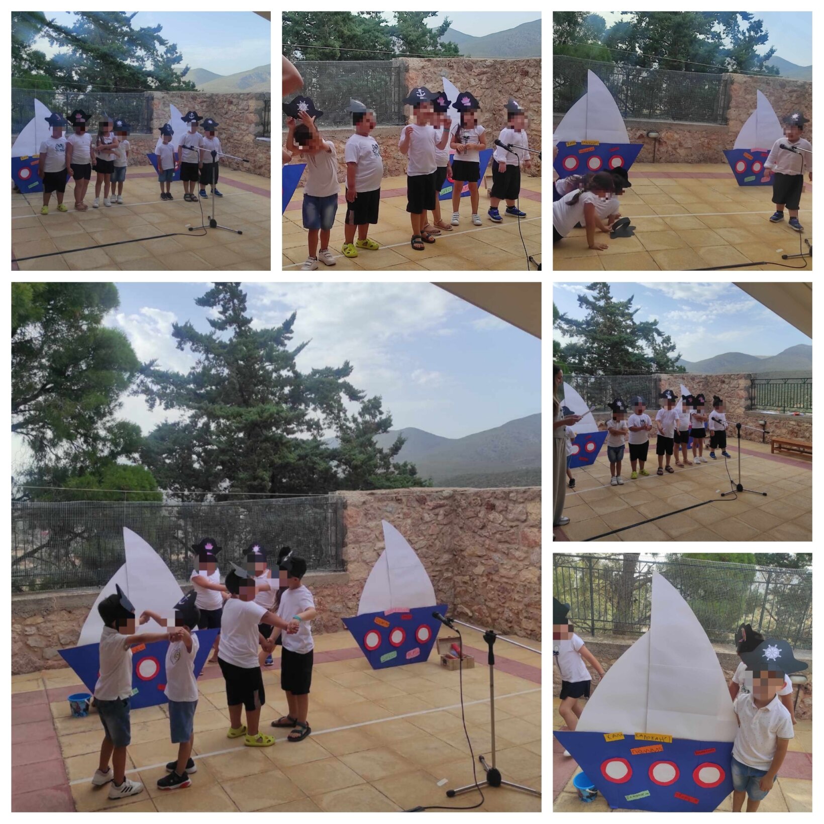 Τις τελευταίες μέρες της σχολικής χρονιάς πραγματοποιήθηκε η καλοκαιρινή μας γιορτή, βασισμένη στο βιβλίο του Αντώνη Παπαθεοδούλου “Οι καλοί και οι κακοί πειρατές”. Τα παιδιά αποχαιρέτησαν το σχολείο με το θεατρικό και με τραγούδια, ενώ τους μοιράστηκαν τα ενθύμια από το πρώτο τους σχολείο, το Νηπιαγωγείο.