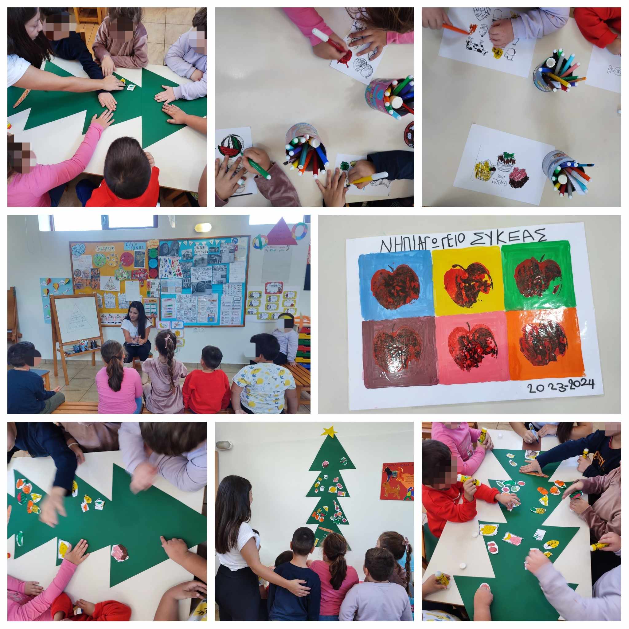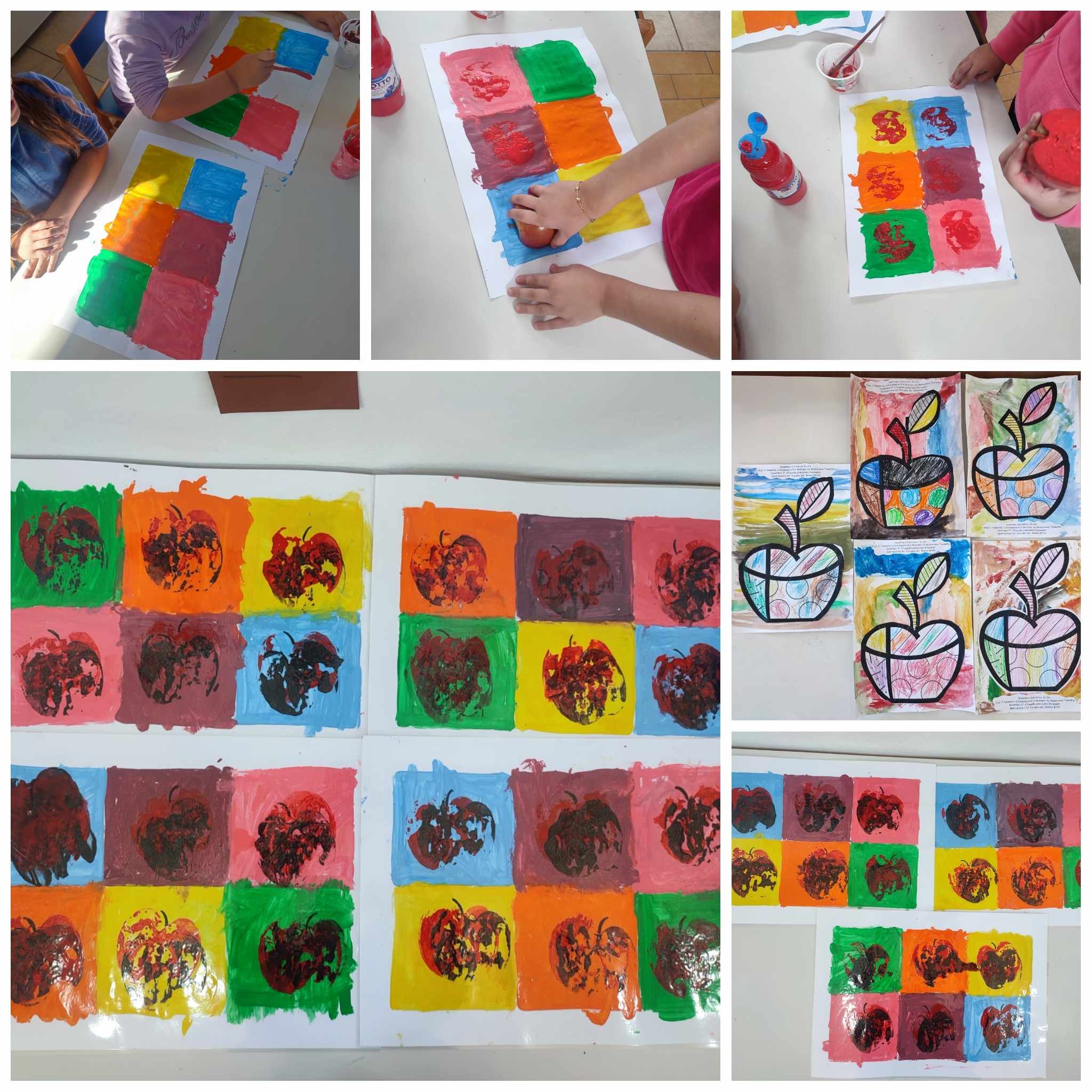 Εκφραστήκαμε εικαστικά φτιάχνοντας το υγιεινό μήλο αλά Romero Britto και τα ατομικά μας σουπλά σε στυλ pop-art, με αποτύπωμα μήλου.