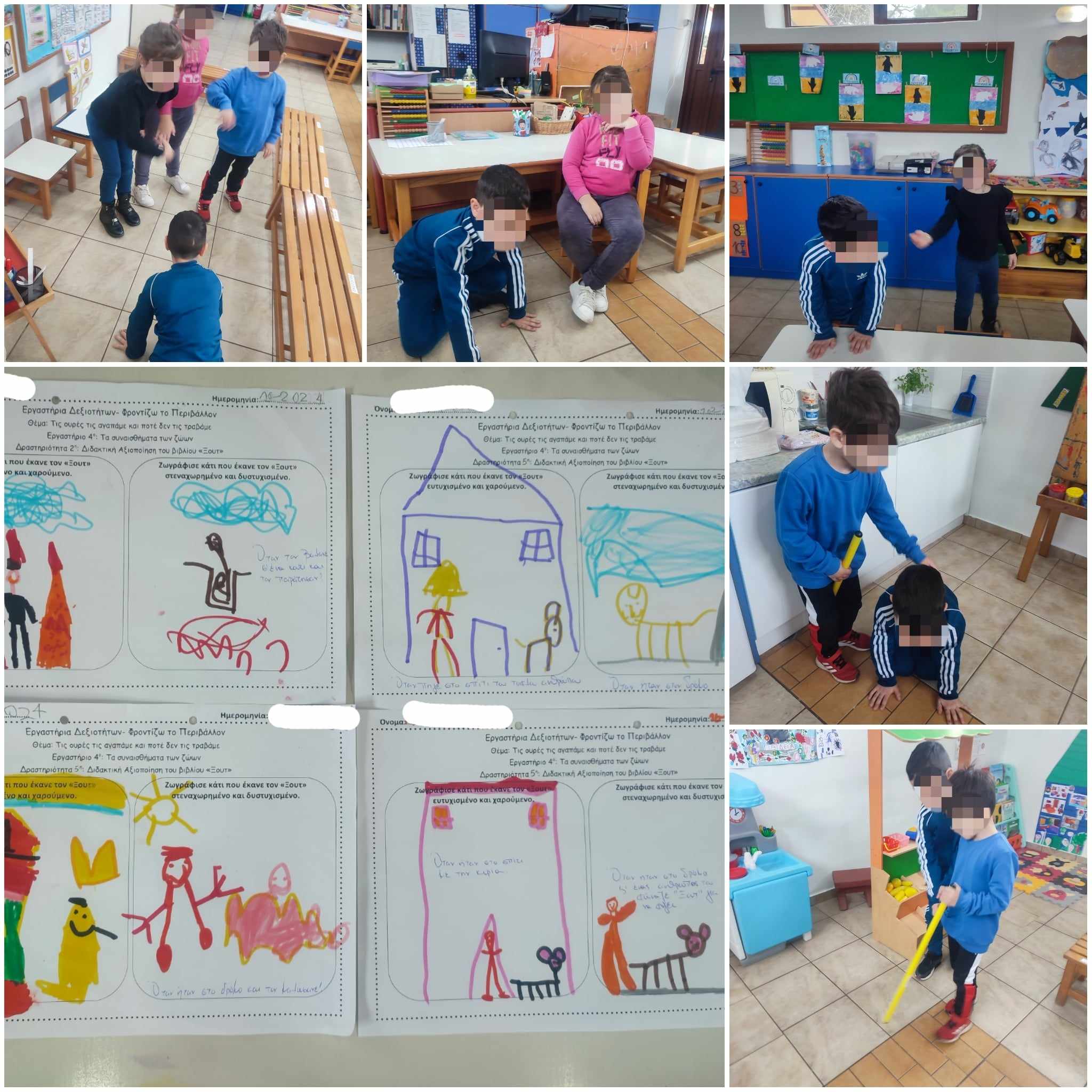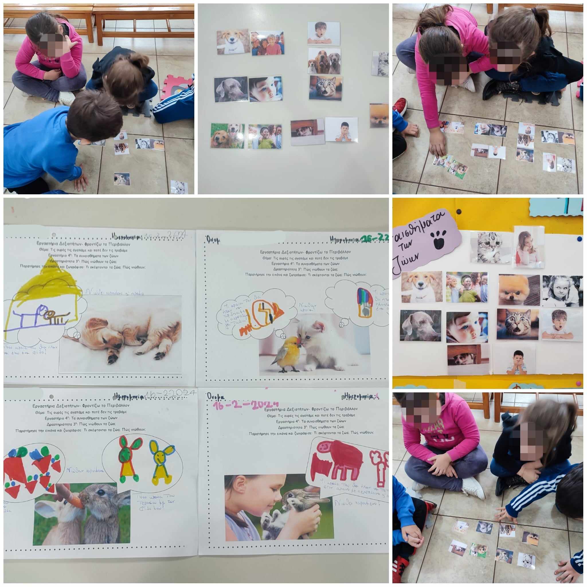 Παρατηρήσαμε εικόνες με συναισθήματα ζώων και συναισθήματα ανθρώπων. Είδαμε ότι όπως οι άνθρωποι, έτσι και τα ζώα έχουν συναισθήματα. Ταυτίσαμε τα συναισθήματα των ζώων με τα συναισθήματα των ανθρώπων. Ζωγραφίσαμε τι να σκέφτονται και πως νιώθουν τα ζώα, της εικόνας που επιλέξαμε.
