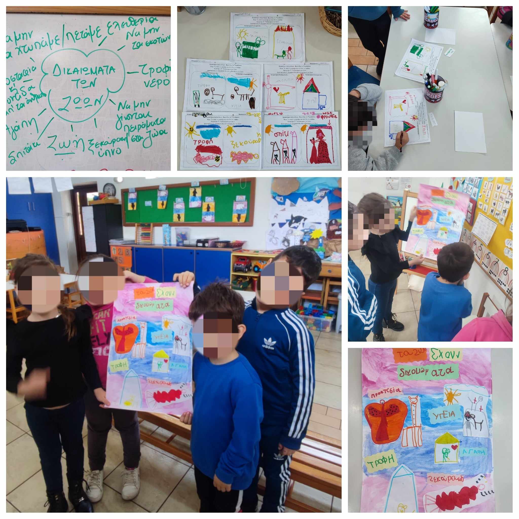 Διαβάσαμε τη σύμβαση του ΟΗΕ για τα δικαιώματα των ζώων. Ζωγραφίσαμε δύο απο τα δικαιώματα τους και δημιουργήσαμε την αφίσα των δικαιωμάτων τους.