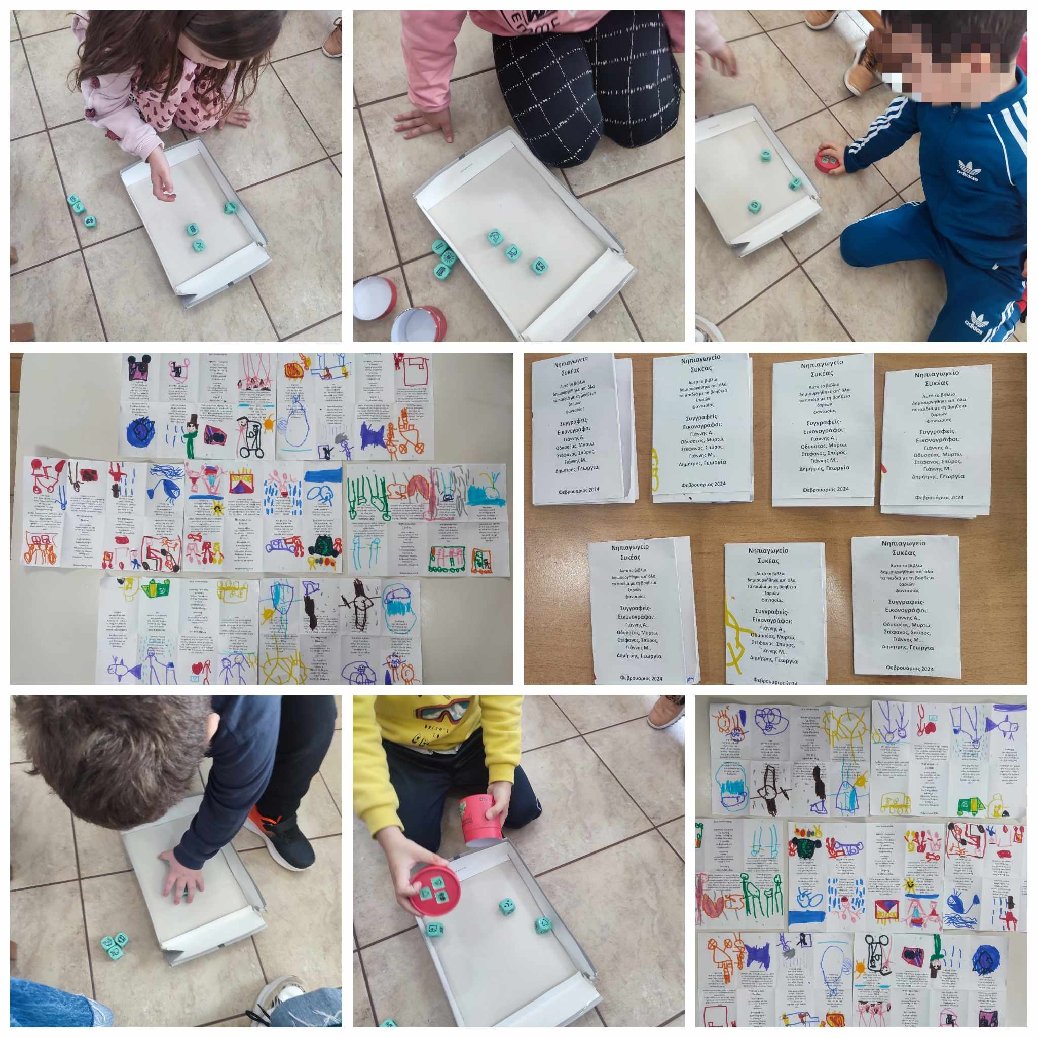 Κάθε παιδί έρχινε τα ζάρια και με βάση τις εικόνες έπρεπε να φτιάξει μια ιστορία. Το επόμενο παιδί, ανάλογα με τα ζάρια που έτυχε, έπρεπε να συνεχίσει την ιστορία.