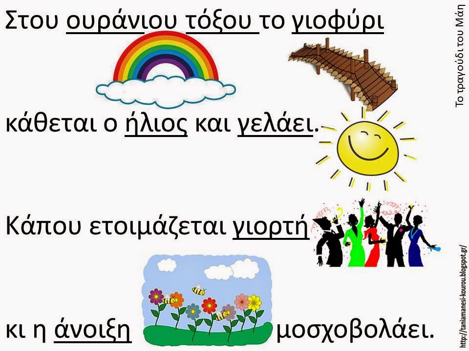 Επεξεργαστήκαμε το τραγούδι με το ακόλουθο εικονόλεξο που βρήκαμε στο blog της εξαίρετης συναδέλφου Τάνιας Μάνεση.