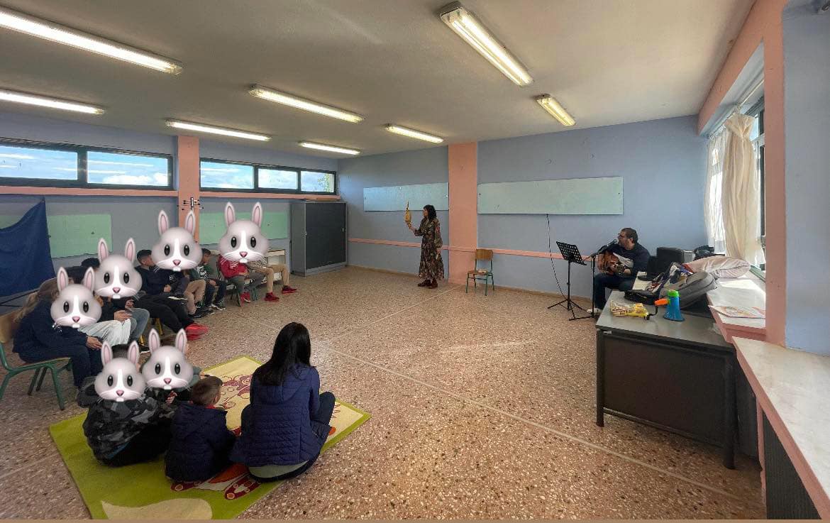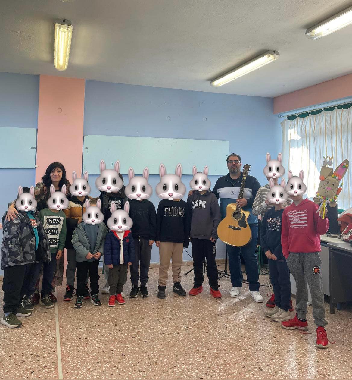 Η καλλιτεχνική ομάδα “Οδός Παραμυθίας” επισκέφθηκε το σχολείο μας, ύστερα από πρόσκληση. Η κυρία Γιώτα με το μουσικό της ταίρι, με τη συνοδεία μουσικής, αφού έπαιξε μαζί μας παιχνίδια γνωριμίας, μας παρουσίασε το διαδραστικό πρωτότυπο παραμύθι “Το νόημα του Πάσχα”. Μέσα από τις περιπέτειες του λαγού, ανακαλύψαμε το πραγματικό νόημα του Πάσχα. Μάθαμε για τις λαμπάδες, για τα αυγά, για το φοίνικα και πολλά ακόμα! Περάσαμε υπέροχα!
