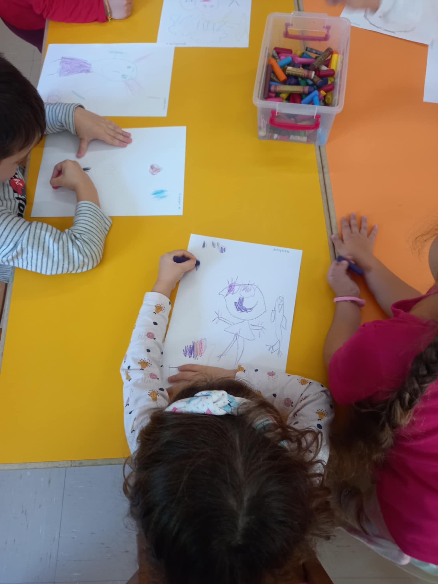 Με τα νήπια μας μιλήσαμε για το φόβο που προκαλεί ο Πόλεμος Παρατηρήσαμε τον πίνακα Η ΚΡΑΥΓΗ και στην συνέχεια τα νήπια αποτύπωσαν στο χαρτί την δική τους φιγούρα που εκφράζει τον φόβο.