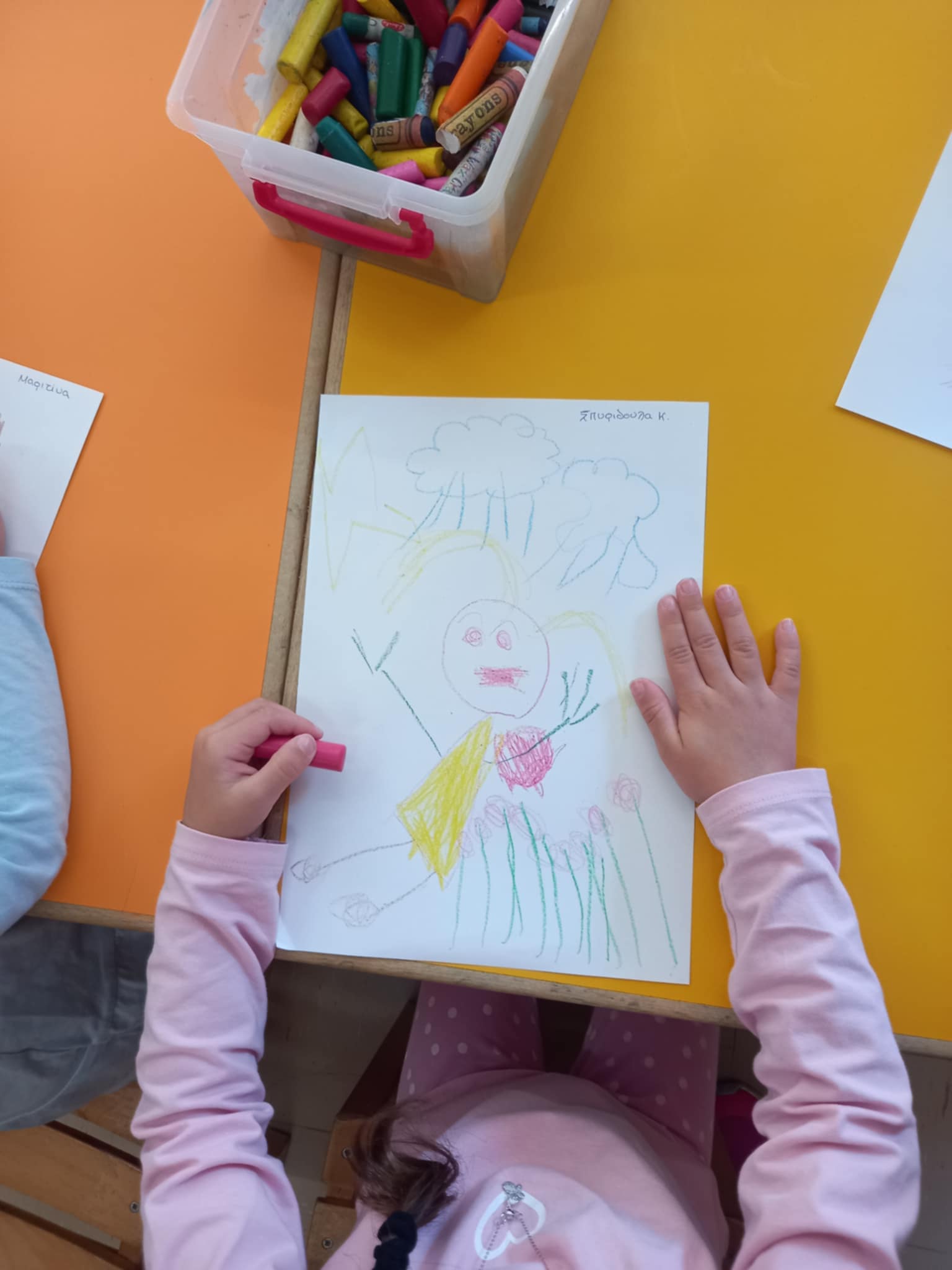 Στην συνέχεια γνωρίσαμε σπουδαίους πίνακες ζωγραφικής της Ελπίδας του George Federick και της ειρήνης του VanGogh που έφεραν τα παιδιά στην τάξη με την βοήθεια των γονιών τους Τα προνηπιάκια μας έγιναν μικροί ζωγράφοι και δημιούργησαν την δική τους ειρήνη.
