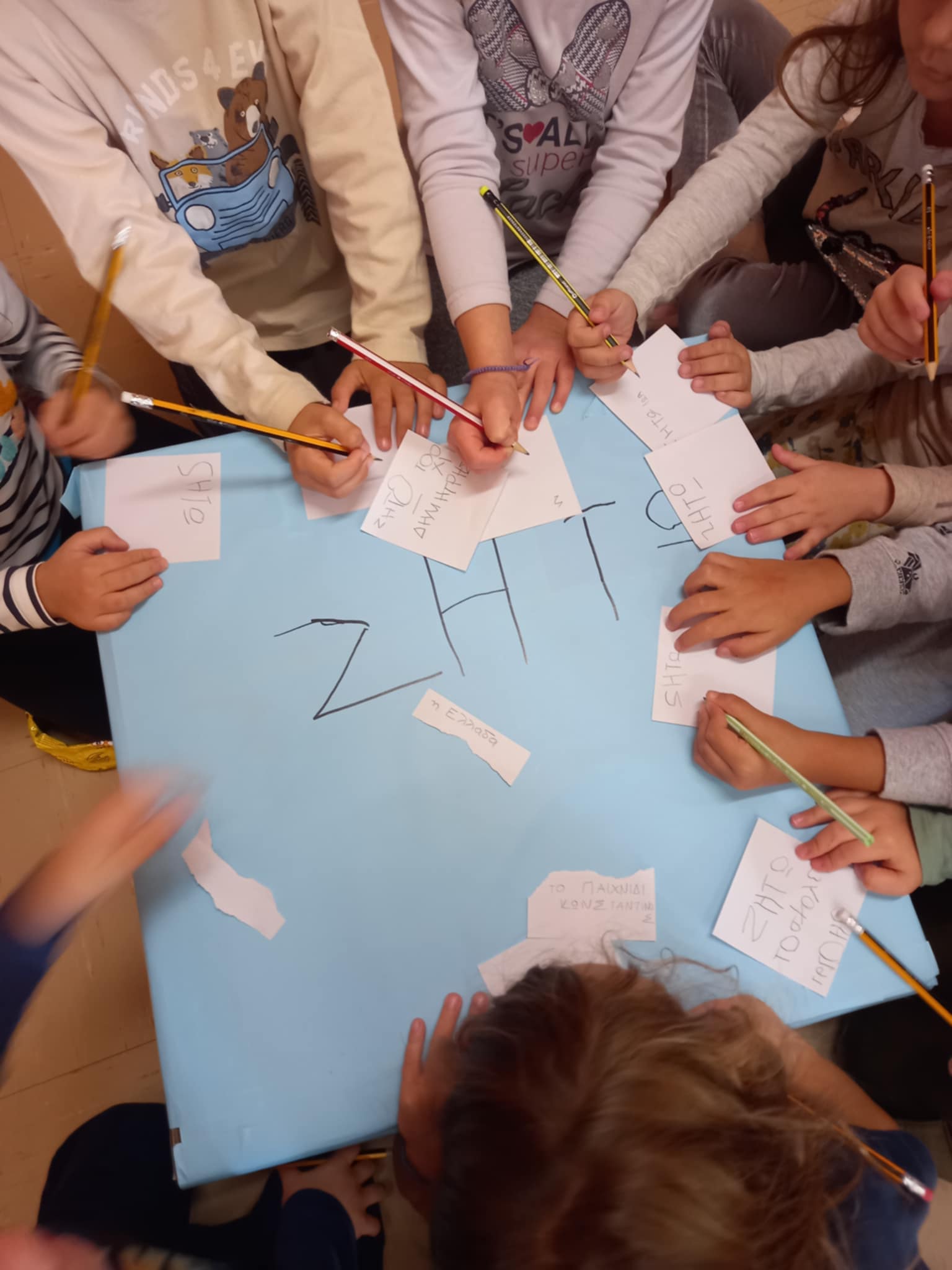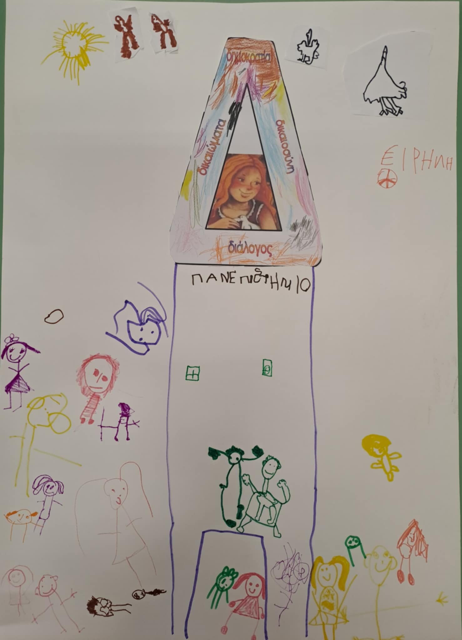 Συζητήσαμε για την Δημοκρατία και το δικαίωμα της εκπαίδευσης. Τα παιδιά ψήφισαν να φτιάξουμε το Πανεπιστήμιο όπου εκεί υπάρχει πάντα χαρά και ειρήνη και πηγαίνουν όλα τα παιδιά.