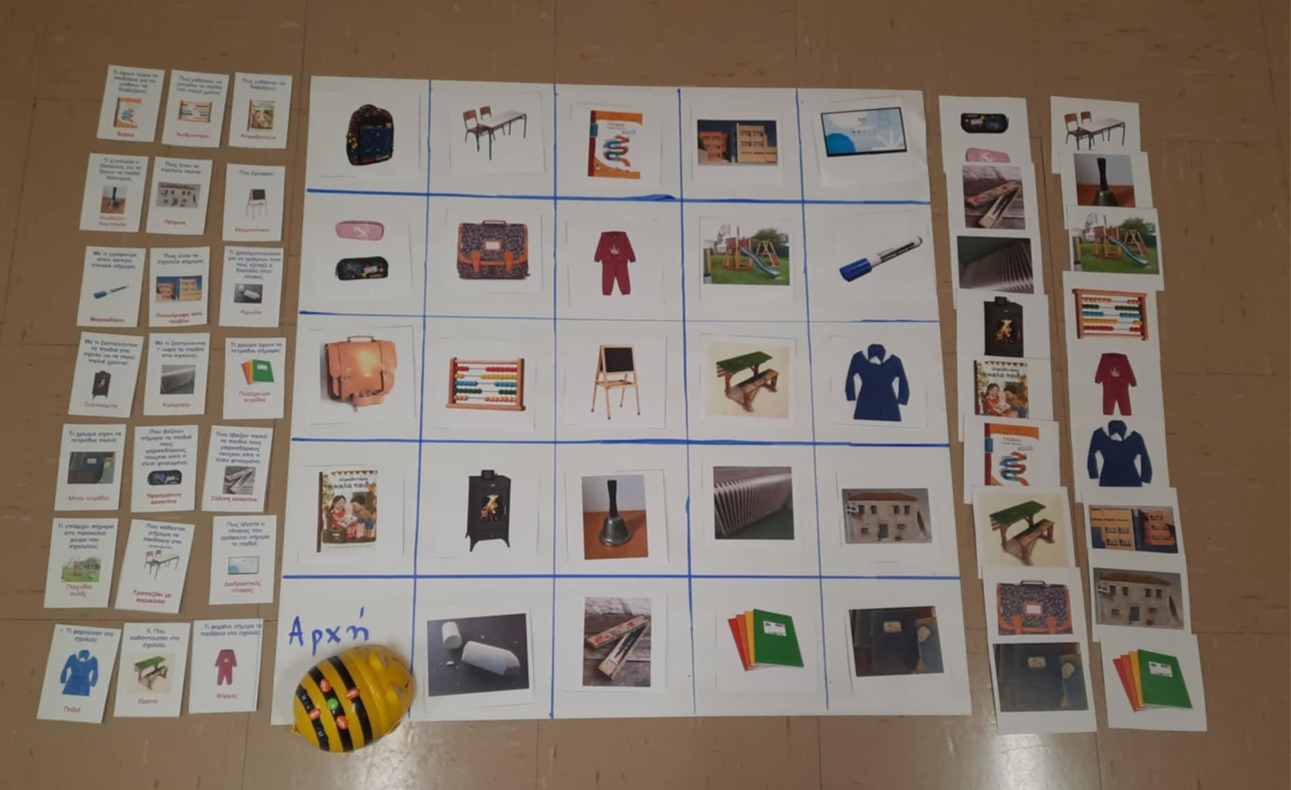 Στο χαλάκι του beebot κολλάμε εικόνες αντιπροσωπευτικές από το παλιό και το νέο σχολείο.