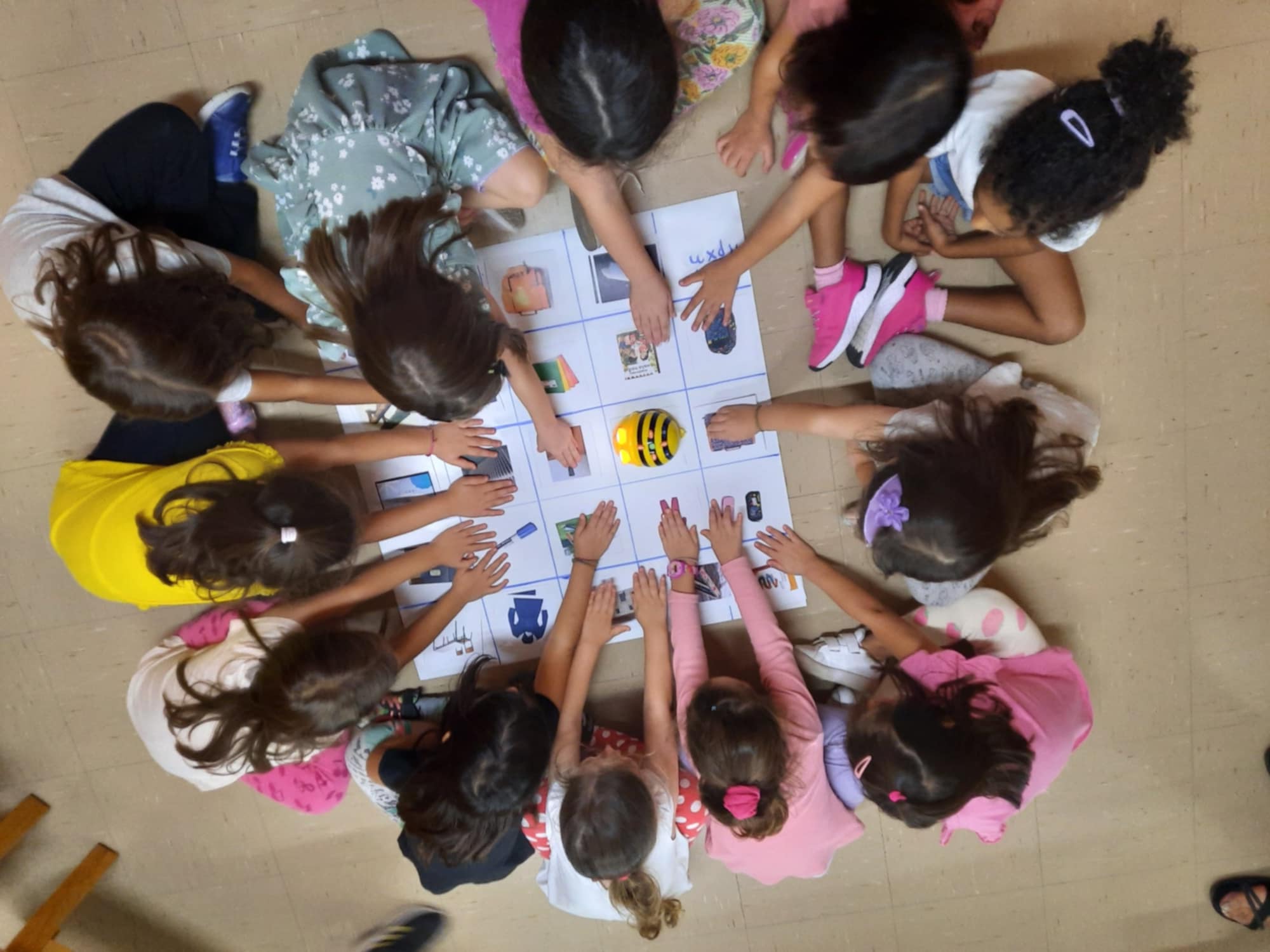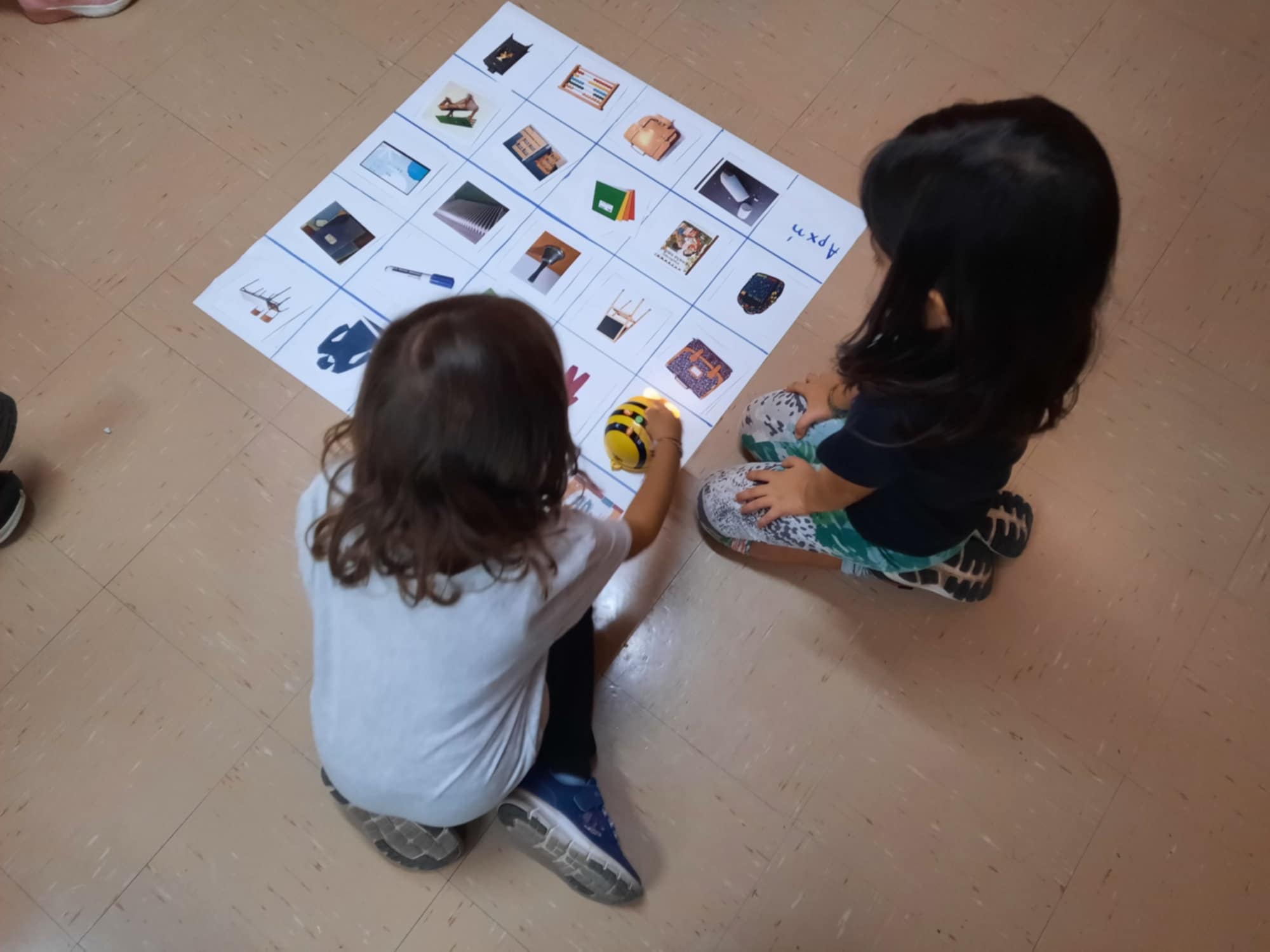 Τα παιδιά σε ζευγαράκια (προνήπιο – νήπιο ) πρέπει να απαντήσουν σωστά την ερώτηση να διαλέξουν το σωστό κινούμενο καρτελάκι και να το τοποθετήσουν στην όμοια εικόνα στο χαλάκι του bee bot