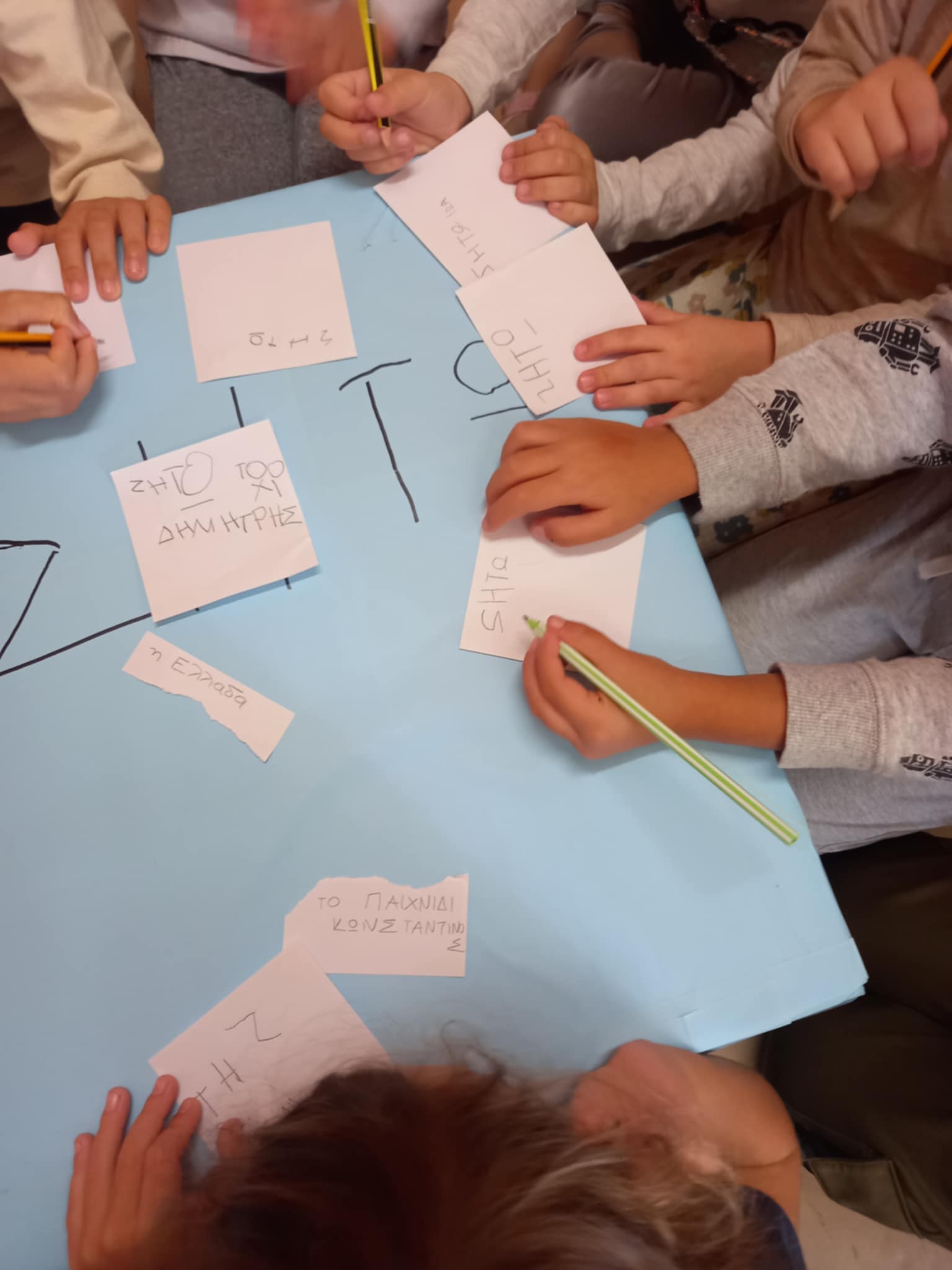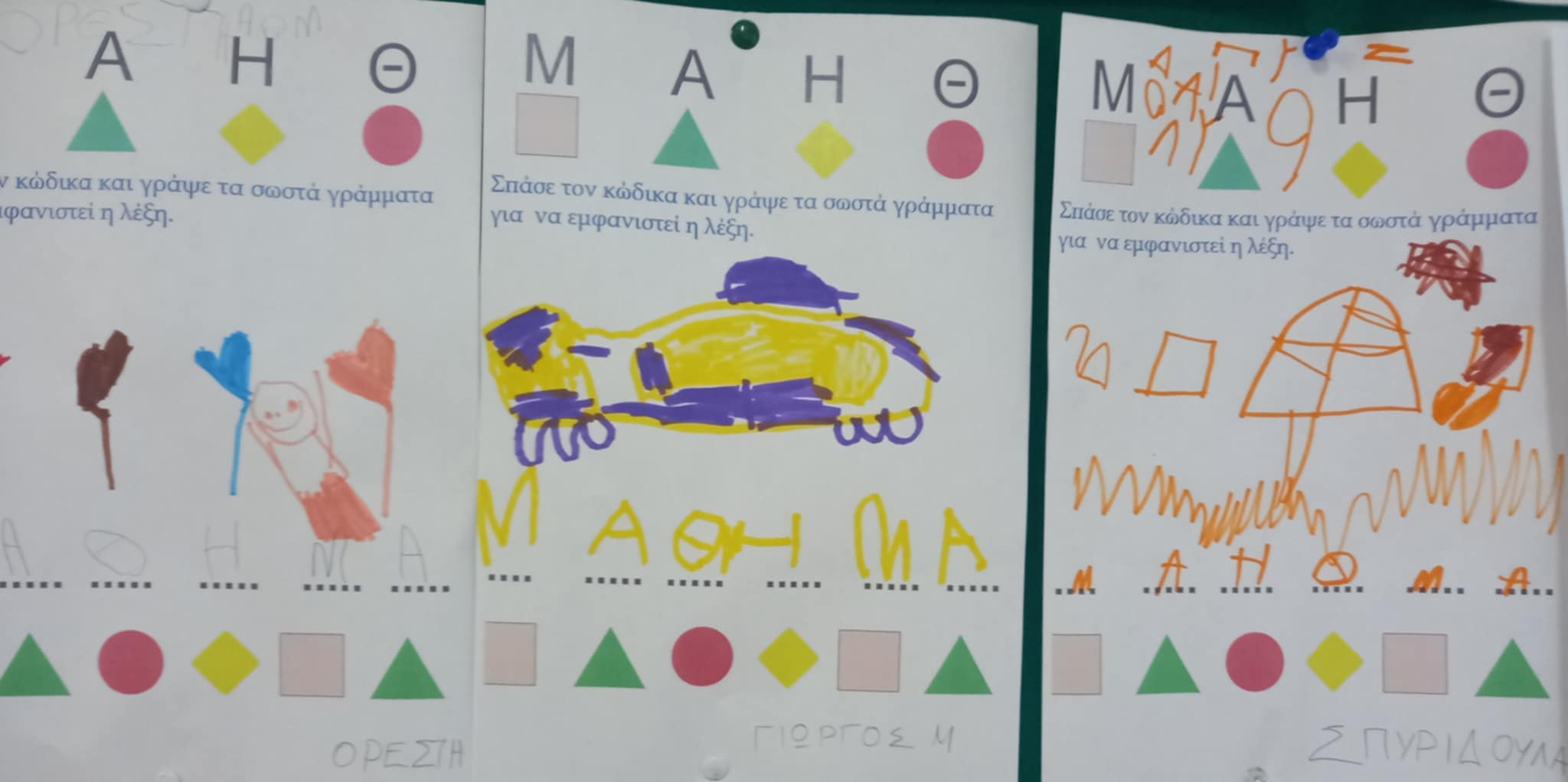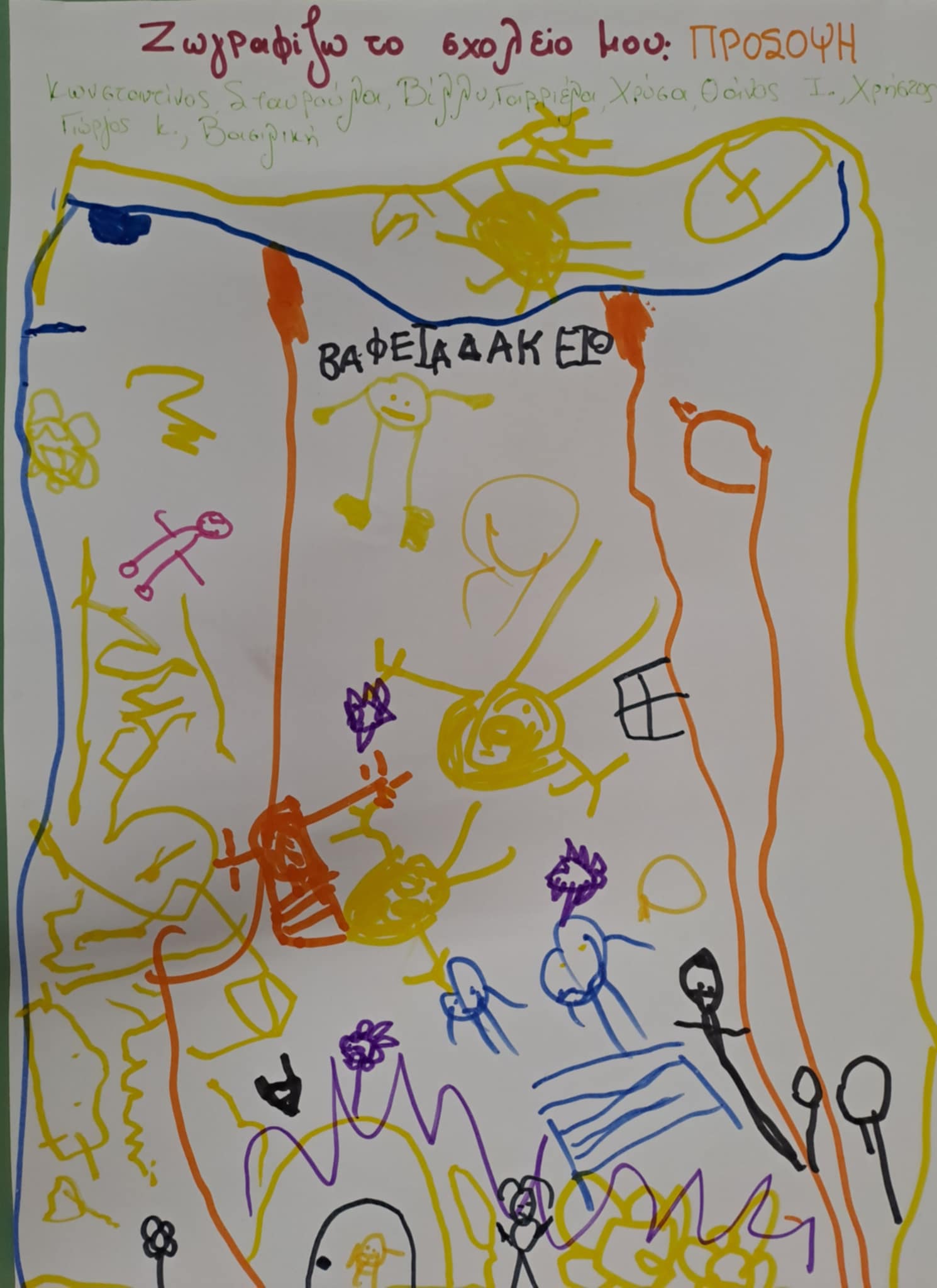 Δημιουργήσαμε την Σχολή Γραμμάτων. Τα παιδιά έθεσαν τα δικά τους ερωτήματα και ανακάλυψαν μέσα απο την παρατήρηση και παιχνίδια που έγιναν στην τάξη τις διαφορές του σχολείου του τότε και του τώρα! Στην συνέχεια ζωγράφισαν όπως φαντάζονται το σχολείο του μέλλοντος!!!!
