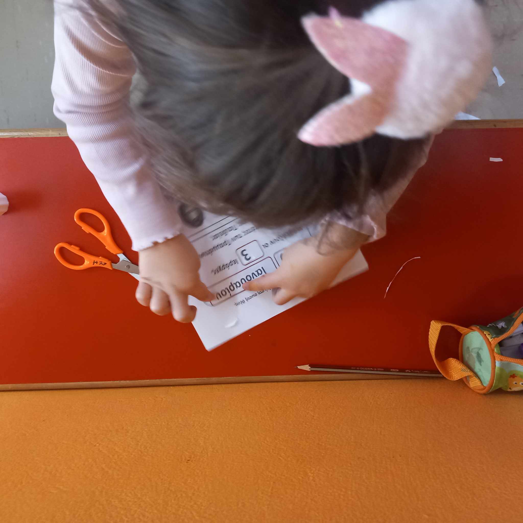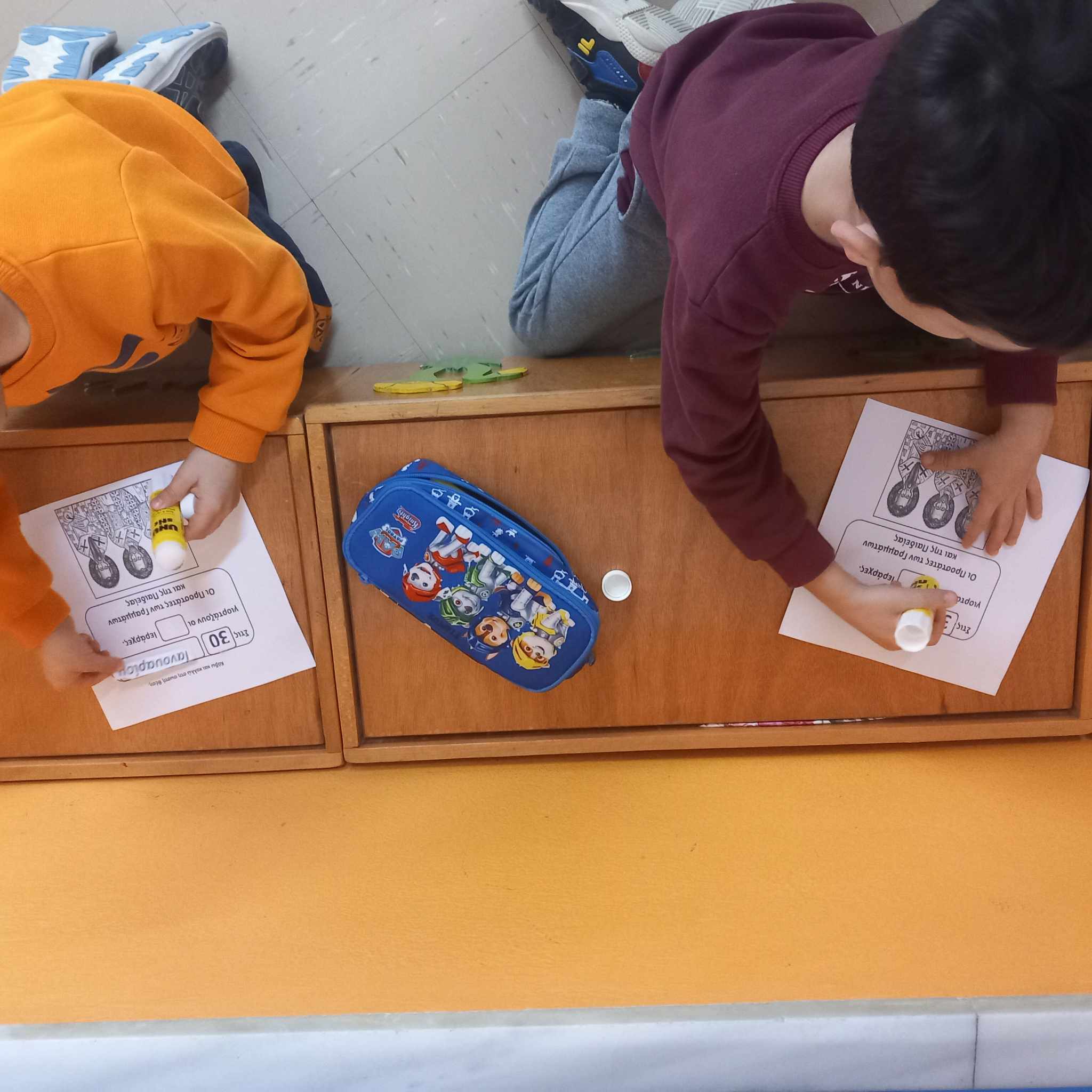 Β) Χρωματίσαμε ,εξασκήσαμε την λεπτή κινητικότητάς μας κόβοντας και κολλώντας τα σωστά κομμάτακια στη αντίστοιχη σωστή θέση στο φύλλο εργασίας που βρήκαμε στο διαδίκτυο.