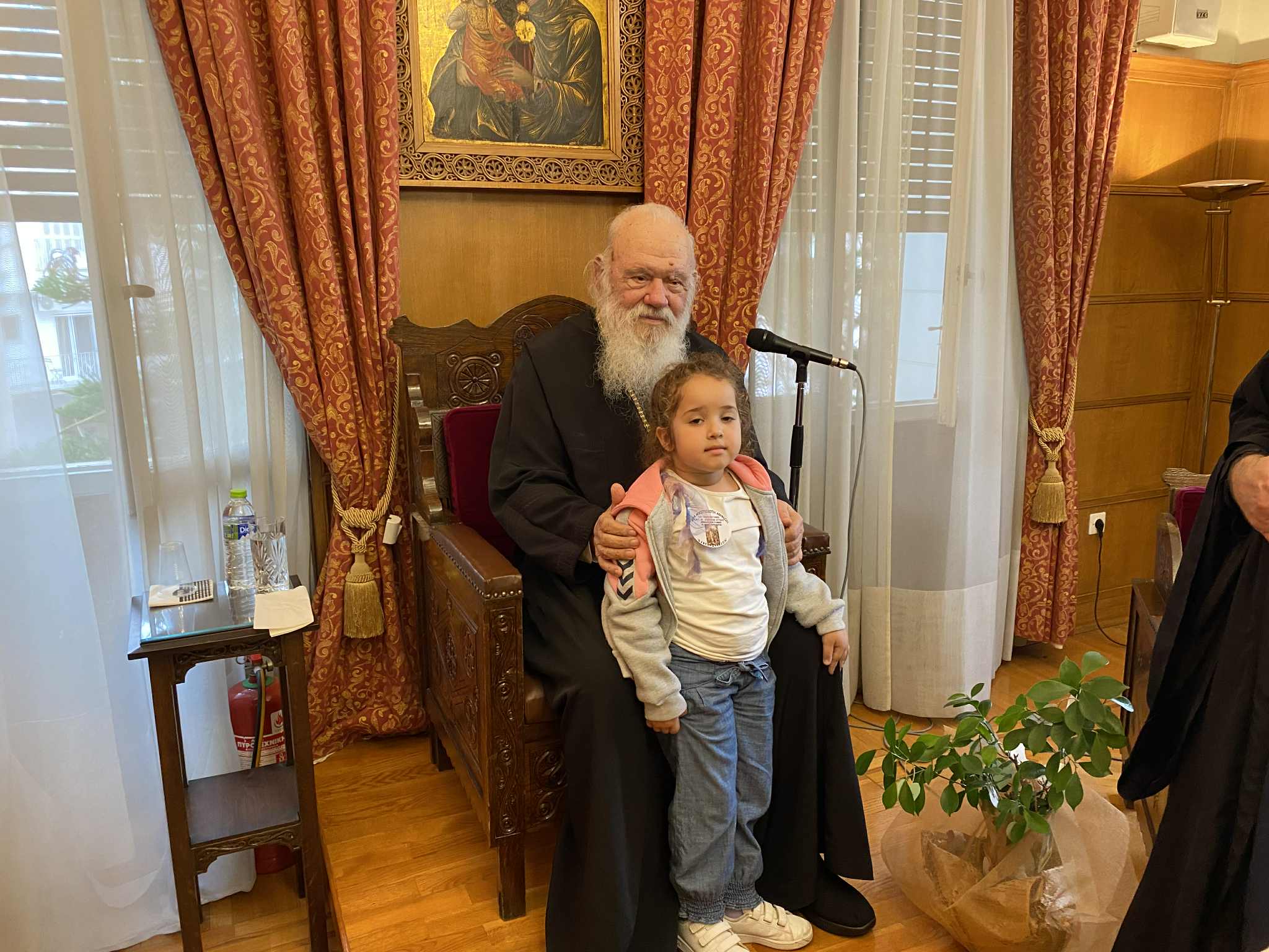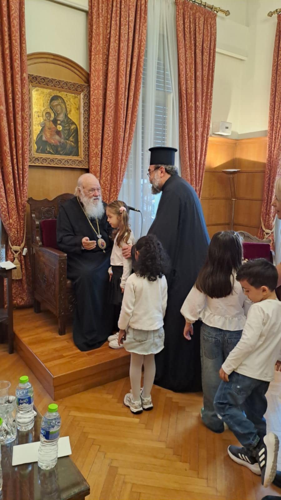 Μετά το πέρας του μνημοσύνου, ο Αρχιεπίσκοπος Αθηνών και πάσης Ελλάδος κ. Ιερώνυμος δέχθηκε στην Αρχιεπισκοπή τους παρευρισκομένους, καλωσορίζοντάς τους, συγχαίροντάς τους και ευχαριστώντας τους για τις υπηρεσίες που προσφέρουν στο ιερό αυτό έργο. Ξεκινώντας από την δική του αφετηρία, καθώς ο ίδιος υπήρξε επί πολλά έτη εκπαιδευτικός, αναφέρθηκε και εξήρε τον ρόλο των εκπαιδευτικών που έχουν στα χέρια τους το μέλλον του τόπου, τα παιδιά. Χαιρέτισε με ιδιαίτερη θέρμη τα παιδιά και τα στελέχη του Ιδρύματος, στους οποίους έδωσε και την ευλογία του.