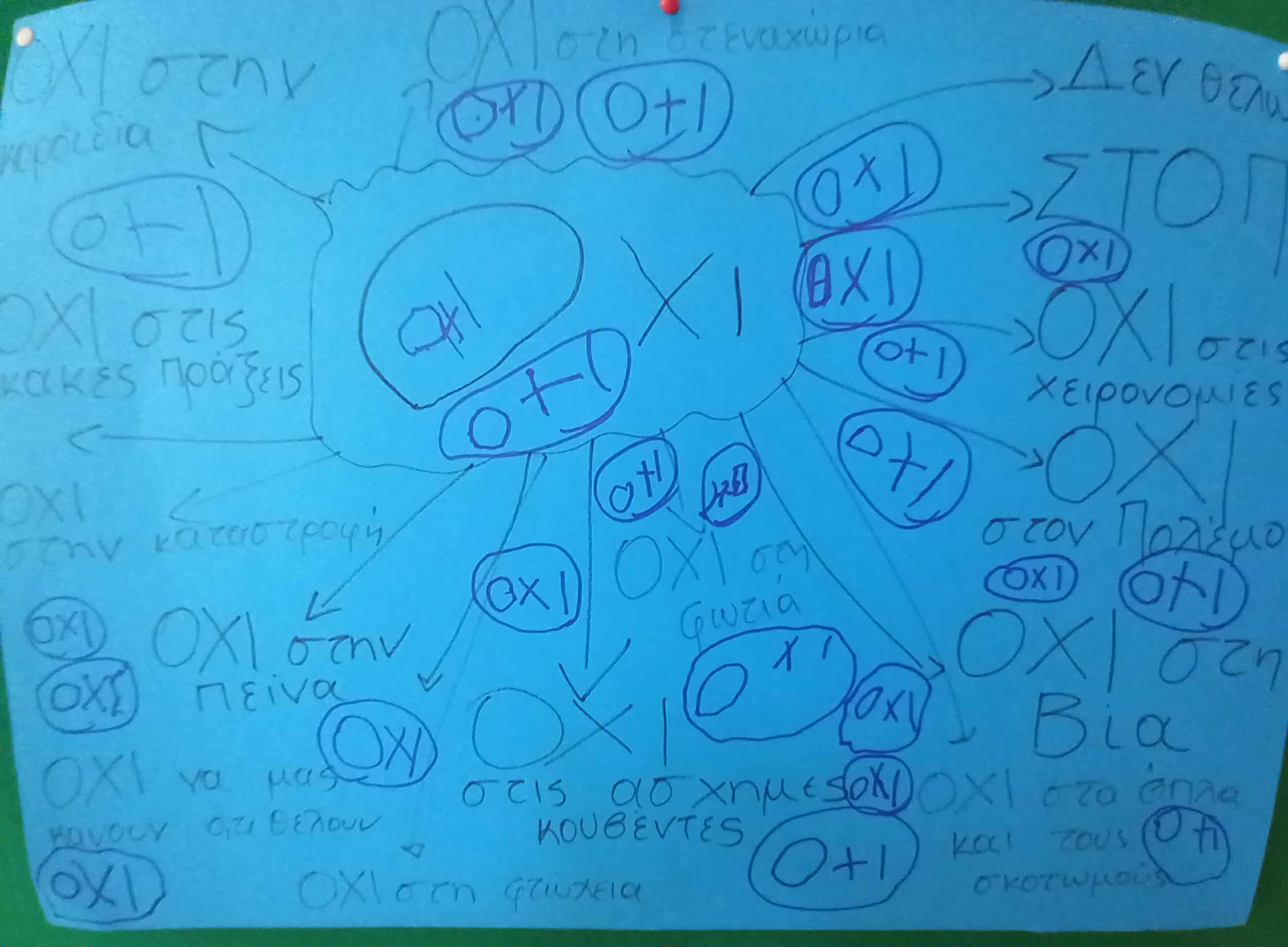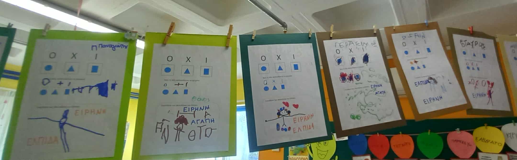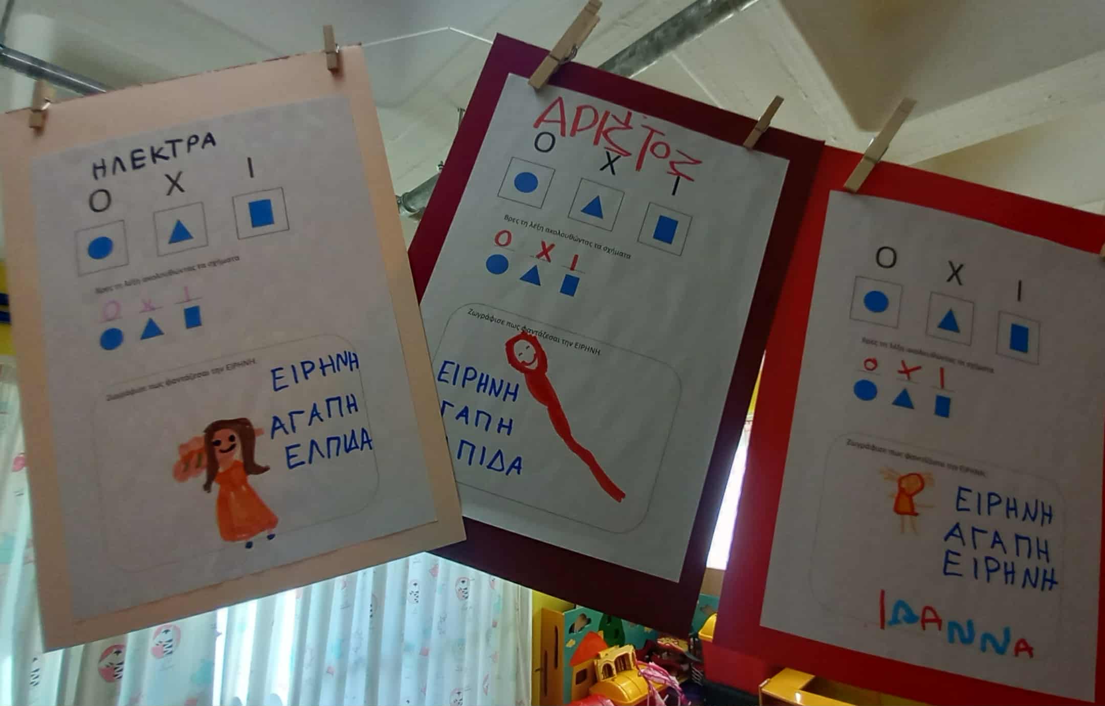 Οι μαθητές συζήτησαν και προβληματίστηκαν. Μέσα από τα δημιουργήματα τους έμαθαν πως ο πόλεμος φέρνει πόνο και στεναχώρια στους ανθρώπους σε αντίθεση με την Ειρήνη που είναι το φως , η χαρά και η ευτυχία που ενώνει τους ανθρώπους και φέρνει χαμόγελο στα πρόσωπα τους!