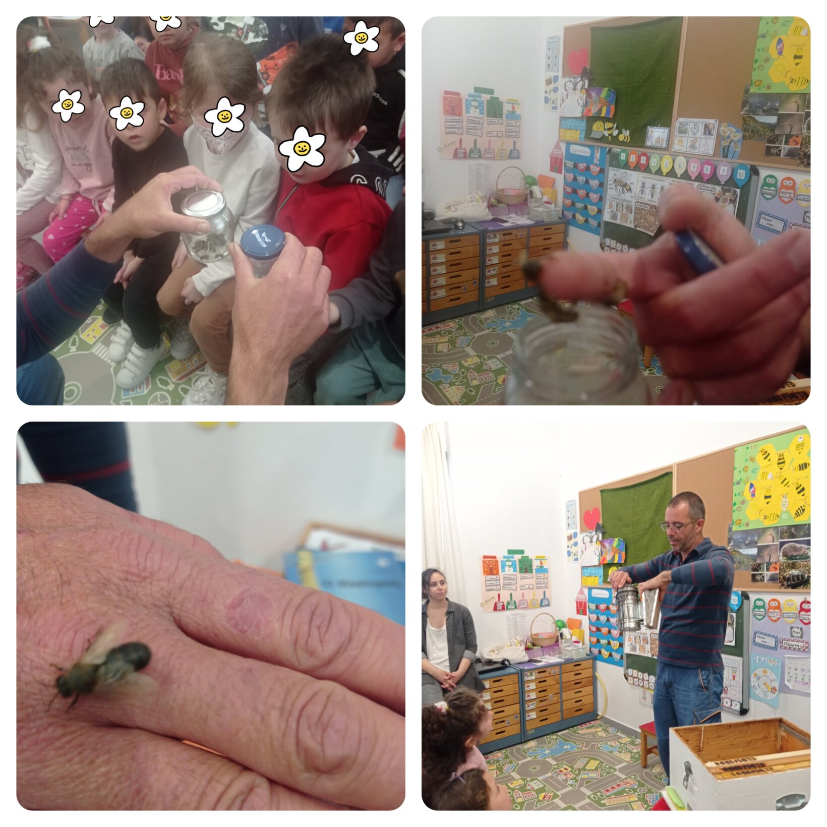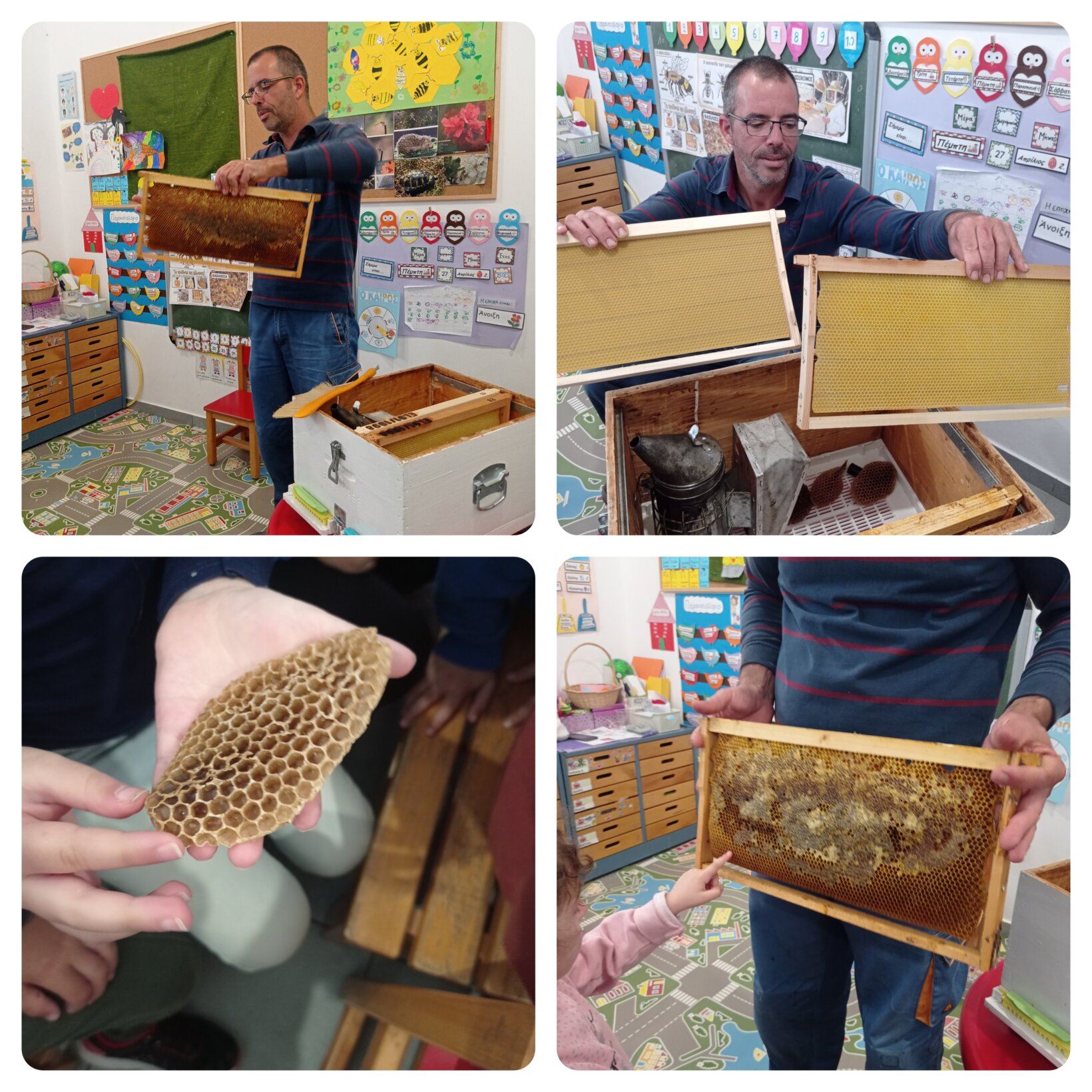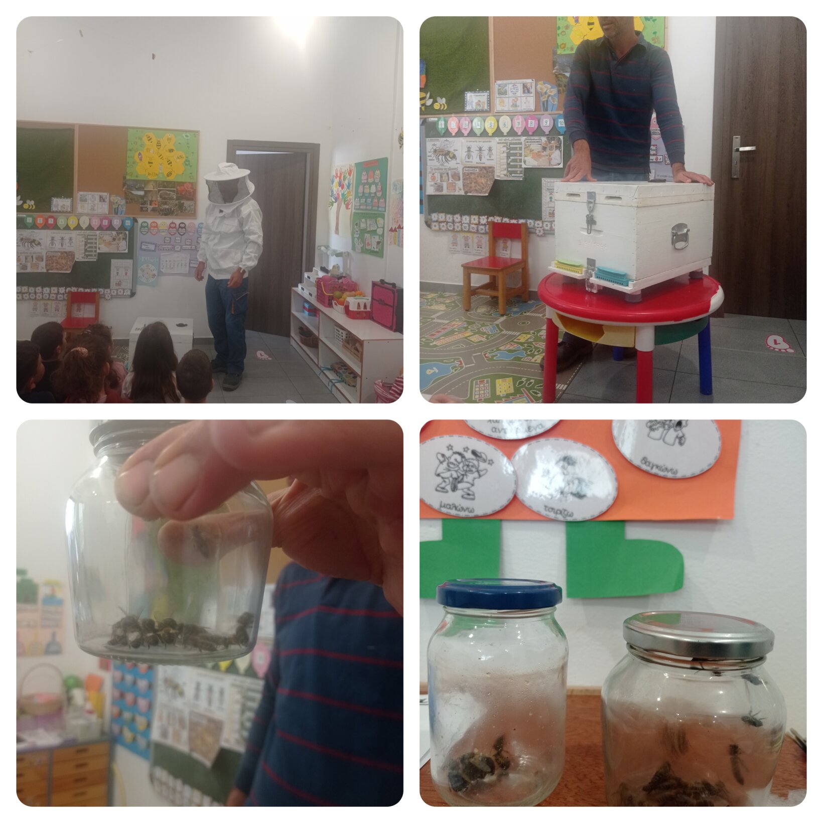Στις 27 Απριλίου επισκέφθηκε το νηπιαγωγείο μας μπαμπάς μαθήτριάς μας ο οποίος ασχολείται με τη μελισσοκομία και μοιραστήκαμε πληροφορίες για την κοινωνία των μελισσών (βασίλισσα, εργάτριες, κηφήνες) την οργάνωσή της και το ρόλο που τα μέλη της επιτελούν για την εύρυθμη λειτουργία της κυψέλης.