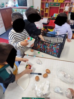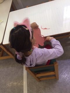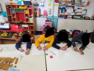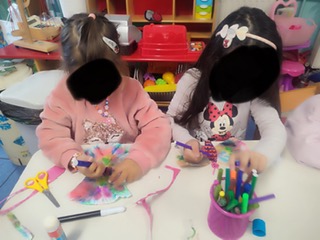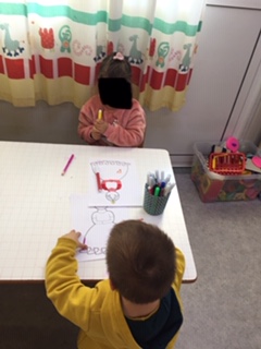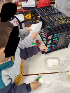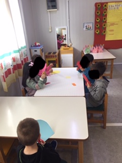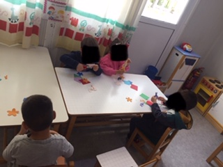 Με τα «δύο μικρά μας μάτια» παρατηρήσαμε τι υπάρχει γύρω μας: μαρκαδόρους, τουβλάκια, βιβλία και πολλά άλλα. Έτσι, ανακαλύψαμε τις γωνιές της τάξης — της ζωγραφικής, του οικοδομικού, της βιβλιοθήκης και άλλες.